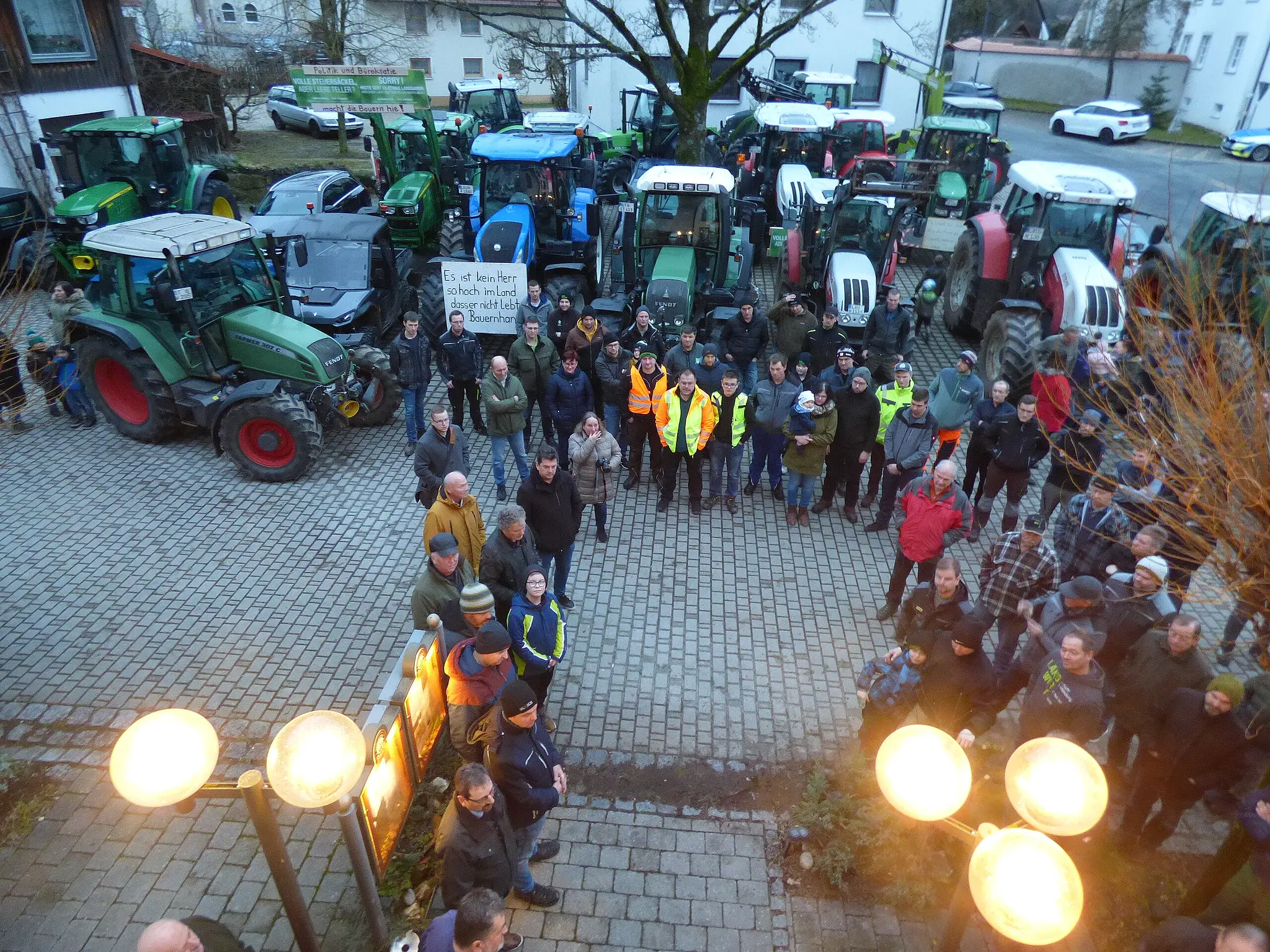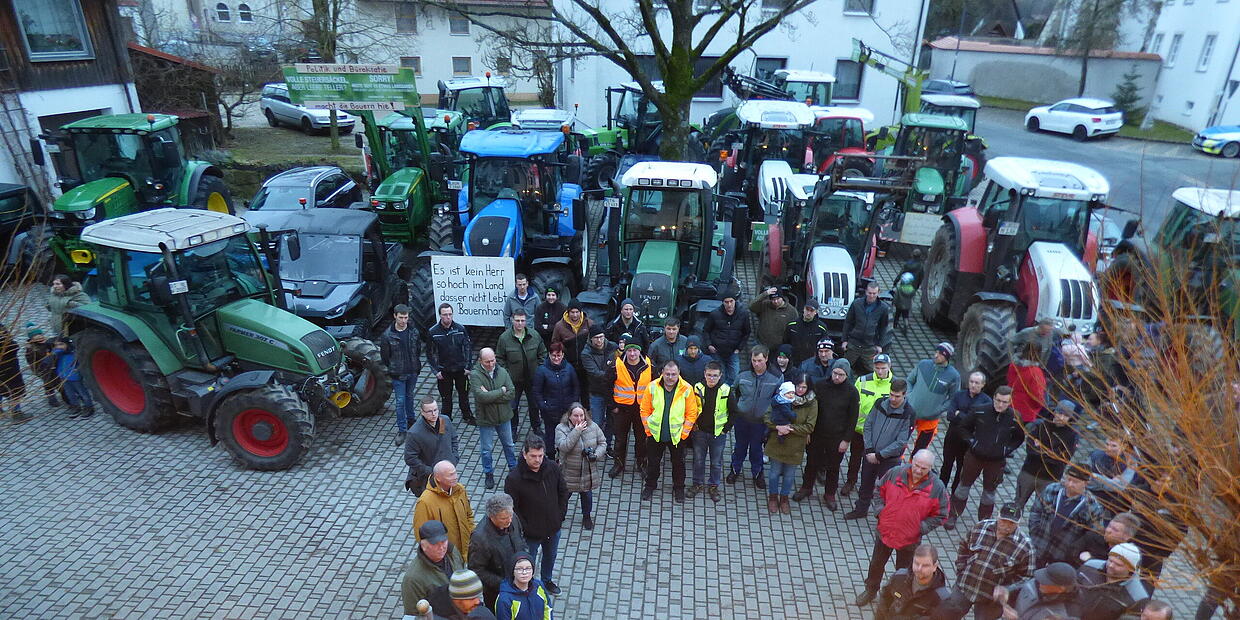 Vielen reicht's Landwirte machen sich bei Protestaktion Luft Viele beteiligten sich bei der Protestaktion in Kirchenbirkig. // Thomas Weichert von Thomas Weichert Bauernproteste gegen Sparpläne der Ampel TEILEN  06.01.2024 Kirchenbirkig – 50 Landwirte aus den Gemeinden Pottenstein, Ahorntal und Gößweinstein beteiligten sich an einer angemeldeten und genehmigten Protestaktion am späten Freitagnachmittag und kritisierten die Landwirtschaftspolitik der Bundesregierung auf dem Parkplatz des Landgasthofes Bauernschmitt Luft. Die Auffahrt der Traktoren in Kirchenbirkig sollte sinnbildlich den bedrohlichen Zustand der Landwirtschaftsbetriebe signalisieren. „Wir kamen mit Licht, dann ging es aus und die Traktoren stehen still“, sagte Milchbauer Horst Neus aus Adlitz im Ahorntal. Still stehen wird dann auch die Landwirtschaft und die Erzeugung von Lebensmitteln vor Ort, wenn es mit der Ampelregierung so weitergeht, ist sich Neus sicher. Er fordert, das der Arardiesel und die damit verbundene Steuererstattung für die Land- und Forstwirte vollständig erhalten bleiben müsse. „Es ist im Grunde sowieso schon alles viel teurer als in vergleichbaren EU Staaten“, sagt Neus und schiebt hinterher, das beispielsweise in Frankreich landwirtschaftliche Fahrzeuge mit billigerem Heizöl fahren dürfen. Die Traktoren sind immer dabei. // Thomas Weichert Offenbar vom Tisch sei ja inzwischen die Kfz-Steuer für selbstfahrende landwirtschaftliche Arbeitsmaschinen, was auch in Zukunft so bleiben müsse. Beschlossen ist alles vom Bundestag aber noch nicht, erklärt Launert und spricht auch von Fake-News, die kursieren. Beispielweise aus einer Sitzung des Rechnungsprüfungsausschusses in der sie den Plänen der Subventionskürzungen für die Landwirte zugestimmt haben soll. „Ich weiß nichts davon und war daran auch nicht beteiligt“, versichert CSU-Bundestagsabgeordnete Silke Launert, die die Proteste der Landwirte unterstützt. „Wenn ihr keinen Druck macht, tut sich auch nichts." Bundestagsabgeordnete Launert kritisiert die Ampel-Regierung Launert betont, das oft mit Fake-News gearbeitet werde. „Ungefähr die Hälfte aller verkündeten Entscheidungen der Ampel geht auf drei Köpfe zurück“, sagt Launert, ohne Namen zu nennen. „Ich glaube auch das Bundeslandwirtschaftsminister Cem Özdemir (Grüne) nichts davon wusste“, so Launert weiter. Auch die Bundestagsabgeordnete Silke Launert war vor Ort. // Thomas Weichert "Inzwischen sei auch in der Breite der Gesellschaft ein Kippen zu spüren“, so die Oppositionspolitikerin. „Die Ampelregierung versucht durch einseitige Belastungen im Bereich der Landwirtschaft ihren Haushalt zu ordnen. Die geplanten Einsparmaßnahmen bedrohen die Existenz vieler landwirtschaftlicher Betriebe und somit auch die regionale Lebensmittelerzeugung“, sagt Launert. Und weiter: „Unsere Landwirte stehen in einem Wettbewerb mit Lebensmittelerzeugern aus anderen europäischen Ländern. Wenn wir auch in Zukunft weiterhin Lebensmittelerzeugung in der Region halten wollen, muss die Regierung die Kürzungen zurücknehmen. Die Ankündigung, auf eine Besteuerung von land- und forstwirtschaftlichen Maschinen zu verzichten, geht in die richtige Richtung. Allerdings muss auch von einer Verteuerung des Agrardiesels dringend Abstand genommen werden.“ Denn eins sei für sie klar: „Die Landwirtschaft, welche man jetzt zerstört, wird so schnell nicht zurückkommen.“ Wertschöpfung erhalten „Landwirtschaft braucht Verlässlichkeit und Planungssicherheit um Betriebe in Zukunft zu führen“, betont Neus. Für ihn geht es um Alles und Alle, nicht nur die Landwirte seien betroffen. Denn sie pflegen auch die Kulturlandschaft und fördern dadurch auch den Tourismus. Es gehe auch darum, die Wertschöpfung in der Region zu erhalten und damit auch die Arbeitsplätze, nicht nur in der Landwirtschaft. „Wir sind es leid, vom Staat unter Verdacht gestellt zu werden, um dann unsere Unschuld oder Richtigkeit unseres Handelns per FAL-BY-App beweisen zu müssen. Das stellt unsere Ausbildung und unser verantwortungsbewusstes Handeln und den Umgang mit unseren Flächen in Frage. Das brauchen wir nicht“, betont Neus. Die Bauern machten ihrem Ärger Luft. // Thomas Weichert Er verweist auch auf die gemeinsame Marktordnung der EU, die es zulasse, dass Landwirte selbst mit Molkereien Vereinbarungen über Menge, Preis und Lieferzeit treffen können. Dies blocke die Ampel in Berlin jedoch ab. „Winterbauer“ Thorsten Hofmann aus Unterailsfeld kritisiert die überbordende Bürokratie. Alles muss dokumentiert werden, egal ob Planzenschutzmittelanwendung oder Düngemittelanwendung. Selbst wenn Gülle und Mist ausgebracht wird, müsse es dokumentiert werden. Es würden schon jetzt zu viel Getreide und Lebensmittel aus dem Ausland importiert. „Ich habe einen Biobetrieb in Unterailsfeld und noch Getreide von der Ernte 2022 auf Lager liegen, weil es im Moment nicht vermarktet werden kann, da es billiger aus dem Ausland importiert wird“, so Hofmann. Am Montag folgen weitere Protestaktionen. // Thomas Weichert Bauer Josef Schrüfer aus Kühlenfels wundert sich. Er habe alle Bundestagsabgeordneten aus der Region angeschrieben und von allen die Antwort bekommen, das sie hinter den Forderungen der Bauern stehen. Auch von denen von den Grünen und der SPD. „Was ist da los?", fragt sich Schrüfer. „Ihr macht Politik völlig vorbei am Volk und wenn ihr so weitermacht, ist kein Arbeiten mehr möglich“, poltert ein Schweinebauer. Er müsse nun wegen der Vorschriften sogar Heu an seine Schweine verfüttern, obwohl die das gar nicht mögen. "Landwirte fühlen sich in die Pfanne gehauen" Mit dabei ist auch Landtagsabgeordneter Stefan Frühbeißer (FW). Die Landwirte fühlen sich in die Pfanne gehauen“, sagt der frühere Pottensteiner Bürgermeister und verweist auch auf weitere angekündigte Sparmaßnahmen der Bundesregierung wie Mittelkürzungen für die ländliche Entwicklung. Dies führe Fr