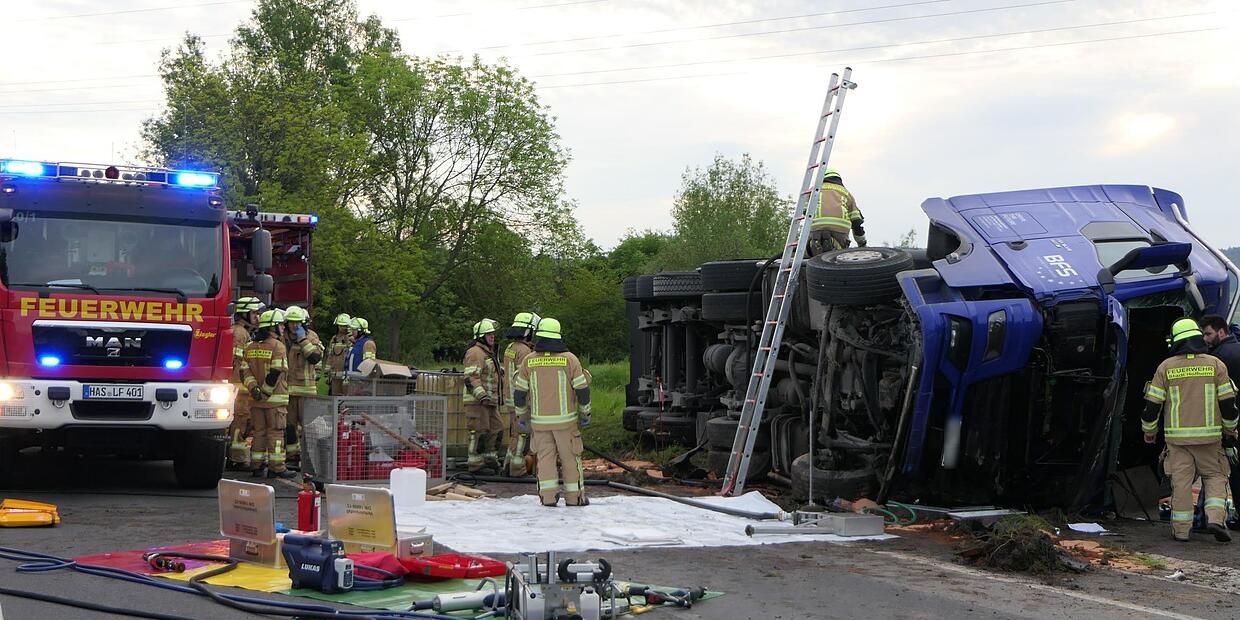 – Stundenlang war am Freitag die Rügheimer Straße in Hofheim für den Verkehr gesperrt. In den frühen Morgenstunden ereignete sich ein schwerer Lkw-Unfall, bei dem der Fahrer schwer verletzt wurde