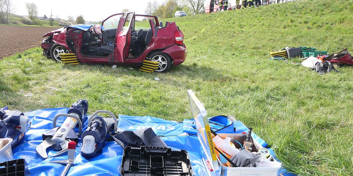 – Ein Honda stürzt bei Gädheim einen Abhang hinab. Mutter und Sohn schweben nach dem Unfall in Lebensgefahr.
