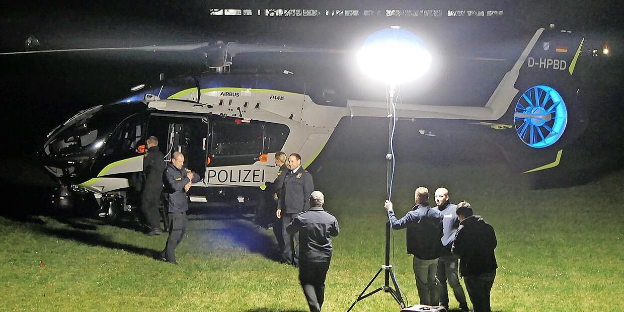 – Ein Polizeihubschrauber landet spektakulär bei einer Übung. Blaulichtorganisationen zeigen ihre Strategien zur Vermisstensuche.