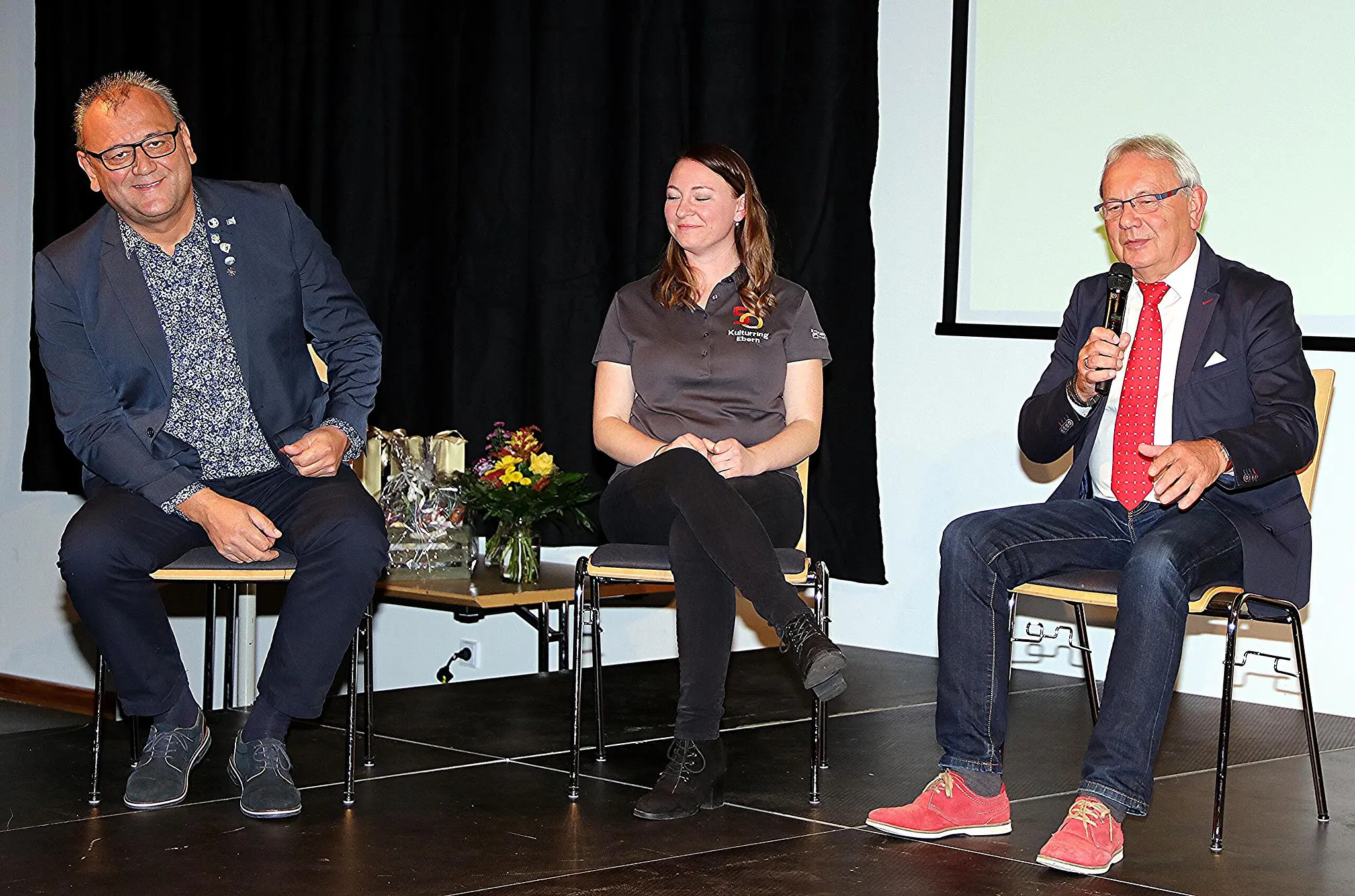 Synergien Eberner Vereine: Zusammen sind sie stärker In einer Talkrunde plauderten (von links) Andreas Mölter, Lisa Meister und Eberhard Wohl aus dem Nähkästchen des Kulturvereins. // Helmut Will von Helmut Will TEILEN  24.10.2022 Ebern – Ein Fest zum Jubiläum: Der Kulturring Ebern leistet seit 50 Jahren hervorragende Arbeit für die Entwicklung der Stadt. Geladene Gäste konnten am Samstagabend in der Frauengrundhalle in Ebern dem Festakt des Kulturrings Ebern zu dessen 50-jährigem Bestehen erleben. Es wurde Rückblick gehalten, verdiente Mitglieder wurden geehrt. Hohe Auszeichnungen erhielten Eberhard Wohl (Mitte), der zum Ehrenvorsitzenden des Kulturrings Ebern ernannt wurde, und Klaus Bayersdorfer (2. v. links), der Ehrenmitglied wurde. Ihnen gratulierten Vorsitzender Walter Ullrich (links), Schirmherr und Altbürgermeister Robert Herrmann, sowie Landrat Wilhelm Schneider (von rechts). // Helmut Will Am 23. Oktober 1972 wurde der Kulturring ins Leben gerufen. Die Bilanz beim Blick auf die vergangenen 50 Jahre fiel dabei durchweg positiv aus für den Verein, unter dessen Dach sich 107 Vereine aus dem Stadtgebiet von Ebern versammelt haben. Sebastian Reich und seine Nilpferd-Dame Amanda gratulierten mit einer Einspielung. Grußworte sprachen Vorsitzender Walter Ullrich, seit sechs Jahren an der Spitze des Kultrings, Altbürgermeister Robert Herrmann (CSU) und Bürgermeister Jürgen Hennemann (SPD).Kulturring als Bindeglied zwischen den Vereinen im Stadtgebiet Hennemann sagte: „Es war eine gute Idee, den Kulturring als Bindeglied zwischen den Vereinen im Stadtgebiet ins Leben zu rufen. Veranstaltungen in Ebern haben mit dem Kulturring richtig Fahrt aufgenommen und weit über Ebern hinaus gestrahlt.“ Robert Herrmann, Schirmherr und Altbürgermeister von Ebern, hielt eine akribisch genaue Festrede, in der er 50 Jahre Kulturring skizzierte. // Helmut Will In 50 Jahren habe der Kulturring eine kontinuierliche Entwicklung genommen, sagte Schirmherr und Festredner Robert Herrmann. Er startete mit seinen Ausführungen im Jahr 1972, erinnerte an die lange Zeit des Friedens in Europa und ging auf die Schreckensmeldungen der jüngeren Zeit ein und die damit verbundenen Probleme. 107 Vereine habe der Kulturring gegenwärtig unter seinem Dach vereint. „Ich könnte mir vorstellen, dass der Wunsch nach Zusammenschluss in einer sich zunehmend globalisierend darstellenden Welt auch in vielen weiteren Städten und Gemeinden erkennbar wurde“, sagte Robert Herrmann. Gründungsversammlung des Kulturring Eberns war am 23. Oktober 1972Am 23. Oktober 1972 hatte der amtierende Bürgermeister Rolf Feulner zur Gründungsversammlung des Kulturrings eingeladen. Beim Jubiläum konnte Feulner krankheitsbedingt nicht anwesend sein. „Stadtsekretär Reinhard Soutschek konnte 67 Personen als erste Mitglieder in einer Liste aufnehmen“, erinnerte Herrmann. Das waren Willy Bergmann, Simon Hafenecker, Siegfried Pachulski, Emil Ebert, Walter Ebert, Emil Dinkel, Ottmar May, Fritz v. Sichart, Peter Thomann, Klaus Vierbücher, Erich Wolfschmidt, Helmut Zwosta, Toni Pokoj, Wilfried Mölter als Vertreter des Stadtrates und Stadtsekrektär Reinhard Soutschek als Geschäftsführer.Wer den Kulturring Ebern zuerst geführt hat In der ersten Vorstandssitzung war Willy Bergmann zum Vorsitzenden, Simon Hafenecker zum Zweiten Vorsitzenden, Siegfried Pachulski zum Schriftführer und Toni Pokoj zum Kassierer gewählt worden. Schnell seien mehrere Vereine dem Kulturring beigetreten. Herrmann schloss mit einem Lob: „Seit 50 Jahren, seit 1972, hat sich diese Organisationsform des Kulturrings bewährt und deshalb gilt den Gründern, die diese Idee verwirklichten, ein herzliches Dankeschön.“ Und fügte hinzu: „Ich bin fest überzeugt, dass die langen Jahre, die Mitstreiter dem Kulturring gewidmet haben, keine verlorenen Jahre waren. Auch in Zukunft werden wir Menschen mit Visionen und Tatkraft brauchen.“ So sieht der aktuelle Vorstand des Kulturrings Ebern aus:Aktuell führen Vorsitzender Walter Ullrich, Zweite Vorsitzende Lisa Meister, Geschäftsführerin Janina Reuter-Schad, Schriftführer Christian Giebfried und Kassiererin Annika Müller den Kulturring. Auch Ehrenvorsitzender Paul Fuchs gratulierte zum Jubiläum und wünschte eine weiterhin erfolgreiche Zeit. Bevor die Ehrungen vorgenommen wurden, fand eine kurze Talkrunde statt, an der Stadtrat Andreas Mölter (FWE), Eberhard Wohl und Lisa Meister teilnahmen und über ihre Erlebnisse und Erfahrungen beim Kulturring berichteten. Moderiert wurde diese Runde von Fabian Weber und Christian Giebfried, die auch durch den Abend führten. Musikalisch wurde der Festabend von „Helt Oncale“ umrahmt. Klaus Bayersdorfer (links) wurde vom Vorsitzenden des Kulturrings, Walter Ullrich, zum Ehrenmitglied ernannt. // Helmut Will 50 Jahre Kulturring Ebern – Ehrung besonders verdienter Mitglieder Klaus Bayersdorfer Vorsitzender Walter Ullrich hielt die Laudatio auf Klaus Bayersdorfer, der zum Ehrenmitglied ernannt wurde. Klaus Bayersdorfer engagiere sich in mehreren Vereinen, so in der DLRG-Ortsgruppe Ebern, wo er sich seit 1974 in der Jugendarbeit engagiere, auch bei der Aktion „Sichere Schwimmer“. Er tue das freundlich und mit Einfühlungsvermögen. Auch im Kulturring, wo der 36 Jahre tätig war, habe er sich in vielfältiger Weise eingebracht. Eberhard Wohl (Mitte) wurde zum Ehrenvorsitzenden ernannt. Ihm gratulierten Landrat Wilhelm Schneider (links), der die Laudatio hielt, und Walter Ullrich (rechts), Vorsitzender des Kulturrings. // Helmut Will Eberhard Wohl Landrat Wilhelm Schneider hielt die Laudatio auf Eberhard Wohl, der zum Ehrenvorsitzenden des Kulturrings ernannt wurde. Wohl habe mit Herzblut viele Jahre für den Kulturring gearbeitet. „Du bist ein Mensch mit großer Strahlkraft, du hast Humor, denkst positiv, hast immer ein aufmunterndes Wort parat und besitzt die Gabe, andere Menschen mitzunehmen“, sagte Schneider, der in einem äußerst schrill-bunt