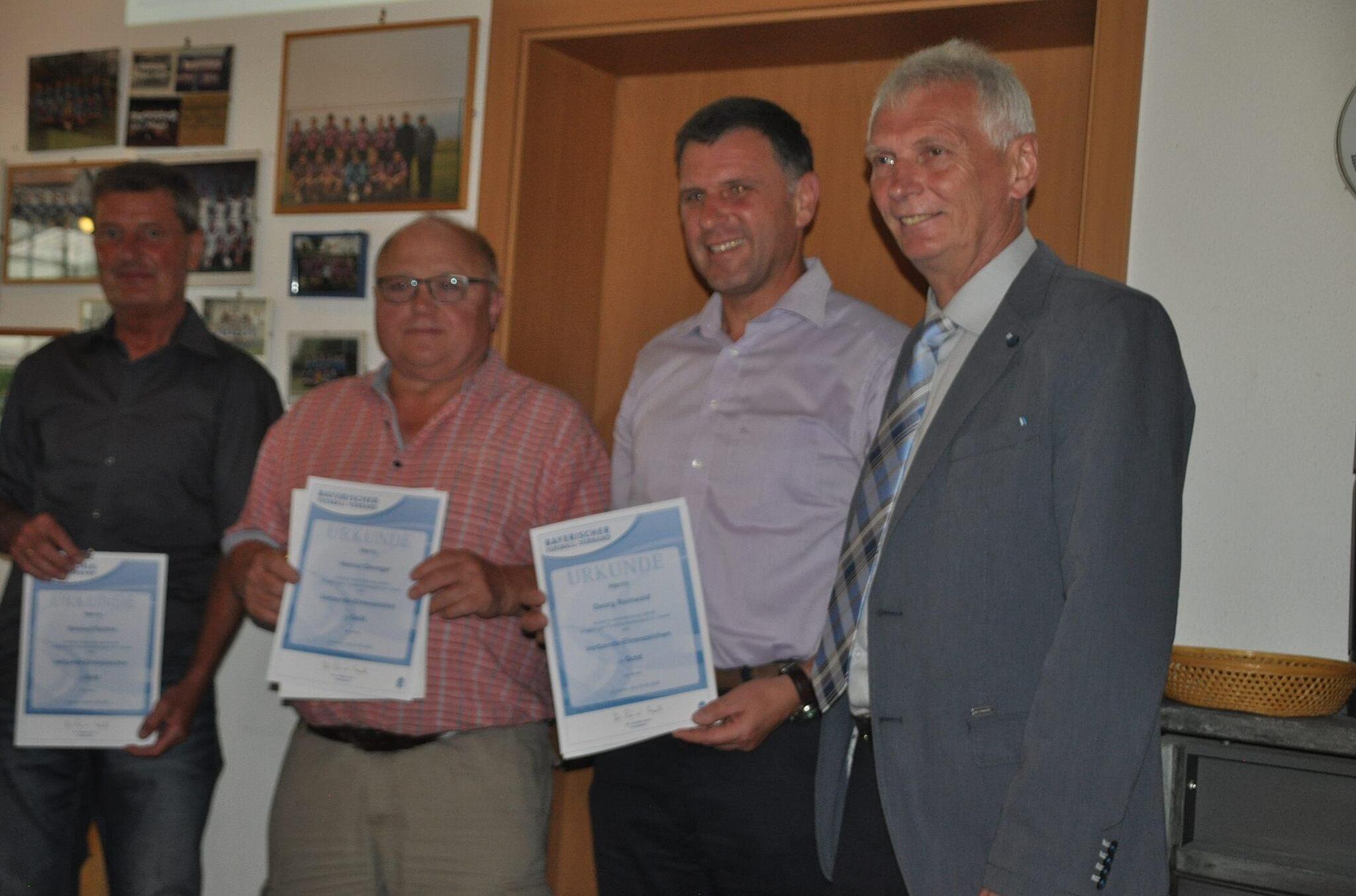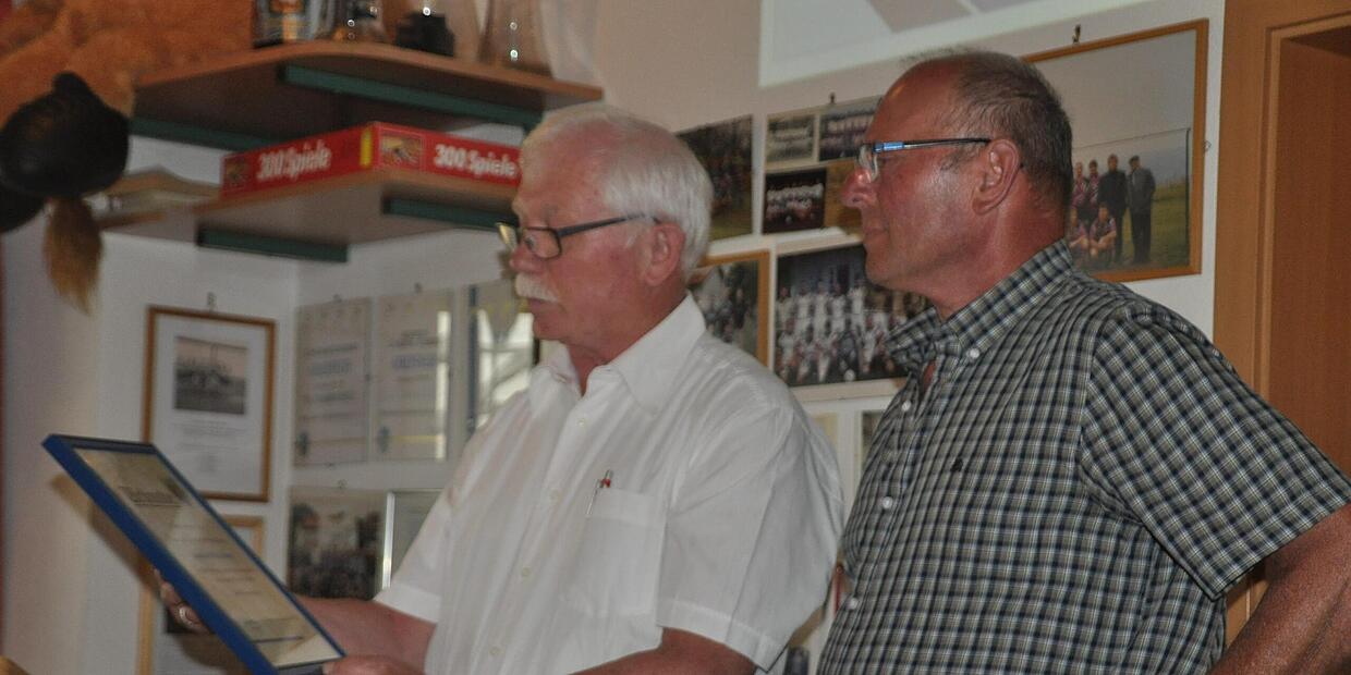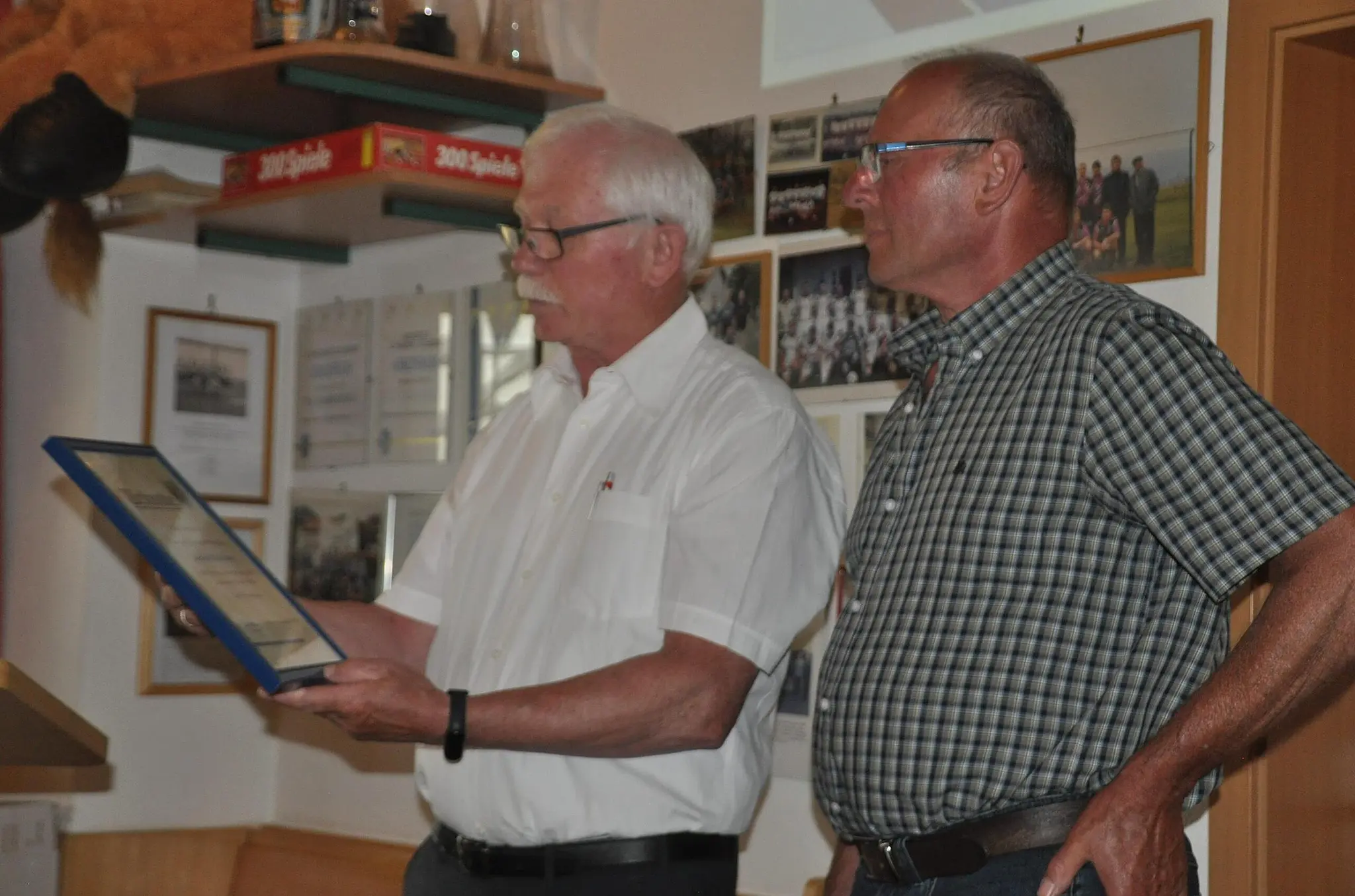 Vereinsgeschichte 75 Jahre voller Erinnerungen Die zwei neuen Ehrenmitglieder des TSV Pfarrweisach, Emil Barthelmann (links) und Leni Pfadenhauer // Simon Albrecht von Simon Albrecht TEILEN  06.06.2022 Pfarrweisach – Der TSV Pfarrweisach hat zwei neue Ehrenmitglieder. Es gab auch kritische Worte bei der Jubiläumsfeier. Beim TSV Pfarrweisach sind am Freitag 23 Mitglieder für ihre langjährige Treue zum Verein geehrt worden, und seit diesem Tag dürfen Leni Pfadenhauer und Emil Barthelmann den Titel Ehrenmitglied des TSV tragen.Im Rahmen des Jubiläumsfestes zum 75. Geburtstag des TSV an den Pfingstfeiertagen fand im Sportheim der Festkommers für geladene Gäste statt, den Emil Barthelmann moderierte. Es waren schon nachdenkliche Minuten, als Barthelmann das ehrenamtliche Wirken von Leni Pfadenhauer aufzeichnete und ihm die Urkunde zum Ehrenmitglied überreichte, und als dann zum Schluss der Feier der ehemalige Ehrenamtsbeauftragte des Vereins, Hermann Martin, selbst den überraschten Barthelmann im Auftrag des Vorstands zum Ehrenmitglied ernannte. Da mussten einige vor Rührung schlucken.„Wo sind die Frauen im Verein?“Barthelmann war es auch, der in einer digitalen Präsentation auf die 75 Jahre Vereinsgeschichte zurückblickte und hier das erste Spiel gegen Ebing im Sommer 1947 und den damit verbundenen Widrigkeiten bei der Anreise kommentierte. In der Bilderpräsentation ist auch dokumentiert, dass an Pfingsten 1954 das erste der später legendären Pfingstpokalturniere des TSV ausgetragen wurde. Trotz der Freude über das Jubiläumsfest fand Barthelmann einige kritische Denkansätze: So sei es „beschämend, wie wenig Frauen im Verein aktiv sind“, und dass man sich langsam zu einem „Männerverein“ entwickle. Nach Barthelmanns Worten fehle es besonders am Interesse der Eltern, die den Verein unterstützten – und das „an allen Ecken und Enden“. Drei Jahrgänge zusammengefasstZusammen mit seinem Sohn Philipp überreichte er anschließend die Urkunden und Nadeln an die Jubilare. Wie Emil Barthelmann sagte, habe man die vergangenen zwei Jahre wegen der Pandemie keine Mitglieder ehren können, deshalb seien jetzt drei Jahrgänge zu Ehrender zusammengefasst worden. Die Feier wurde musikalisch umrahmt vom Akkordeon-Duo Karin Meyer-Jungclaussen und Georg Müller. Für 50 und 60 Jahre Mitgliedschaft sind diese Mitglieder geehrt worden (von links): obere Reihe: Elmar Heusinger, Rudi Rohleder, Wilhelm Kuhn, Adolf Mildenberger; mittlere Reihe: Josef Reinwand, Helga Heim, Richard Raithel, Thomas Jakob; untere Reihe: Adolf Schwarz, Günter Lipp und Harald Rügheimer. // Simon Albrecht Neben den 23 zu Ehrenden überreichte der Kreisehrenamtsbeauftragte im Kreis Coburg-Kronach, Michael Deuerling, die Verbandsehrenzeichen in Gold des Bayerischen Fußballverbandes (BFV) an Helmut Deringer, Richard Raithel und Georg Reinwald. Jeder von den Dreien hatte mindestens 20 Jahre eine oder mehrere Funktionen im Verein inne. Wie Deuerling sagte, seien Fußballvereine „eine unvorstellbare Kraft“ – das verdanke man auch den vielen Tausend Ehrenamtlichen im Lande. Neben der Gesundheit sei der Sport ein großer Förderer des Gemeinschaftsgeistes.Heilmann: Eine unvorstellbare Zeit mit Höhen und TiefenKein Unbekannter in Pfarrweisach ist Reinhold Heilmann, stellvertretender Kreisvorsitzender des Bayerischen Landessportverbandes (BLSV), Kreis Haßberge. Schließlich habe dieser, so Barthelmann, vor 20 Jahren das Vereinsheim mit geplant. Heilmann meinte, 75 Jahre seien eine „unvorstellbare Zeit mit Höhen und Tiefen“. Wenn ein Verein eine so lange Zeit besteht, zeuge das von einer sehr guten Jugendarbeit. Für 25 Jahre Mitgliedschaft (von rechts): Philipp Braterschofsky, Markus Freund und Michael Rössner. Links Ehrenamtsbeauftragter Emil Barthelmann. // Simon Albrecht Christoph Göttel, Zweiter Bürgermeister der Gemeinde Pfarrweisach und Sponsor des TSV, sagte zu den Jubilaren: „Ich bin stolz auf euch, macht weiter so!“ Der TSV, so Göttel, sei der größte Verein in der Gemeinde Pfarrweisach (253 Mitglieder, d. Red.) und stecke sehr viel Arbeit in die Jugend – „zur Freude der Eltern“. Aus seiner Privatschatulle überreichte er eine Spende in Höhe von 500 Euro an Barthelmann. Die Verbandsehrenzeichen in Gold des Bayerischen Fußballverbandes (BFV) erhielten (von links) Richard Raithel, Helmut Deringer und Georg Reinwald vom Kreisehrenamtsbeauftragten im Kreis Coburg-Kronach, Michael Deuerling (rechts). // Simon Albrecht Mit 70 Jahren Mitgliedschaft ist Andreas Ort der „Dienstälteste“; leider konnte er krankheitsbedingt nicht teilnehmen. Für 60 Jahre Mitgliedschaft wurden Günter Lipp, Harald Rügheimer und Adolf Schwarz geehrt, für 50 Jahre Winfried Barth, Willi Günther, Helga Heim, Elmar Heusinger, Thomas Jakob, Wilhelm Kuhn, Adolf Mildenberger, Adam Ort, Richard Raithel, Josef Reinwand, Rudi Rohleder, Margit Schorr und Otto Wiederroth, für 40 Jahre Stefan Wohlfromm sowie für 25 Jahre Philipp Braterschofsky, Markus Freund, Stefan Günther, Michael Rössner und Alexander von Rotenhan.
