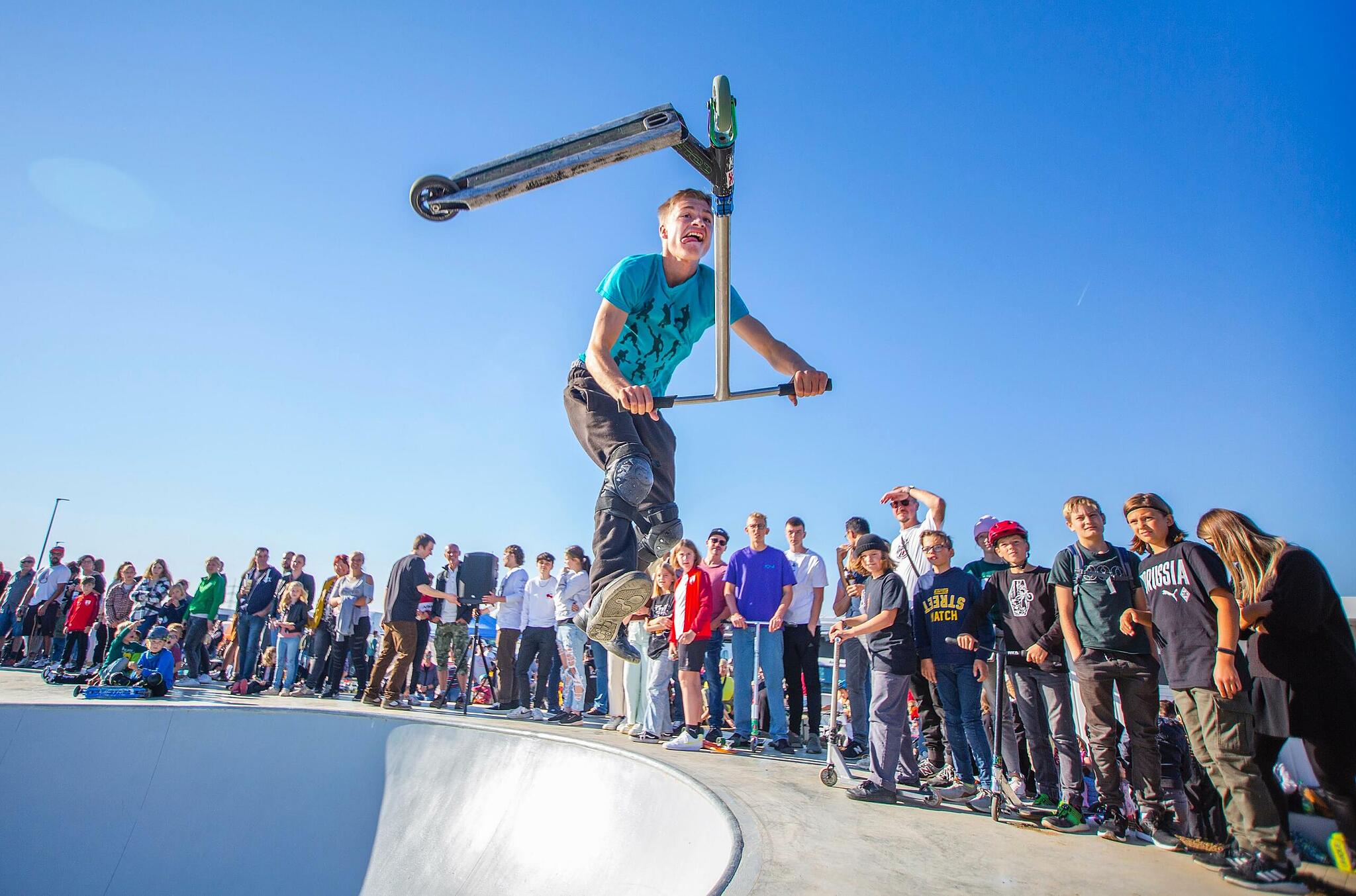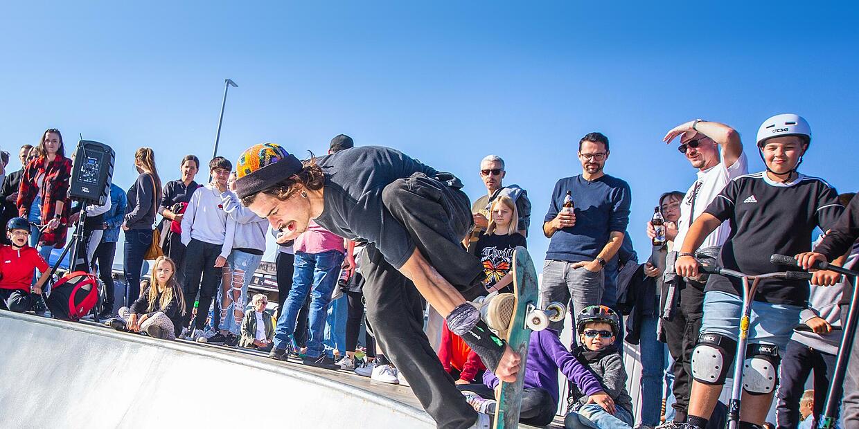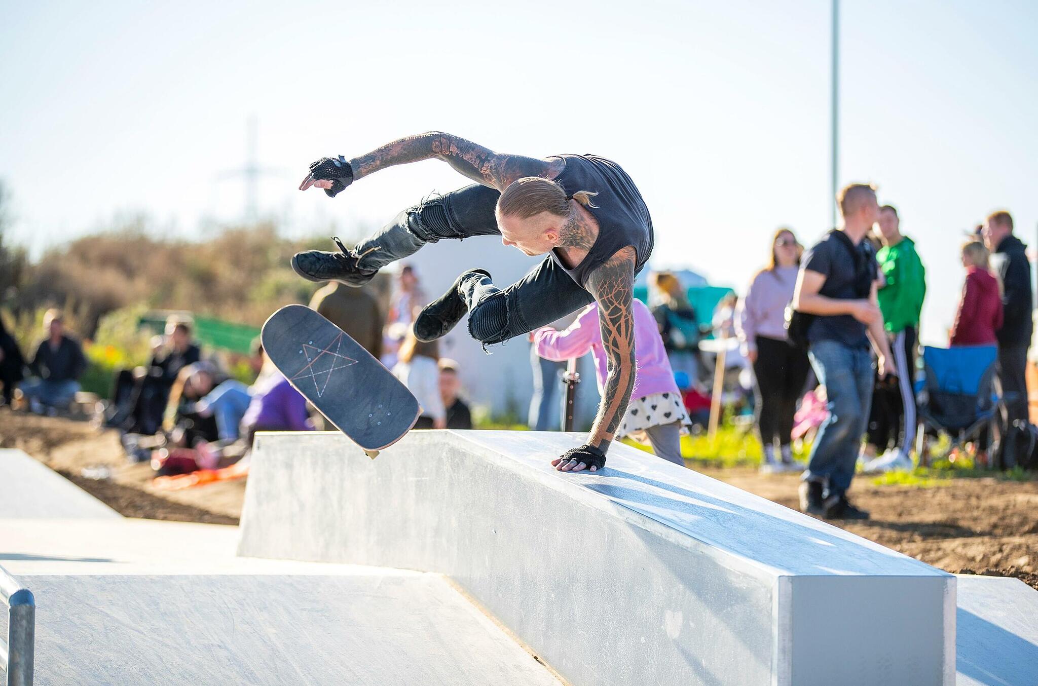 Neuer Funpark Ein Paradies aus Beton für Knetzgau Heute lebt der 28-jährige Phil Morgan in Magdeburg. Zur Eröffnung des Skateparks ist er aber extra in die Heimat gefahren. // Rene Ruprecht Dominik Schönmann aus Zeil hat’s drauf. Er gleitet mit dem Skateboard auf dem Handlauf – so sieht ein Slide aus! // Rene Ruprecht Der Bike- und Skatepark in Knetzgau bei der Eröffnung. // René Ruprecht Der Bike- und Skatepark in Knetzgau bei der Eröffnung. Die Bowl // René Ruprecht Ein Wahnsinn, was die Burschen für eine Akrobatik zeigten. // Rene Ruprecht Ein Wahnsinn, was die Burschen für eine Akrobatik zeigten. // René Ruprecht Johannes Folger moderierte // René Ruprecht Ein Wahnsinn, was die Burschen für eine Akrobatik zeigten. // René Ruprecht Ein Wahnsinn, was die Burschen für eine Akrobatik zeigten. // René Ruprecht von Christian Licha,René Ruprecht TEILEN  11.10.2021 Knetzgau – Ab sofort heißt es Pumpen, Sliden und Grinden: Der neue Bike- und Skatepark in Knetzgau ist eröffnet. Sein Zweck: Jede Menge Spaß. Dass das ganze Ding eine halbe Million Euro gekostet hat, interessiert hier keinen. Phil Morgan, Max Krivy oder Dominik Schönmann interessiert was ganz anderes: zum Beispiel über den Handlauf sliden, das Board schräg gestellt. Oder einen halben Meter über der Bowl hängen, Sekundenbruchteile in der Luft, geiler Moment, draußen am Rand stehen die anderen und fragen sich, wie der das macht, der Max. Professionelle Skaterkunst Bei der Eröffnung des neuen Fun- und Skateparks hatten die Profis ihren Auftritt, manche, tätowiert und mit moderner Punkerfrisur, gänzlich unbekannt, manche, wie der Profiskater Phil Morgen (28) in Magdeburg lebend, ursprünglich aus Knetzgau stammend. Marcel Hillus (25) hat es aus Hambach hierher gezogen, Max Krivy (12) aus Sennfeld beherrscht seinen Scooter nach mittlerweile eineinhalb Jahren als wäre es sein verlängerter Fuß. Sie gleiten über ein Geländer, sie fliegen hoch über den Rand, die kleinen Rollen krachen auf den harten Beton, Helm? Brauchen sie nicht. Die Kinder am Rand, von den Eltern zum Helmtragen verdonnert, bestaunen die aberwitzigen Sprünge und Manöver. Unfassbar, was man mit einem Scooter so alles machen kann. Die Gemeinde Knetzgau ergatterte Fördergelder, um diese Attraktion bauen zu können. Drei Jahre Planungszeit liegen hinter den Verantwortlichen. Der neue Skate- und Bikerpark im Knetzgauer Gewerbegebiet ist jetzt offiziell eröffnet und am Wochenende strömen über 500 Menschen zu der neuen Attraktion in der Hans-Kötzner-Straße 7, die in der Region ihresgleichen sucht. So ein Wellenkurs wäre für Autofahrer die Hölle, für Kinder und Jugendlich auf Rollern und Skates ist es einfach der Traum. // Rene Ruprecht Die Jugendlichen werden sich hierherbeamen oder den Eltern unendlich auf die Nerven gehen, damit sie sie her lassen. Im Westen des Grundstückes liegt der 660 Quadratmeter große Streetpark. Den Verhältnissen auf einer ganz normalen Verkehrsstraße nachempfunden und asphaltiert, gibt es drei Ebenen mit ganz verschiedenen Obstacles (Hindernissen). Hier kann man springen, sliden, grinden – es sieht nicht gerade ungefährlich aus. Direkt im Anschluss liegt die 200 Quadratmeter große Bowl, eine Schüssel im Boden, die vielseitige Variante einer Halfpipe. Östlich davon erstreckt sich der 300 Quadratmeter große Pumptrack. Ein asphaltierter Rundkurs mit jeder Menge Wellen. Die Skater nennen es Pumpen, wenn sie abwärts auf den Wellen Geschwindigkeit aufnehmen. Wer das beherrscht kommt durch den Rundkurs ohne Anstoßen oder Anschubsen – eine Kunst. Die aber theoretisch schon Kinder mit dem Laufrad erlernen können, wenn sie ein bisschen geschickt sind. Geöffnet bis Einbruch der Dunkelheit Die Anlage wartet auf Mountainbike, BMX-Rad, Scooter-Roller, Skateboard oder Inlineskates und ihre Besitzer ab acht Jahren. Und die können hier Klacken und Klappern mit ihren Gefährten, werktäglich von 9 bis 22 Uhr sowie an Sonn- und Feiertagen von 9 bis 21 Uhr, eben bis Einbruch der Dunkelheit, ohne dass es jemanden stört. Eltern und Geschwister finden eine überdachte Sitzgelegenheiten und eine behindertengerechte und barrierefreie Toilettenanlage. Ein bisschen grau und fad sieht es noch aus. Blühwiesen entstehen an den Randbereichen, sagt Marco Depner von der Gemeinde Knetzgau und ergänzt: „Wenn alles grün ist, sind auf dem Rasen natürlich auch Picknicks möglich.“ Ein Wahnsinn, was die Burschen für eine Akrobatik zeigten. // René Ruprecht Die Gemeinde hat die Weichen gestellt. In nächster Nähe siedelt sich voraussichtlich ein Geschäft für den Biker- und Skater-Bedarf an, und es hat sich ein Verein gegründet, der dafür sorgt, dass es auf dem neuen Domizil der Jugend nicht drunter und drüber geht. Der Main-Action-Sports e. V. mit Sitz in Knetzgau hat bereits rund 40 sportbegeisterte Mitglieder, wie der Vorsitzende Johannes Folger erzählt. Mit seinen Stellvertretern Jannik Schnapp und Stefan Zösch sowie weiteren Ehrenamtlichen will Folger nicht nur Aufpasser sein. „Wir wollen uns im ganzen Landkreis engagieren und beratend mitwirken oder andere Skateanlagen wieder auf Vordermann bringen“, sagt er und denkt an die Anlage in Zeil: „gemeingefährlich“, weil dort vieles zerstört worden ist. Der Kontakt Stadt Zeil ist schon gesucht, Planungen im Gange. In Knetzgau möchte „Main-Action-Sports“ auch Veranstaltungen und Höhepunkte bieten. Für Vereinsmitglieder soll es Aktionstage geben. Dann können sie sich Equipment (Skateboard, Roller, Bikes) ausleihen. Momentan sind die Mitglieder zwischen zwölf und 30 Jahre alt. Anmelden im Verein Interessenten eines jeden Alters können über Instagram auf dem Profil @mainactionsportsev oder per E-Mail an mainactionsports@gmail.com Kontakt mit der Vorstandschaft aufnehmen. Bürgermeister Stefan Paulus würdigt bei der Eröffnung Thomas Zettelmeier. Der Koordinator für Kinder- und Jugendarbeit der Gemeinde Knetzgau hat in Workshops und u
