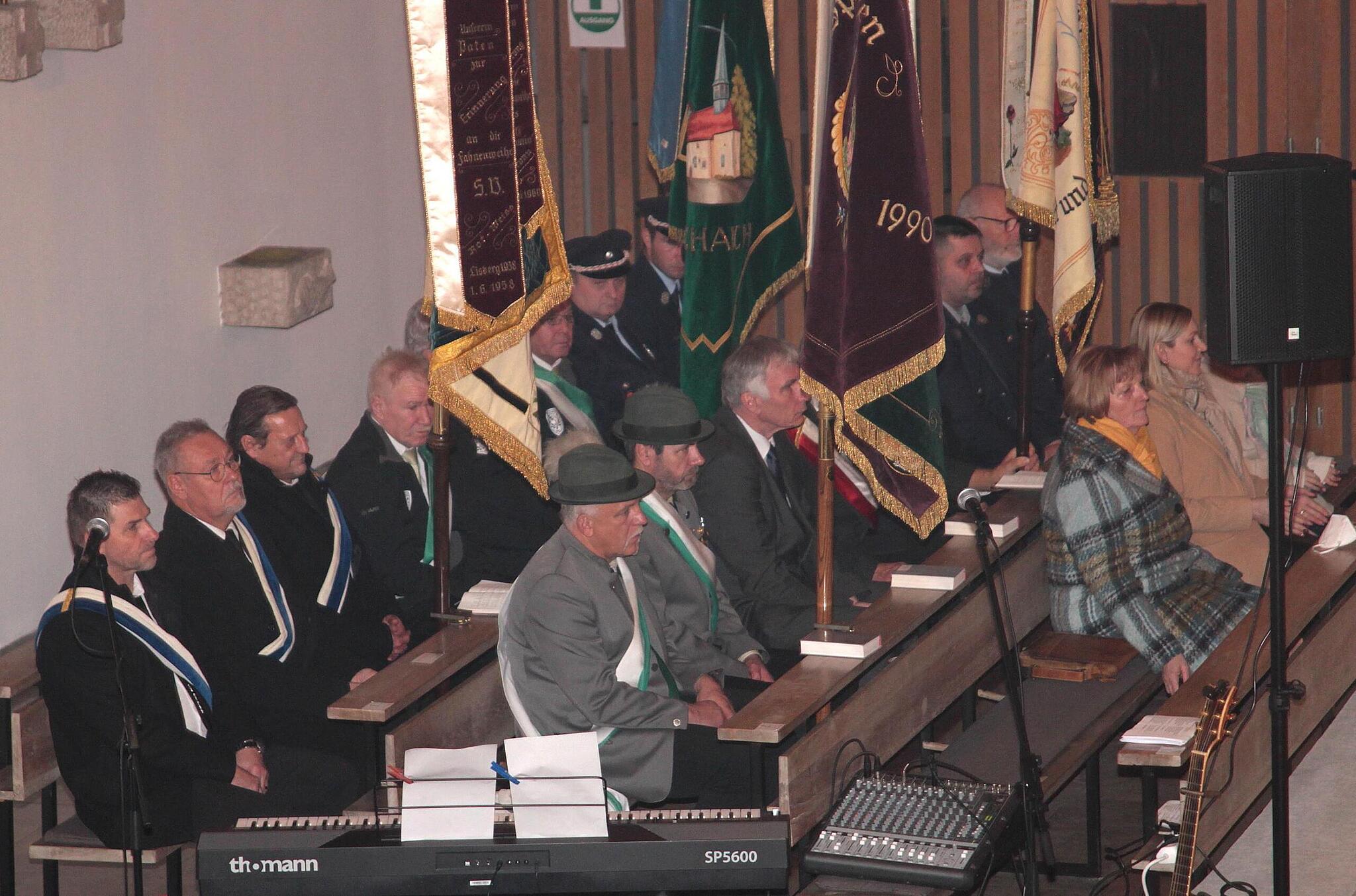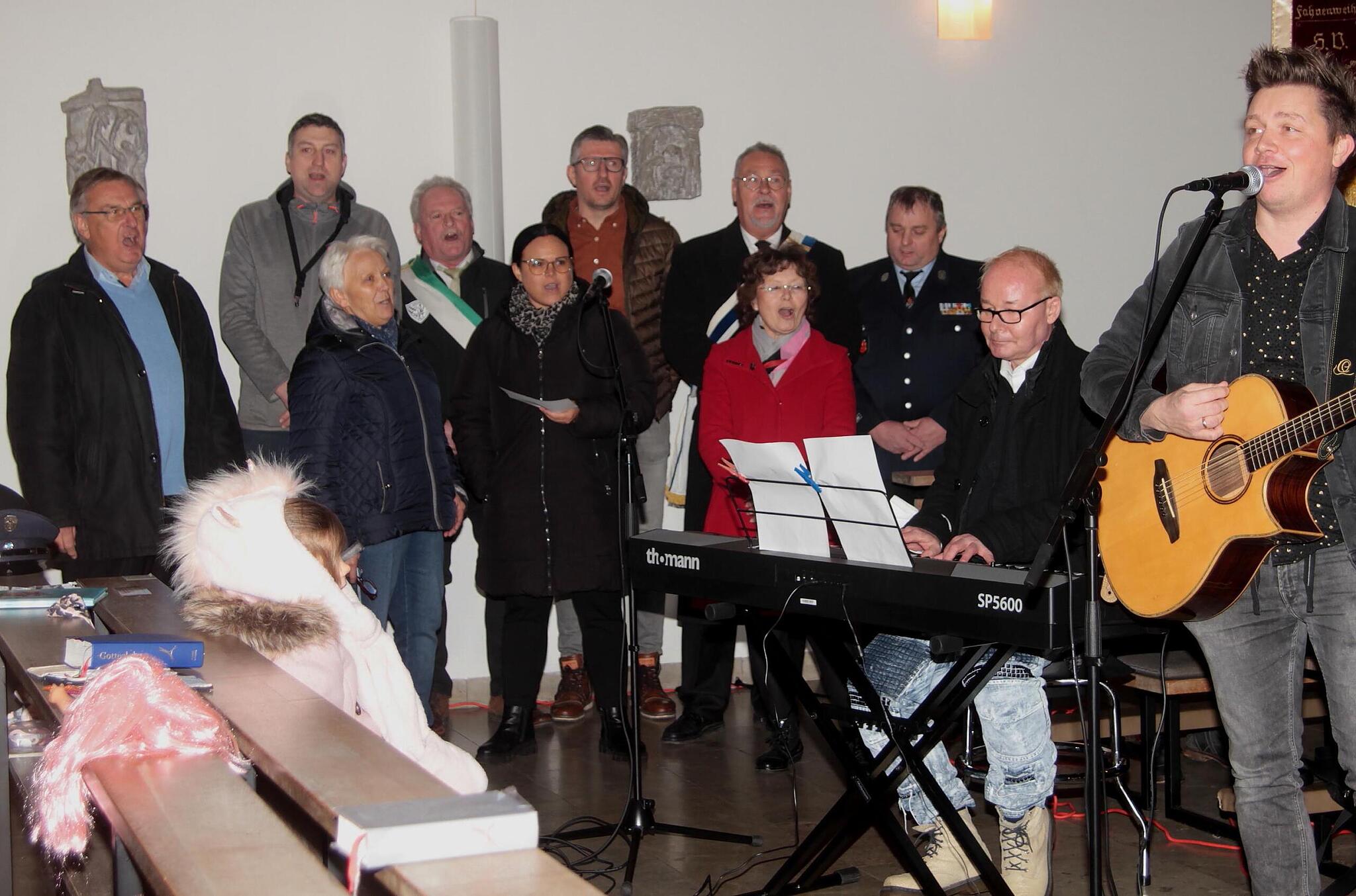 Jubiläum Die Steigerwälder feiern ihr 1000-jähriges Dorf Zum Beginn des Jubiläumsjahres 1000 Jahre Kirchaich kamen die Kirchaicher in einem Festgottesdienst zusammen. Später beim Empfang auf dem Dorfplatz sorgte die Blaskapelle Kirchaich für musikalische Unterhaltung. // Günther Geiling von Günther Geiling TEILEN  02.01.2023 Oberaurach – Auftakt für ein rauschendes Jubiläumsjahr: Prominenter Besuch war im Neujahrsgottesdienst der Bamberger Erzbischof em. Ludwig Schick. „1000 Jahre Kirchaich ist etwas Einmaliges und Grund genug zu feiern. Ein spannendes, ein aufregendes und ein abwechslungsreiches Jahr liegt vor uns. Lange haben wir daraufhin gefiebert und ich danke zu Beginn schon allen für ihre großartigen Ideen zum Jubiläumsjahr unter dem Motto: ,Mir sein Aicher und des seit 1000 Joar.‘“ Stolz eröffnete Julian Mauchel als Vorsitzender des Ortskulturrings in Kirchaich das große Jubiläum und war überwältigt von der großen Teilnahme der Bürgerschaft. Der eremitierte Erzbischof von Bamberg Ludwig Schick (links) mit Kaplan Abbe Moise beim Festgottesdienst in Kirchaich. // Günther Geiling In der St. Ägidius-Kirche waren die Fahnenabordnungen der Vereine aufmarschiert, der Gospelchor aus Bamberg sang „o happy day“ und der emeritierte Erzbischof von Bamberg, Ludwig Schick, hielt den festlichen Neujahrsgottesdienst. Das große Amen In den Mittelpunkt seiner Predigt stellte er das „Amen“, als das meist gebrauchte Wort auf der ganzen Welt, das sogar die drei großen Religionen wie die Juden, Christen und Islamisten zum Abschluss ihrer Gebete aussprechen würden. Es stamme aus dem Hebräischen und bedeute ein Dreifaches: „Ich stimme dem Willen Gottes zu – ich vertraue darauf, dass es gut wird – ich mache mit bei Gottes Willen.“ An dem neuen Maskottchen „Aicher Moggl“ hatten sowohl die Kinder ihre Freude wie auch Bürgermeister Thomas Sechser, Zweiter Bürgermeister Hans Albert, MdL Steffen Vogel, Gemeinderat Klaus Thomas und Markus Kager vom Ortskulturring (von links). // Günther Geiling Leider sei dieses Wort aber auch das „Ungeachtetste“. „Das Amen mit Bedacht könnte neue Kräfte wecken, wenn wir so in das neue Jahr und das neue Jahrtausend hineingehen und bereit sind, etwas daraus zu machen.“ Das alte Jahr sei gewiss nicht leicht und gut gewesen mit Pandemie, dem unsinnigen Krieg und den 21 Millionen Flüchtlingen, davon einer Million Flüchtende bei uns, und den Skandalen in Politik und Kirche. Aber auch Gutes sei dabei gewesen. Kirchaich gehe auf sein zweites Jahrtausend zu. „Wir müssen dankbarer werden. Das ist eine große Kraftquelle. Wenn wir tiefer nachdenken, entdecken wir auch Gutes.“ So lud er ein, das nächste Jahr unter dieses „Amen“ zu stellen. Die St. Ägidius-Kirche war bis auf den letzten Platz besetzt, // Günther Geiling Bürgermeister Thomas Sechser dankte Erzbischof Schick, dass er sich die Zeit genommen habe, „das neue Jahr und neue Jahrtausend mit uns zu beginnen. Endlich ist es so weit, dieses große Fest feiern zu können. Die Kirchaicher Vereine haben ja häufig schon bewiesen, dass sie große Feste organisieren und feiern können. Über 20 verschiedene Termine stehen im Programm und das schlägt alles Bisherige. Wir kommen aus dem Feiermodus dabei gar nicht heraus.“ Seinen besonderen Dank sprach er dem Ortskulturring Kirchaich aus mit den Vorsitzenden Julian Mauchel und Markus Kager mit ihrem Team. „Hier wird Hervorragendes geleistet und dabei geht einem das Herz auf!“ Auch die Fahnenabordnungen der örtlichen Vereine waren vertreten. // Günther Geiling MdL Steffen Vogel gratulierte zum 1 000. Dorfjubiläum und meinte „darauf könnt ihr stolz sein mit eurem lebendigen Vereinsleben, eurer guten Dorforganisation und einer Gemeinschaft, die zusammenhält.“ Dabei streifte er auch das Ziel von der „Gleichwertigkeit der Lebensverhältnisse in Stadt und Land“ und forderte, dass der ländliche Raum viel mehr seine Stärken zeigen sollte, als auf Schwächen zu blicken. Er wünschte er ein gutes Jubiläumsjahr und auch er freue sich schon auf viele Begegnungen. Julian Mauchel, Vorsitzender des „Ortskulturrings“, sah man die Freude über eine voll Kirche direkt an und er gab auch seiner Freude Ausdruck, dass der emeritierte Erzbischof Ludwig Schick den Neujahrsgottesdienst zelebrierte. „Das zeigt, dass es sich hier um etwas Besonderes handeln muss. Lange haben wir darauf gefiebert sowie unzählige Sitzungen, Besprechungen und Telefonate durchgeführt. Doch alles hat sich gelohnt, und sie alle sind der Beweis dafür.“ Das neue Kirchaicher Lied „Mir sin Aicher und des seit 1000 Jahr“ stellte hier Komponist und Texter Tobias Thomann (rechts), bekannt als „Dorfrocker“, mit seiner Singgruppe vor. // Günther Geiling Alles gehe aber auf Kaiser Heinrich II. zurück, dem Gründer des Erzbistums Bamberg, der heilig gesprochen und auch im Dom zu Bamberg beigesetzt wurde. „Kaiser Heinrich sagt man heute nach, dass er sein Land vom Sattel aus regierte; soll heißen, er befand sich häufig auf Reisen, so auch im Jahre 1023.“ Erstmals genannt als Harnideseich Zu seinem Tagesgeschäft habe auch die Ausfertigung von Urkunden gehört „und die für uns wichtige Urkunde ist eine sogenannte Wildbannurkunde. Damit verleiht Heinrich dem Würzburger Bischof das Recht zur Hohen Jagd, also zur Jagd auf Hochwild, in einem genau beschriebenen Waldgebiet im Steigerwald – letztlich keine Geste von good will, sondern eher eine Ausgleichsmaßnahme dafür, dass er zuvor Gebiete für die Gründung seines Bistums genötigt hatte.“ Dieses „Harnideseich ist die erste urkundliche Erwähnung unseres Ortes; der historische Moment, der unser Kirchaich in der Geschichte zum ersten Male offiziell in Erscheinung treten lässt“. Der Name habe sich später zu „Eich“ und „Aich“ geändert, das 400 Jahre später zum Kirchdorf erhoben wurde. Voller Stolz betonte Julian Mauchel „das ist meiner Meinung nac