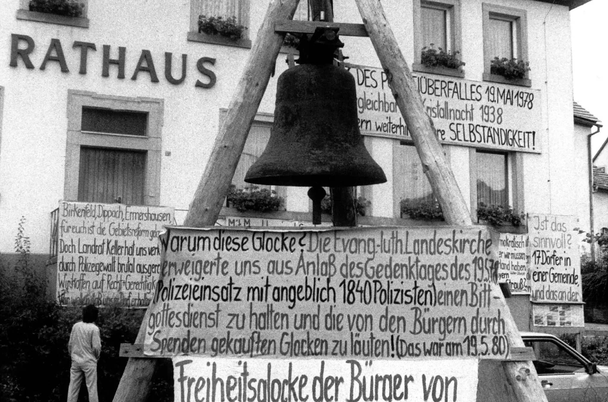 Entwicklung Auszeichnung zum Jubiläum Sichtbarer Protest: Jahrelang prägten Transparente und die „Freiheitsglocke“ das Ortsbild, weil die Ermershäuser eigenständig bleiben wollten. // FT-Archiv von Martin Schweiger TEILEN  20.06.2024 Ermershausen – Vom „Rebellendorf“ zum „Ort der Demokratie“: Passend zum 975. Ortsjubiläum wird Ermershausen ganz besonders gewürdigt – und von ganz oben. Ab dem Jahr 1978 protestierten die Bürgerinnen und Bürger von Ermershausen gegen die von der kommunalen Gebietsreform vorgesehene Eingemeindung nach Maroldsweisach. Sie hielten ihren Protest über 15 Jahre hinweg aufrecht und engagierten sich dafür politisch. Damals galt Ermershausen als „Rebellendorf“. Nun, fast 50 Jahre später ist von „Rebellion“ keine Rede mehr. Im Gegenteil: Der Kampf um die Eigenständigkeit der Gemeinde wird von Landtagspräsidentin Ilse Aigner (CSU) gewürdigt. Sie kommt am Donnerstag, 27. Juni, wenn Ermershausen als einer von 13 Orten in Bayern zum „Ort der Demokratie in Bayern“ ernannt wird. Vorm Ermershäuser Rathaus wird ab nächste Woche die Stele „Ort der Demokratie“ stehen. // Martin Schweiger/FT-Archiv Ausstellung im Rathaus Nach der Begrüßung im Rathaus durch Bürgermeister Günter Pfeiffer werden Landtagspräsidentin Ilse Aigner sowie Landrat Wilhelm Schneider Festansprachen halten. Anschließend wird eine Gedenkstele am Rathaus enthüllt und die Ausstellung „Orte der Demokratie in Bayern“ im Rathaus eröffnet. Die Ausstellung ist vom 28. Juni bis zum 3. Juli täglich von 8 bis 18 Uhr geöffnet. Der Eintritt ist frei. Streitpunkt Gebietsreform Auf Beschluss des bayerischen Landtags wurde von 1969 bis 1978 in Bayern eine kommunale Gebietsreform mit dem Ziel einer effizienteren Verwaltung durchgeführt. Die Zahl der Landkreise und der kreisfreien Städte wurde halbiert, die der Gemeinden von 7073 auf 2052 reduziert. Bereits im Vorfeld gab es in Ermershausen Protest gegen die geplante Eingemeindung nach Maroldsweisach. Schließlich verweigerte der Ort die Herausgabe der Gemeindeakten an die Verwaltung in Maroldsweisach. Der Freistaat Bayern reagierte hart: In der Nacht auf den 19. Mai 1978 umstellten Polizisten den Dorfplatz in Ermershausen und räumten das Rathaus. Widerstand war zäh Aber die Ermershäuser gaben nicht auf. Jahrelang prägten Transparente mit ablehnenden Sprüchen zur Eingemeindung das Ortsbild. 1989 lehnte der Landtag einen Antrag auf Ausgliederung ab. Ermershausen wählte einen anderen Weg: Auf Anraten von CSU-Kreisrat Sebastian Freiherr von Rotenhan (Rentweinsdorf) traten viele Ermershäuser in die CSU ein. Als größter CSU-Ortsverband im Landkreis konnte Ermershausen sich neues Gehör verschaffen. 1994 wurde die Eingemeindung für „gescheitert“ erklärt. Das „Rebellendorf“ wurde wieder selbstständig und dient nun als Beispiel für zivilgesellschaftlichen Protest und politisches Engagement. Heute ist Ermershausen auch als Faschingshochburg bekannt. // Martin Schweiger Ungewöhnliche Partnerschaft Ebenso wie Ermershausen hat sich Unterammergau seine Eigenständigkeit hart erkämpft. Doch im Gegensatz zu den Unterfranken gewann Unterammergau schon 1980 den Kampf um die Unabhängigkeit. Ermershausen musste noch 14 Jahre warten. Beide Gemeinden waren damals Mitglied der Aktionsgemeinschaft Demokratische Gemeindegebietsreform. Die Initiative zum ersten Treffen ging von Jugendlichen aus Unterammergau aus. Im November 1978 fuhr erstmals ein Bus aus Unterammergau in das 386 Kilometer entfernte Ermershausen. Es entstanden Freundschaften. Vereine besuchten sich, wie der Sportverein, die Feuerwehr oder die Damengymnastikgruppe. Im Dezember 2019 wurde die Partnerschaft zwischen Ermershausen und Unterammergau offiziell in einem Vertrag besiegelt. Es ist – laut bayerischem Gemeindetag – die erste Partnerschaft zwischen zwei bayerischen Kommunen. Im Oktober 2022 war der damalige Landesbischof Heinrich Bedford-Strohm zu Gast. // Martin Schweiger/FT-Archiv Das Progrmam vom 28. bis 30. Juni 1049 wird Ermershausen als „Ermannshuson“ in „Helidungero marca“ (in der Hellinger Markung) erstmals urkundlich erwähnt. Vom Freitag, 28., bis zum Sonntag, 30. Juni, feiert die mit knapp 600 Einwohnern kleinste Gemeinde Unterfrankens die Ersterwähnung vor 975 Jahren. Freitag Ab 18 Uhr Bewirtung im Festzelt in der Dorfmitte. Ab 21 Uhr beginnt die Rocknacht mit „Late Night“ und Barbetrieb. Samstag Bewirtung in und am Festzelt mit Kaffee, Kuchen und Getränkeausschank ab 14 Uhr. Ab 14 bis 17 Uhr werden Dorfspaziergänge in und um Ermershausen angeboten. Um 18 Uhr begrüßt Bürgermeister Günter Pfeiffer zum Ermershäuser Unterhaltungsabend mit dem Anstich von knapp 100 Liter Freibier. Um 21 Uhr ist dann Party-Time mit „Uschi Grande“ und die Bar öffnet. Den Hunger stillen Food-Trucks. Zudem gibt es Spezialitäten vom Grill. 9.30 Uhr Festgottesdienst in der evangelischen Kirche. Anschließend Weißwurstfrühstück und Frühschoppen, musikalisch begleitet von den Sternberger Musikanten. Ab 11 Uhr großes Markttreiben (bis 16 Uhr) rund um dem Festplatz in der Dorfmitte mit einer Spielstraße für Groß und Klein. Ab 12 Uhr Mittagessen angeboten, anschließend Kaffee und Kuchen. Auch die Food-Trucks bieten den ganzen Nachmittag Speisen an, zudem gibt’s Warmes vom Grill.