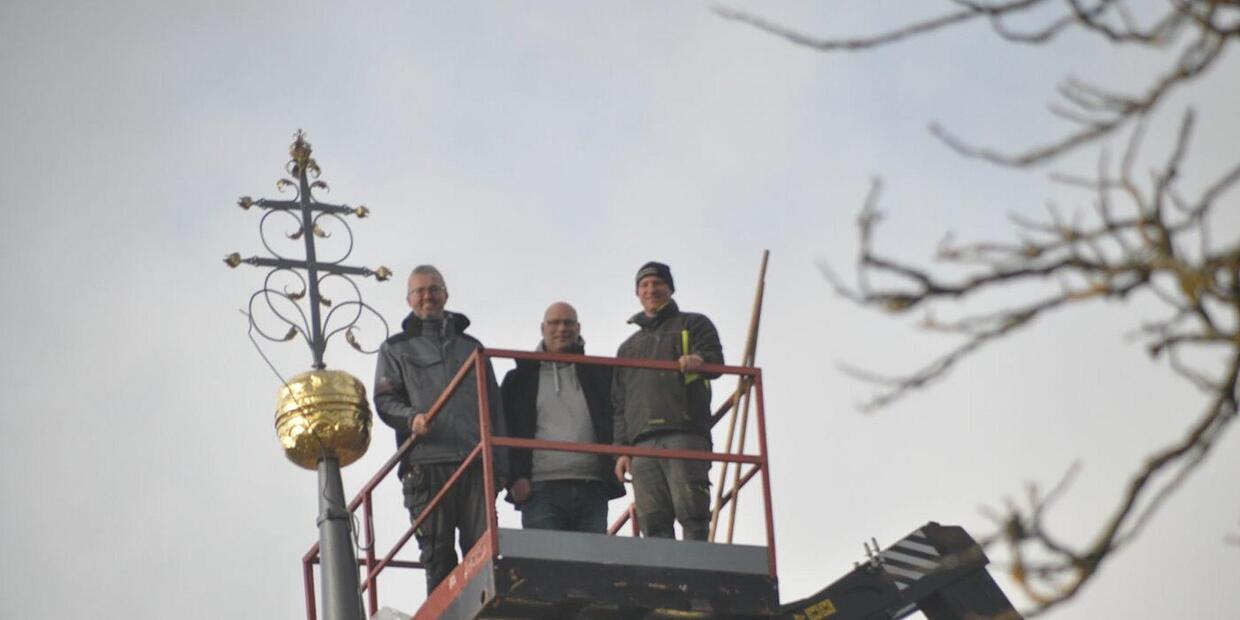 – Euromünzen, Dokumente aus der Zeit und sogar eine FFP2-Maske finden künftige Generationen, wenn irgendwann man wieder die Turmkugel der Leuzendorfer Kirche auf den Boden geholt wird.