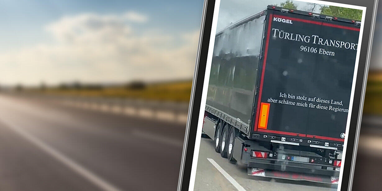 Statement auf Laster "Ich schäme mich für diese Regierung" Klumb, Dagmar von Laura Schmidt TEILEN  08.06.2023 Ebern – Der Lkw eines Eberner Spediteurs (Lkr. Haßberge) provoziert auf seinen Fahrten und geht damit viral. Der Unternehmer verrät exklusiv, was ihn so wütend macht. Artikel anhören Sie können uns nicht hören? Diese Funktion können Sie exklusiv mit PLUS nutzen. Erhalten Sie uneingeschränkten Zugriff auf alle Audioinhalte, Artikel und vieles mehr. Vorlesefunktion freischalten Bereits -Zugriff? Jetzt Anmelden Na, erwischt! Du bist wohl ein bisschen zu neugierig, was?