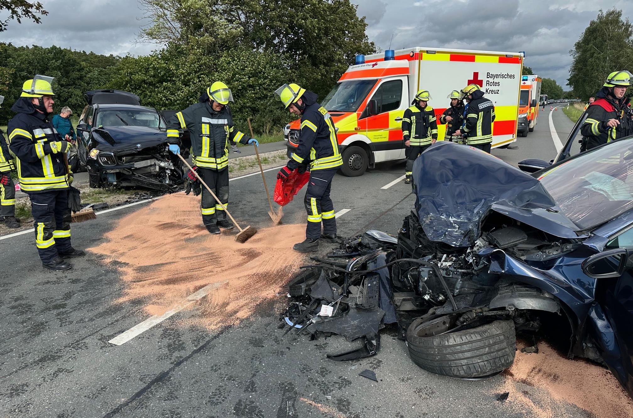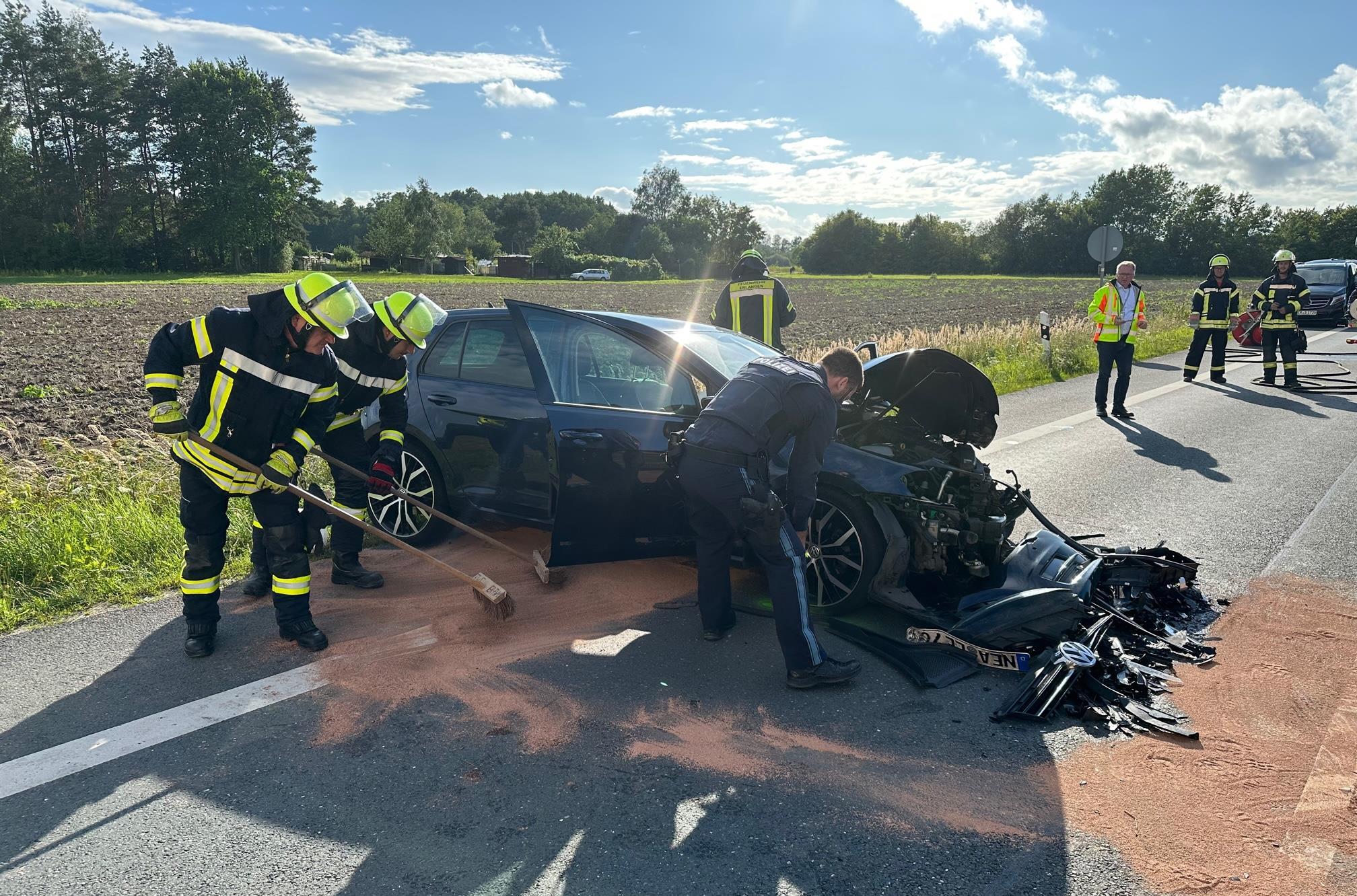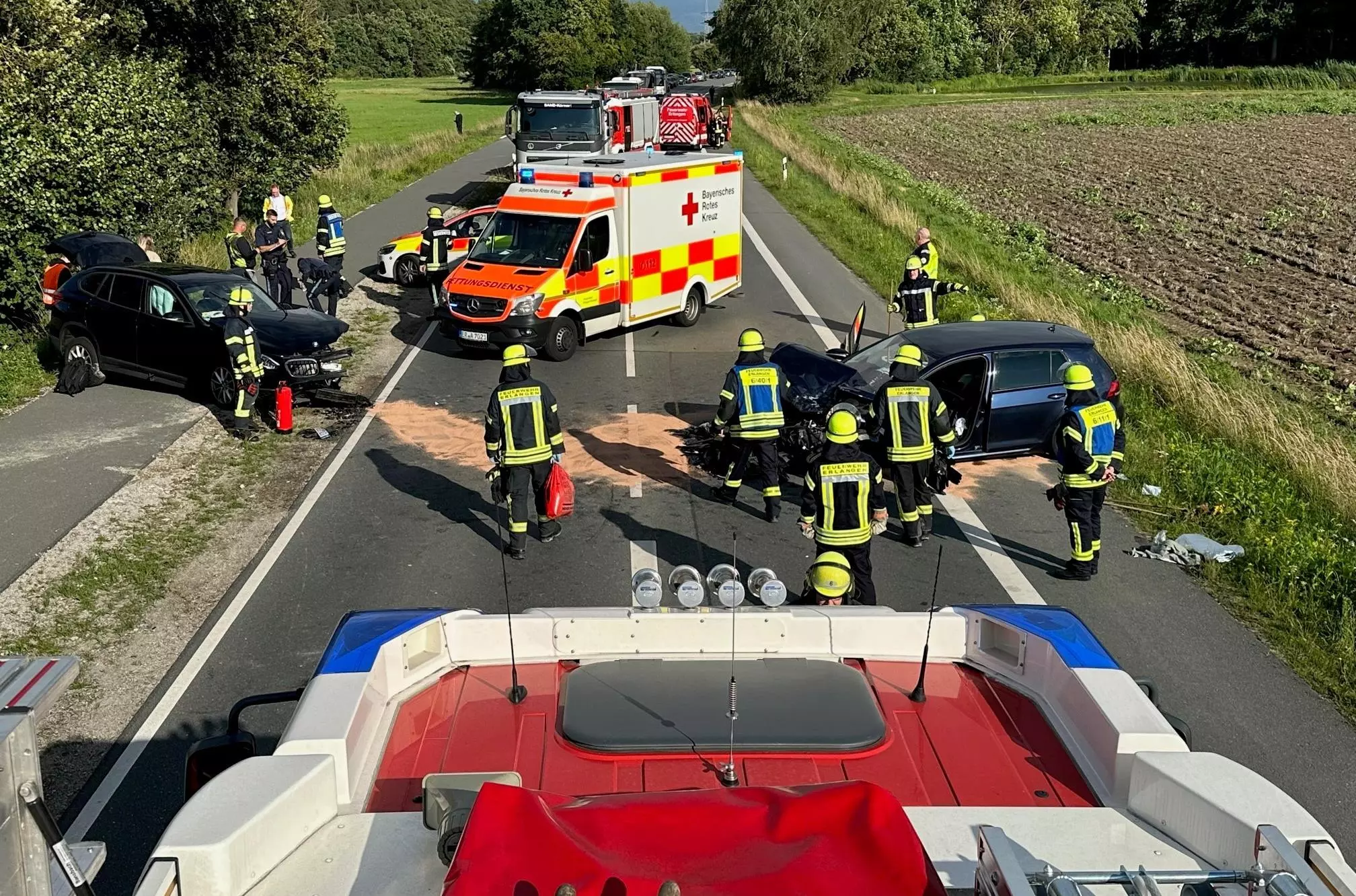 Frontalzusammenstoß Zwei Personen bei Dechsendorf schwer verletzt Ein Aufgebot an Einsatzkräften sorgte dafür, dass die Straße nach dem Einsatz wieder befahren werden konnte. // Michael Busch von Michael Busch TEILEN  08.08.2023 Dechsendorf – Ein Golf gerät zwischen Dechsendorf und Erlangen auf die Gegenfahrbahn und kollidiert frontal mit einem BMW. Zwei schwer verletzte und eine leicht verletzte Person sowie hoher Sachschaden sind die Folgen eines Frontalzusammenstoßes zweier Fahrzeuge am Montag auf der Weisendorfer Straße zwischen Erlangen und Dechsendorf. Mehrere Stunden am Abend Zwischen ging auf der Staatsstraße annähernd nichts mehr, der Unfall sorgte für lange Staus. Die ausgelaufenen Betriebsstoffe wurden durch die Feuerwehrler beseitigt. // Michael Busch Wie die Polizei berichtet, geriet gegen 17.20 Uhr geriet der 54-jährige Fahrer eines VW Golf auf der Weisendorfer Straße, kurz nach dem Ortsende von Dechsendorf in Richtung Erlangen, aus ungeklärter Ursache auf die Gegenfahrbahn. Dort kollidierte er mit einem entgegenkommenden BMW, der mit zwei Personen besetzt war. Bei dem Frontalzusammenstoß wurden der Unfallverursacher sowie der 33-jährige Beifahrer im BMW schwer verletzt. Sie mussten vom Rettungsdienst in eine Klinik eingeliefert werden. Die Fahrerin des BMW zog sich nur leichtere Verletzungen zu. An beiden Fahrzeugen entstand Totalschaden, der sich auf etwa 40.000 Euro beziffert. Auf Anordnung der Staatsanwaltschaft stellten die Polizeibeamten den VW-Golf des Unfallverursachers sicher. Zeugen hatten beobachtet, dass der VW unvermittelt nach links und damit auf die Gegenfahrbahn geriet. Bei dem Verkehrsunfall entstand hoher Schaden. // Michael Busch Während der Unfallaufnahme musste die Staatsstraße für den Verkehr gesperrt werden. Die beiden Fahrzeuge blockierten die Fahrbahn und den parallel laufenden Rad- und Fußweg. Neben der Polizei und dem Rettungsdienst von BRK und ASB waren auch die Feuerwehr Erlangen und die Stadteilwehr aus Dechsendorf im Einsatz. Die Dechsendorfer übernahmen die so genannte Brandstellensicherung und die Regelung des Verkehrs. Im BMW wurden zwei Menschen verletzt. // Michael Busch Nach der Patientenversorgung galt es auf die Abschleppfahrzeuge zu warten, um letztlich die Straße zu reinigen. Während des Einsatzes war die Staatsstraße komplett gesperrt. Der Stau aus Erlangen reichte zeitweise bis zum Kanal. In Dechsendorf wurden die Fahrzeuge über Kosbach umgeleitet. Lob gab es von den absperrenden Kräften. „Die meisten Autofahrer hatten Verständnis und waren nicht wirklich genervt. Haundorf Wegen Baustellen: Massig Unfälle auf A3 Baustellen behindern den Verkehr auf der A3. Nun kollidierten dort binnen weniger Tage etliche Autos. Laut Polizei hat das vor allem einen Grund. Nach Bränden in Weisendorf Hat die Feuerwehr ein Problem mit Quereinsteigern? Die Feuerwehr Weisendorf soll einen Serienbrandstifter in ihren Reihen haben. Muss die Ausbildung reformiert werden? Seine Kameraden sind skeptisch. Einsatz in Baiersdorf Thallium-Vergiftung bringt Retter in Lebensgefahr Einsatzkräfte werden zu einem Fall von Vergiftung durch Thallium-Acetat gerufen. Dass der Stoff leicht übertragbar ist, war den Rettern unbekannt. Das stellt nun die Kommunikation der Notdienste infrage. UPDATE A3 bei Gremsdorf Milchsee auf der Autobahn nach Lkw-Unfall Nach einem Auffahrunfall zweier Lastwagen auf der A3 sind mehrere tausend Liter Kondensmilch auf der Autobahn gelandet. Die Bergung dauert zur Stunde noch an.