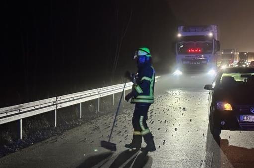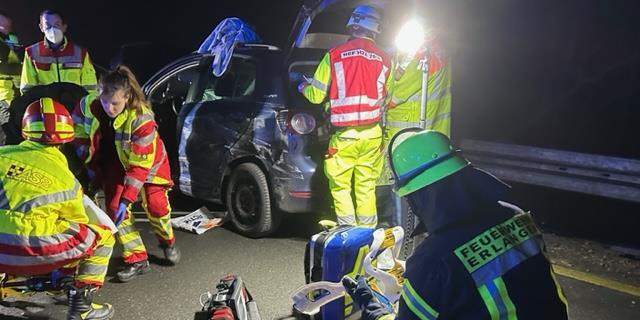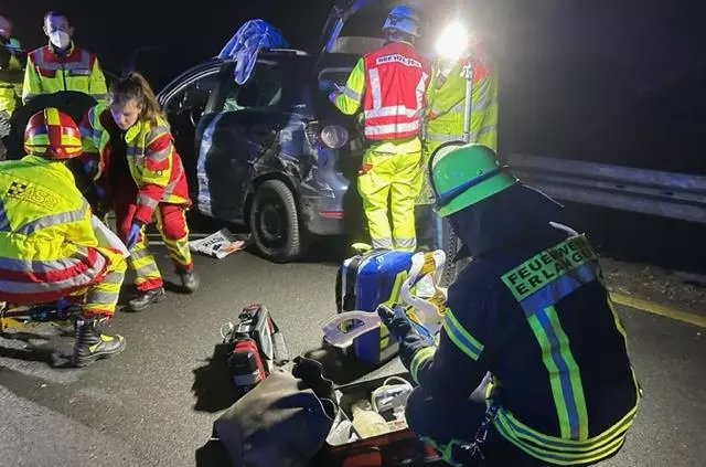 Auf der A3 Zu schnell in die Autobahn-Baustelle: Unfall Der Autofahrer wurde bei dem Unfall schwer verletzt. // Michael Busch von Redaktion TEILEN  16.02.2023 Herzogenaurach – Vermutlich überhöhte Geschwindigkeit war am Mittwochabend die Ursache für einen Verkehrsunfall auf der A3 in Fahrtrichtung Würzburg. Der Unfall ereignete sich zwischen den Anschlussstellen Frauenaurach und Erlangen-West. Zeugen: Auto war deutlich zu schnell Um 21.15 Uhr war, wie die Verkehrspolizei Erlangen mitteilt, ein 29-jähriger Mann mit seinem VW Golf im Baustellenbereich auf der linken Fahrspur unterwegs. Nach Angaben von Zeugen fuhr er mit massiv überhöhter Geschwindigkeit. Die Feuerwehr Dechsendorf kümmerte sich um die Reinigung der Unfallstelle. // Oliver Geyer Dies dürfte auch die Ursache sein, warum er in einer Fahrbahnverschwenkung zwischen den Anschlussstellen Frauenaurach und Erlangen-West die Kontrolle über sein Fahrzeug verlor. Zwischen Planke und Sattelzug eingekeilt Er prallte in die Außenschutzplanke und geriet durch die Wucht des Aufpralls noch zwischen die Schutzplanke und einen Sattelzug. Die Feuerwehr Dechsendorf rückte mit mehreren Fahrzeugen an. // Michael Busch Der Unfallverursacher kam mit schweren Verletzungen in eine Klinik. Am Fahrzeug entstand Totalschaden. Auch die Außenschutzplanke wurde erheblich beschädigt und aus der Verankerung gerissen. Deshalb musste in diesem Bereich aus Sicherheitsgründen die rechte Fahrspur gesperrt werden. Diese konnte erst nach der Reparatur der Schutzplanke wieder freigegeben werden. Lesen Sie auch: Nach 5 Unfällen Irrer Raser in Adelsdorf gestoppt Ein 26-jähriger Autofahrer verursacht zwischen Erlangen und Adelsdorf mehrere Verkehrsunfälle und verletzte zwei Personen. Er hatte offenbar Medikamente genommen. Großeinsatz Unfall auf der A3: Helfer versorgen 120 Kinder Ein Reisebus, voll besetzt mit rund 60 Schülern aus Belgien, prallt auf der A3 nahe Mühlhausen auf ein Warnfahrzeug. Vor Ort treffen die Helfer auf zerstörte Fahrzeuge und gestrandete Reisende. Straßensperre Touran prallt bei Weisendorf ungebremst auf Lastwagen Zu einem schweren Verkehrsunfall sind die Feuerwehren Weisendorf, Großenseebach und Höchstadt/Aisch am Mittwochmorgen kurz vor halb neun gerufen worden.