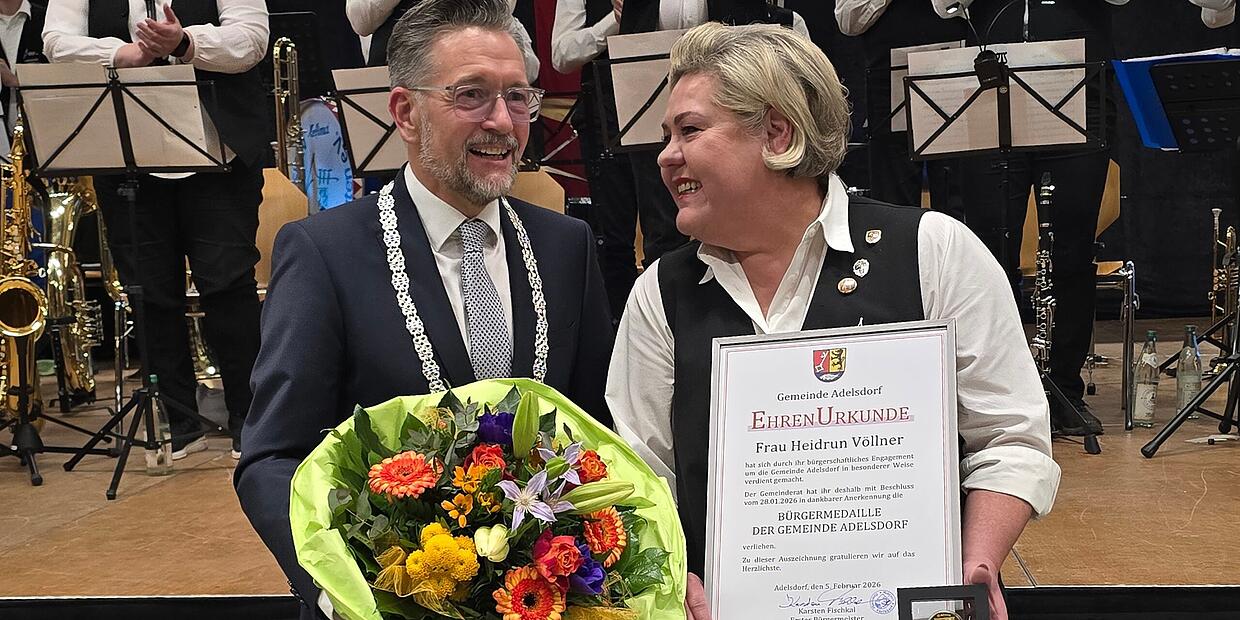 – Heidrun Völlner sorgt seit 26 Jahren dafür, dass Adelsdorf auf der Blasmusik-Landkarte erscheint. Nun hat ihr die Gemeinde eine ihrer höchsten Ehrungen zuteil werden lassen.