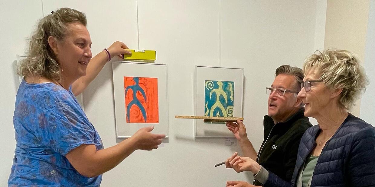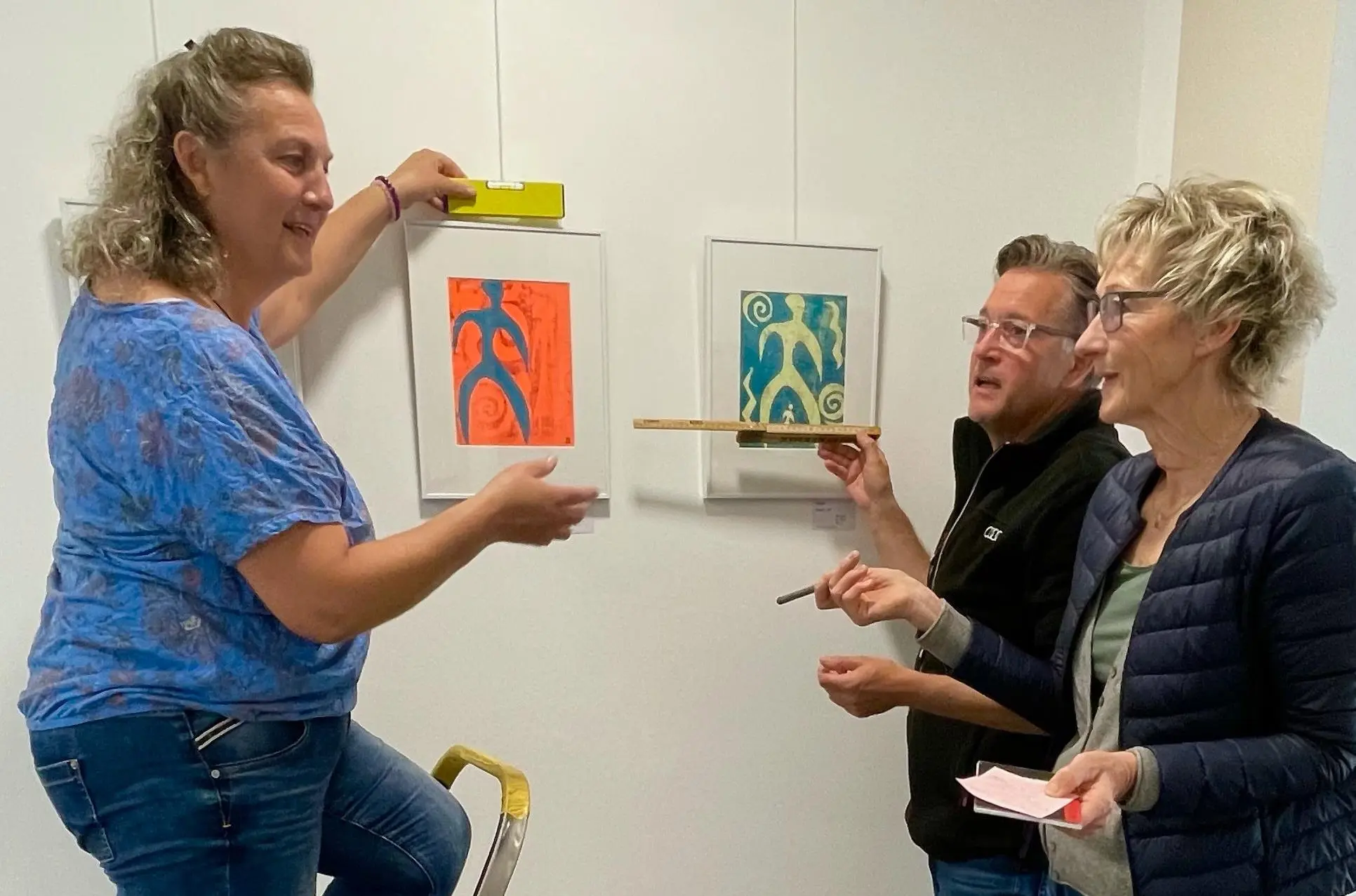 Neue Ausstellung Künstler zeigen ihre Werke im Rathaus in Adelsdorf Künstlerin Nicole Ott (l.), Bürgermeister Karsten Fischkal und Siggi Wolt, Vorsitzende des Vereins Schloss-Kunst Adelsdorf // Johanna Blum von Johanna Blum TEILEN  14.04.2024 Adelsdorf – Heimische Künstler stellen ihre Werke derzeit in Adelsdorf aus. Sie zeigen, was Kunst alles sein kann. Besucher können die Ausstellungsstücke auch kaufen. Vergangene Woche konnte die Vorsitzende des Vereins Schloss-Kunst Adelsdorf, Siggi Wolt, neben Bürgermeister Karsten Fischkal und vielen Vereinsmitgliedern auch einige Vertreter der Gemeinde und Gerd Schneider, den Bürgermeister von Memmelsdorf – insgesamt fast 40 Gäste – im Rathaus begrüßen. Das Rathaus sei zwar von oben bis unten frisch gestrichen, „aber ohne Kunst bleibt es halt blass!“, so Wolt. „Unser Rathaus braucht definitiv Bunt an den Wänden, in Form von Bildern“, betonte sie. Deshalb sei ansprechende Kunst hierfür gesucht worden. Siggi Wolt konnte Alexander Linz, Nicole Ott und Christina Kraus gewinnen. Nun ziert eine bunte Mischung an Kunst die Wände des Rathauses, und Bürgermeister Karsten Fischkal zeigte sich sehr stolz. Christina Kraus, geboren in Erlangen, lebt und arbeitet als freischaffende Künstlerin in Heroldbach/Thurn. Durch ihre Freundin Nicole Ott hatte sie den Weg ins Adelsdorfer Rathaus gefunden. Als Tochter eines Holzbildhauers ist sie seit jüngster Kindheit künstlerisch aktiv. Nach Abschluss des Fachabiturs im Bereich Gestaltung und einigen Semestern Architektur und Bauingenieurwesen belegte sie Meisterkurse im Bereich Illustration an der Schwabenakademie Irsee. Schülerin von Quint Buchholz: Christina Kraus zeigt Bilder in Adelsdorf Seit 2009 ist Künstlerin Christina Kraus Schülerin von Quint Buchholz, einem deutschen Buchautor und Illustrator. Ihre Bilder sind als Originale und auch als Kunstdrucke erhältlich. Kraus ist Illustratorin und Auftragsmalerin für Zeichnungen, Gemälde und persönliche Porträts. Die Künstlerin beschreibt ihre Bilder als „träumerisch“. Sie sollen den Betrachter auf eine ganz besondere Reise mitnehmen – auch wenn es nur ein Traum sei. Nicole Ott, geboren in Delmenhorst, absolvierte die Fachoberschule in Bremen und legte ihr Fachabitur in Gestaltung, Fläche und Plastik ab. Als ausgebildete Sattlermeisterin lebt sie in Röttenbach und beschäftigt sich seit ein paar Jahren wieder intensiv mit Gestaltung und Malerei im künstlerischen Bereich. Sie arbeitet getreu ihrem Slogan: „Farben sind meine Lebensfreude, Lebensfreude ist bunt und manchmal wild – das bin ich und meine Bilder!“ Ott ist erst seit kurzem im Kunstverein Schloss-Kunst Adelsdorf e.V. und beteiligt sich zum ersten Mal an einer gemeinsamen Ausstellung dort. Ausstellung in Adelsdorf: Fotograf Alexander Linz zeigt Lichtbeobachtungen Als Röttenbacherin ist sie natürlich auch Mitglied in der Künstlergruppe Röttenbach, mit der sie erst seit kurzem ihre Werke im Röttenbacher Rathaus präsentiert. Alexander Linz, geboren in Erlangen, lebt und arbeitet in Aisch und ist Gründungsmitglied des Kunstvereins in Adelsdorf. Den Zusammenschluss gibt es mittlerweile auch schon fast 14 Jahre lang, und er zählt im Moment 65 Mitglieder. Alexander Linz ist Fotograf und Web-Gestalter und beschäftigt sich seit 2004 intensiv mit Grafik und Fotografie. Seine Inspiration holt er sich gerne aus der Natur. In der Ausstellung im Adelsdorfer zeigt er zwei Fotografien aus Lichtbeobachtungen beziehungsweise Experimenten mit Licht, sowie Naturaufnahmen aus der Fränkischen Schweiz und Neuseeland. Neben seiner Tätigkeit als Fotograf ist Alexander auch leidenschaftlicher Musiker für Saxofon und Gubal/Hang. Alle Kunstwerke zieren nun – auf drei Etagen verteilt – bis zur Kirchweih die Wände des Rathauses in Adelsdorf und können auch käuflich dort erworben werden. Lesen Sie auch: Asylunterkünfte in Adelsdorf Erste Bewohner sind eingezogen: Wie die Zuteilung entsteht In Adelsdorf sind zwei neue Unterkünfte für Geflüchtete entstanden. Die ersten Familien sind schon dort angekommen. Das Landratsamt Erlangen-Höchstadt erklärt, wie es versucht, auf Bedürfnisse einzugehen. Kreativmarkt in Adelsdorf Kaufen und Gutes tun: Künstler zeigen zeitgemäße Dekoration Selbstgemachtes und das Hundertfach, das gab es nun in Adelsdorf zu sehen. Besucher konnten neue Dekoration einkaufen und dabei etwas Gutes tun. Die Organisatoren sehen sich in ihrer Arbeit bestätigt. Ehrenamt in Adelsdorf Seniotel: Elfi Martschinke leistet Senioren Gesellschaft Elfi Martschinke besucht seit zehn Jahren alte Menschen im Seniorenheim und schenkt ihnen Freude. Einige von ihnen entwickeln eine enge Bindung zu ihr. Helfen könne jeder, sagt sie.