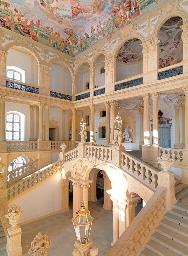 Pommersfelden Schloss Weißenstein: Das Versailles von Franken Die Frontansicht zeigt das hufeisenförmige Hauptgebäude mit seinem hervorspringenden Mittelbau. // Schlossverwaltung Der Marstall gegenüber des Hauptbaus ist Teil des barocken Ensembles, das sich durch seine Symmetrie auszeichnet. // Schlossverwaltung Das Schloss gibt auch von der Parkseite ein beeindruckendes Bild ab. Die Anlage wurde als englischer Landschaftspark angelegt. // Schlossverwaltung Das dreigeschossige Treppenhaus ist das Herzstück des Schlossinneren. Hier fand das barocke Empfangszeremoniell statt. // Schlossverwaltung Der reich verzierte Marmorsaal beeindruckt nicht nur durch seine Kronleuchter, sondern wird auch für Konzerte genutzt. // Schlossverwaltung In der Muschelgrotte findet der Besucher eine prunkvolle Ausstattung und viele Ornamente an der Decke vor. // Schlossverwaltung Das Damwild scheint sich im Schlosspark wohl zu fühlen. Er entstand im 19 Jahrhundert. // Schlossverwaltung von Sven Dörr TEILEN  02.07.2022 Pommersfelden – Wer prunkvolle Schlösser sucht, muss nicht in den Norden Frankreichs reisen. Auch am Rande des Steigerwaldes gibt es ein barockes Schmuckstück. Schloss Weißenstein ist vieles: beliebtes Touristenziel, Filmkulisse, die ehemalige Sommerresidenz eines deutschen Kurfürsten, Heimat einer bedeutenden Kunstsammlung, Damwildgehege und eines der besterhaltenen Barockschlösser Deutschlands. Ab Freitag ist das Schloss am Ortsrand Pommersfeldens der Ausstellungsort der Gartenlust: Vom 25. bis zum 27. März stellen Gärtnereien, (Kunst-) Handwerker und viele mehr ihre Waren aus. Ab dem 1. April sind zudem wieder Besichtigungen im Schloss möglich. Nichts Vergleichbares in ganz Frankreich Das hufeisenförmige Gebäude fasziniert vor allem durch seine Architektur. Zwischen 1711 und 1718 entstand es unter Leitung des Wiener Hofarchitekten Maximilian von Welsch nach den Plänen des bekannten Bamberger Architekten Johann Dientzenhofers. „Ich bin starr vor Staunen, denn es gibt in ganz Frankreich nichts Vergleichbares und so Großartiges“, sagte einst Germain Boffrand, der Hofarchitekt Ludwigs XIV, des Sonnenkönigs. Das Damwild scheint sich im Schlosspark wohl zu fühlen. Er entstand im 19 Jahrhundert. // FOTOGALERIE Schlossverwaltung In der Muschelgrotte findet der Besucher eine prunkvolle Ausstattung und viele Ornamente an der Decke vor. // FOTOGALERIE Schlossverwaltung Der Marstall gegenüber des Hauptbaus ist Teil des barocken Ensembles, das sich durch seine Symmetrie auszeichnet. // FOTOGALERIE Ingo Baeuerlein/Schlossverwaltung Das Schloss gibt auch von der Parkseite ein beeindruckendes Bild ab. Die Anlage wurde als englischer Landschaftspark angelegt. // FOTOGALERIE Schlossverwaltung Das dreigeschossige Treppenhaus ist das Herzstück des Schlossinneren. Hier fand das barocke Empfangszeremoniell statt. // FOTOGALERIE Schlossverwaltung Der reich verzierte Marmorsaal beeindruckt nicht nur durch seine Kronleuchter, sondern wird auch für Konzerte genutzt. // FOTOGALERIE Schlossverwaltung Besonders das 8000 Kubikmeter große Treppenhaus mit seiner zweiläufigen Treppe beeindruckt durch sein Deckenfresko. Das aufwendige Gemälde Rudolf Byss’ und Giovanni Francesco Marchinis zeigt die damals bekannten vier Kontinente in eindrucksvollen Motiven und Farben. Dafür hatten die Gäste des Bauherren Lothar Franz von Schönborn (1655-1729) aber wohl kaum ein Auge, wenn sie das Gebäude betraten: gemäß dem typisch barocken Zeremoniells hatten sie sich alle paar Stufen vor dem Hausherren zu verbeugen, während dieser an der Balustrade stand. Eine weitere Besonderheit Schloss Weißensteins ist die Sala Terrana auf der Nordseite: Verzierte Muscheln, Glaskugeln, Edelsteine und Mineralien. Neben der außergewöhnlichen Ausstattung auffällig: Die Kühle des Raums, die zu einer besonderen Atmosphäre beiträgt. Auch die privaten Zimmer des Bauherren sind original erhalten und bieten einen authentischen Blick auf die Lebensverhältnisse Lothar Franz von Schönborns. Der war nicht nur der Bamberger Fürstbischof, sondern auch als Kurfürst einer der mächtigsten Männer im Heiligen Römischen Reich Deutscher Nation. Lesen Sie auch: Bald ein Geheimtipp Auf Kaiserin Sisis Spuren durch Bad Kissingen Was kaum jemand weiß: Die Monarchin kam regelmäßig in die Kurstadt. Ein Sisi-Themenweg soll dort entstehen, wo sie am liebsten war. Schöner geht's nicht Die 12 romantischsten Orte zum Heiraten Standesamt ist zu langweilig? Kein Problem, im Landkreis Erlangen-Höchstadt gibt es viele Orte, die durch ihre Extravaganz auffallen. Eine Auswahl.
