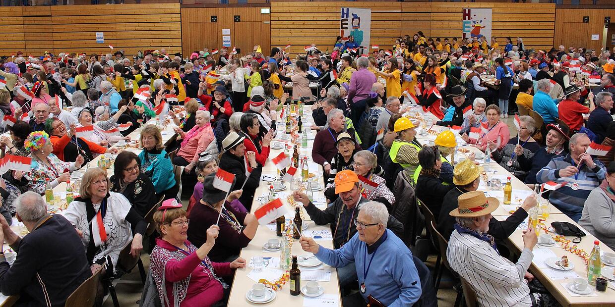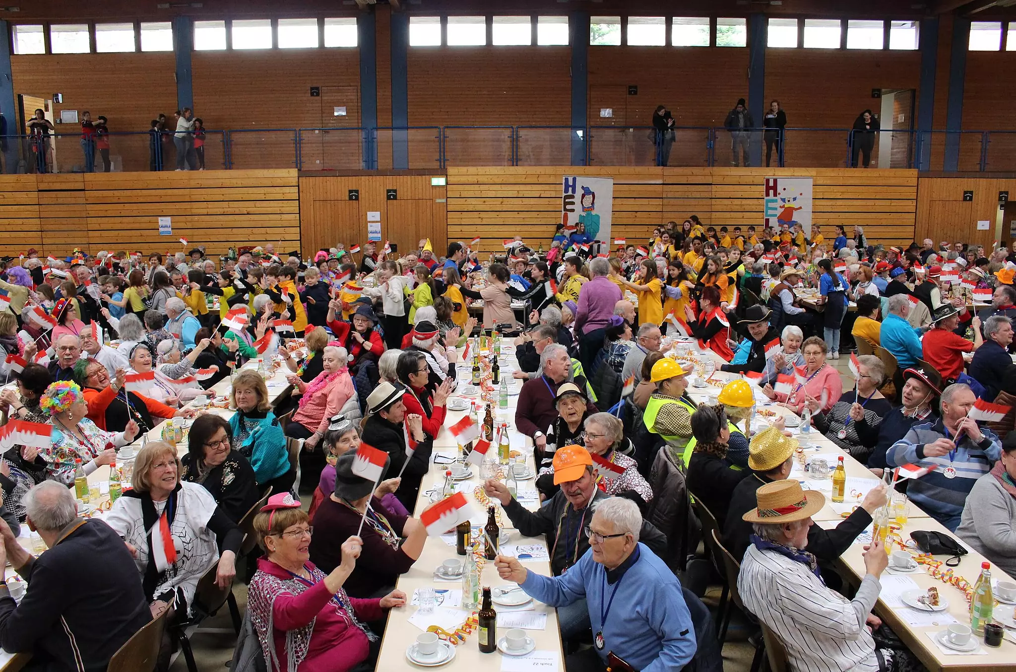 Höchstadt Seniorenfasching auf Fränkisch Volles Haus und beste Stimmung beim Seniorenfasching des Landkreises in der Aischtalhalle in Höchstadt // Evi Seeger von Evi Seeger TEILEN  16.02.2023 Höchstadt a. d. Aisch – Der Landkreis Erlangen-Höchstadt lässt es nach zweijährigem Entzug in der Aischtalhalle in Höchstadt richtig krachen. Neben Akrobatik, Büttenrede, Glitzer und Glamour gibt es eine Premiere. So ein wunderschöner Tag: Man fliegt, fliegt wie ein Flieger und die Freiheit muss grenzenlos sein. 600 Besucher „flogen“ quer durch den Landkreis Erlangen-Höchstadt und landeten direkt in seiner Mitte – sozusagen auf dem Bauchnabel – in Höchstadt. Nach zweijährigem Entzug ließ es der Landkreis beim Seniorenfasching in der Aischtalhalle richtig krachen. Die Fränkische Dialekt-Sommelière Emmi Weiss, Herzogenauracher Original, Kabarettistin und Musikerin, führte durch das dreistündige Spektakel. Als „Fränkische Dialekt-Sommelière“ ist sie sozusagen eine „Nativ Speaker(in)“. Die fein-herben Geschmacksnuancen des fränkischen Idioms kennt sie daher bestens. Bereits nach dem ersten „Humba, Humba“ war Stimmung in der Halle. „Und etz die Fähnla in die Höh“, tönte die Entertainerin, und Hunderte der Wimpel mit dem weiß-roten Rechen folgten ihrem Aufruf. Die schönsten Motive in einer Bildergalerie Fasching Impressionen: So lassen es die Senioren krachen So schön war der Seniorenfasching in Höchstadt. Sehen Sie viele Eindrücke der fröhlichen Besucher und eines bunten Programms. Der Rektor mit Pilzkopf Der Ritter-von-Spix-Schulrektor Michael Ulbrich hatte – als 68er mit Pilzkopf – seinen Chor gut im Griff, dank Maria Canelos, die als Dirigentin temperamentvoll anfeuerte. Die Gäste sparten nicht mit Beifall. Von Eckental bis Vestenbergsgreuth gekommen, waren auch jede Menge Bürgermeister darunter. „Bei der nächsten Bürgermeisterversammlung möchte ich euch alle sehen“, rief der Landrat Alexander Tritthart in die Menge. Er war eine Weile auch im Dreigestirn zu sehen: ihm zur Seite Höchstadts Chef-Cowboy „Beppo“ Brehm und ein durch das Bier etwas Grün angehauchtes Münchner Kindl alias Landrat-Stellvertreter Manfred Bachmeyer. Das Lob redlich verdient Die Akteure hinter der Bühne hatten sich Trittharts Lob verdient, allen voran Organisatorin Christina Süßmeyer-Jeller für die Vorbereitung, Nadja Müller als Vorsitzende des Eis- und Schwimmsportclubs und die Schüler der Ritter-von-Spix-Schule für Verpflegung und Service sowie alle, die dafür sorgten, dass das Spektakel reibungslos über die Bühne gehen konnte. Fastnachtsprofi Susanne Nix All dies war ganz im Sinne von Fastnachtsprofi Susanne Nix. Die Bezirksjugendleiterin im Fastnachtsverband Franken dankte insbesondere den Trainern und Betreuern, die auch während der faschingslosen Zeit ihre Schützlinge motiviert hätten. Auf der Bühne begeisterten die Juniorgarden der „Blummazupfer“ aus Weisendorf, der Röttenbacher Besenbinder, des KC Herzogenaurach und der Buckenhofer Seku-Narren mit akrobatischen Darbietungen und Showtänzen. Immer wieder feuerte Emmi Weiss zu einem „dreifachen Helau“ an. Die Gäste selbst trugen mit fantasievollen wie auch komischen Masken zu einem bunten Bild bei. Armin und Oliver Mangold in der Bütt In die Bütt stiegen Armin und Oliver Mangold, Letzterer Präsident der Seku-Narren. 30 Jahre habe sie treue Dienste geleistet, jetzt galt es, Mangolds Schreibmaschine zu reparieren. „Updaten“ erwies sich als unmöglich und selbst „Word“ vermisste der Junior. Rein gar nichts fehlte hingegen bei „Puck“, dem Kinder- und Jugendzirkus aus Buckenhof. Die von Sönke Jädicke geleiteten Jugendlichen zeigten sich als wahre Bewegungskünstler. Trinklieder und Kabarett Trinklieder, Kabarett, Potpourries und Schunkelrunden brachten die Stimmung zunehmend auf Hochtouren, Tanzmariechen wirbelten über die Bühne. „Der heilige Dingsbums“, den Emmi Weiss zum Schutzpatron aller Vergesslichen ausrief, hatte an diesem Nachmittag praktisch frei. Zusammen mit ihrem Teufelsgeiger Fritz Rabenstein rief die Moderatorin spontan eine „Senioren-Landkreiskapelle“ ins Leben, die sogleich ihren ersten Liveauftritt zum Besten gab. Sieben Leichtmatrosen Sieben Leichtmatrosen von Erlangens (oder Deutschlands?) ältester Boy Group, den „Stad’l Harmonists“, schipperten musikalisch von Höchstadt nach New York. Gegen Ende der Veranstaltung kam Glitzer und Glamour in die Halle: Die „Pop-Körner“ der Seku-Narren schwebten in zarten Tutus über die Bühne. Ein Rausch in Federn und Farben war der Märchentanz der Weisendorfer „Blummazupfer“. Tänzerinnen aus Uraha Aus „Uraha“ (erste Siedlung von Herzogenaurach) kamen Miva und Julina, die trotz ihres jungen Alters perfekte Tänze hinlegten. Schließlich gab es noch eine „Landkreisgarde“, die Landrat Tritthart mit Stolz erfüllte. Die Koordination von Röttenbacher Besenbindern, Seku-Narren, „Blummazupfern“ und des KC Herzogenaurach klappte vorzüglich. Lesen Sie auch: Fotostrecken & mehr So schön war der Fasching in ERH Am Faschingsdienstag gaben die Narren noch einmal Vollgas. Das närrische Treiben gesellte sich zu den zahlreichen närrischen Höhepunkten in den letzten Wochen - hier ist ein Überblick.