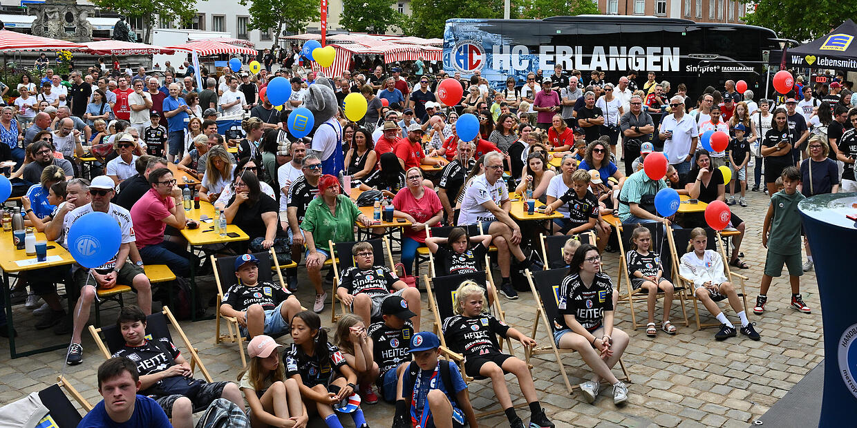 Für Aufsehen sorgten auch zwei bekannte Gesichter in neuen Rollen: Daniel Pankofer, ehemaliger Spieler und langjähriger Wegbegleiter des Vereins, ist seit Juli neuer Geschäftsführer des HC Erlangen. Ole Rahmel, ebenfalls Ex-Profi und ehemaliger Publikumsliebling beim HCE, übernimmt künftig die Position des Sportmanagers. Beide nutzten die Bühne, um sich den Fans vorzustellen.