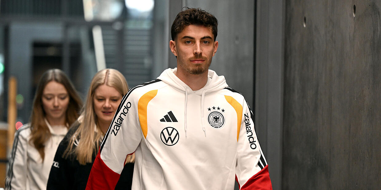 – Einspielen für die Weltmeisterschaft ist für die Deutsche Nationalmannschaft in Herzogenaurach angesagt. Ein Fragezeichen steht hinter der deutschen Spitze. Rückkehrer Kai Havertz gibt sich jedenfalls optimistisch.