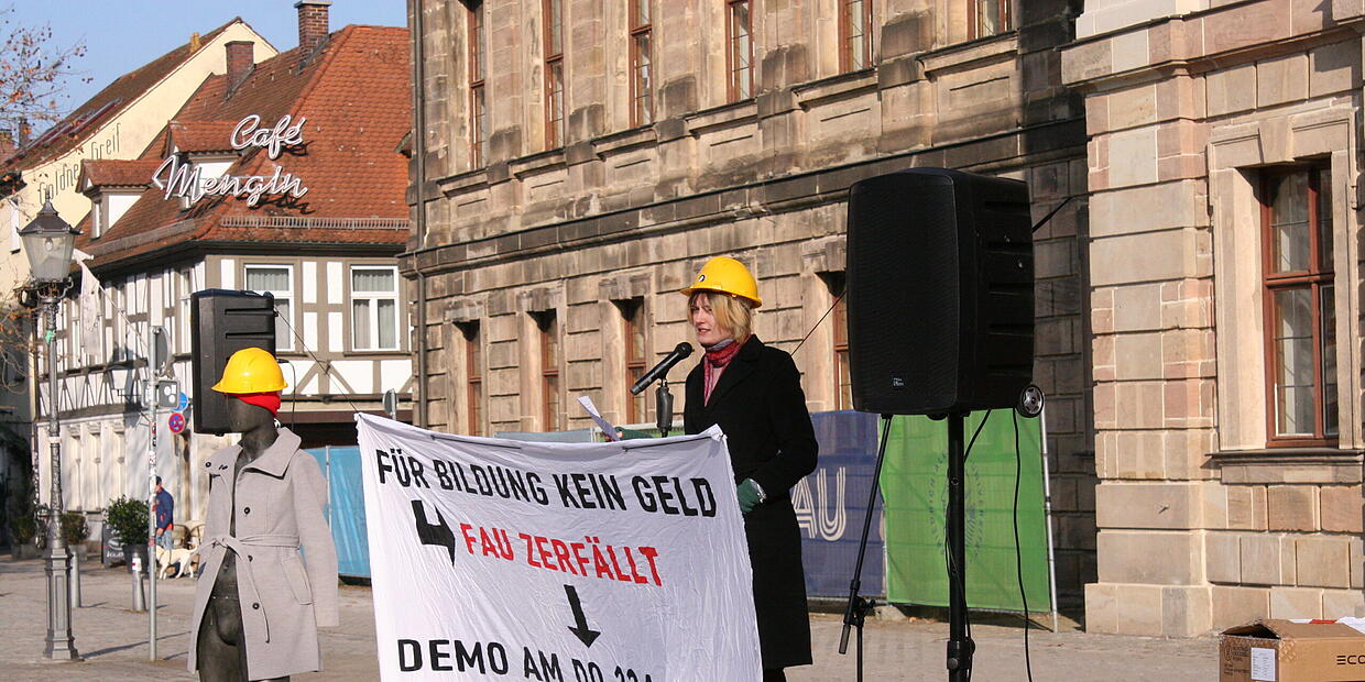 – Undichte Decken, kaputte Aufzüge, Schadstoffbelastung – mit einer Kundgebung haben Studierende am Schlossplatz auf die katastrophalen Zustände aufmerksam gemacht. Wo sie dringend Handlungsbedarf sehen.