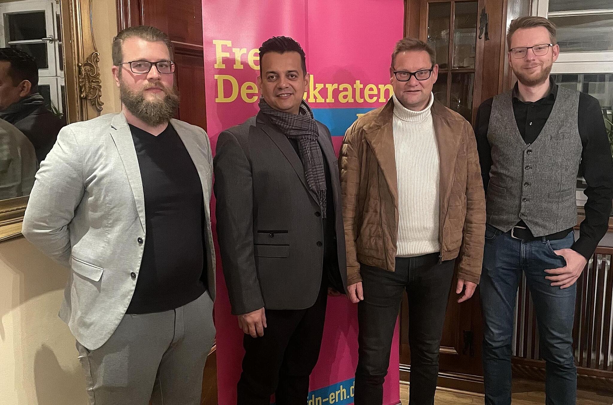 Landtag Boulent Ekrem geht für die FDP ins Rennen Direktkandidaten der FDP: Boulent Ekrem und Oliver Rath. // FDP von Redaktion TEILEN  10.12.2022 LKR Erlangen-Höchstadt – Der FDP-Kreisverband Erlangen-Höchstadt nominierte seine Kandidaten für die Landtags- und Bezirkstagswahl. Die Aufstellungsversammlung der FDP für die Bezirkstags- und Landtagswahlen im nächsten Jahr fand in Herzogenaurach statt Zum zweiten Mal nach 2018 geht der Herzogenauracher Boulent Ekrem ins Rennen für den Landtag. Die Aufstellungsversammlung nominierte den 44-Jährigen als Landtagsdirektkandidaten für den Wahlkreis Erlangen-Höchstadt, berichtet Ortsvorsitzender Michel Dassler. Bei der letzten Landtagswahl 2018 konnte Boulent Ekrem demnach „ein sehr gutes Ergebnis für die FDP erzielen“ und sich auf der mittelfränkischen Liste viele Plätze nach vorne wählen. Die vier Kandidaten (von links): Leif Erik Persson, Boulent Ekrem, Oliver Rath, Roy Eissing // FDP „Mit der Erfahrung aus dem letzten Wahlkampf und den Erkenntnissen, die wir aus der Oppositionsarbeit in München und der Regierungsarbeit in Berlin gewinnen konnten, bin ich sehr motiviert und schaue zuversichtlich auf das kommende Wahljahr. Bayern braucht dringend einen Kurswechsel, was die erneuerbaren Energien, die Wirtschaftspolitik sowie die Einwanderungs- und vor allem Bildungspolitik betrifft. Um dies zu erreichen, muss die FDP Regierungsverantwortung in Bayern übernehmen“, stellt Boulent Ekrem fest. Zwei weitere Kandidaten auf der Liste Auch für den Bezirkstag nominierte die FDP Erlangen-Höchstadt einen erfahrenen Liberalen: Oliver Rath aus Heroldsberg, seit 2006 Mitglied der FDP, ist Direktkandidat für den Bezirkstag. Sein Schwerpunkt ist die bessere Kontrolle der öffentlichen Ausgaben. Zu Listenkandidaten wurden Leif Erik Persson aus Höchstadt für den Landtag und Roy Eissing aus Adelsdorf für den Bezirkstag gewählt. Lesen Sie auch: Nominierung Freie Wähler setzen auf Rogner und Schmidt Die Freien Wähler nominierten ihre Direktkandidaten: Axel Rogner für den Landtag, Steffen Schmidt für den Bezirkstag. Wahlen Claudia Belzer will in den Landtag Die SPD schickt die Herzogenauracherin Claudia Belzer (Landtag) und Christian Pech (Bezirkstag) ins Rennen. Landtagswahl Nussel und Salzner erneut Kandidaten der CSU Die CSU schickt Walter Nussel und Ute Salzner in das Rennen um die Direktmandate bei der Landtags- und Bezirkstagswahl 2023.