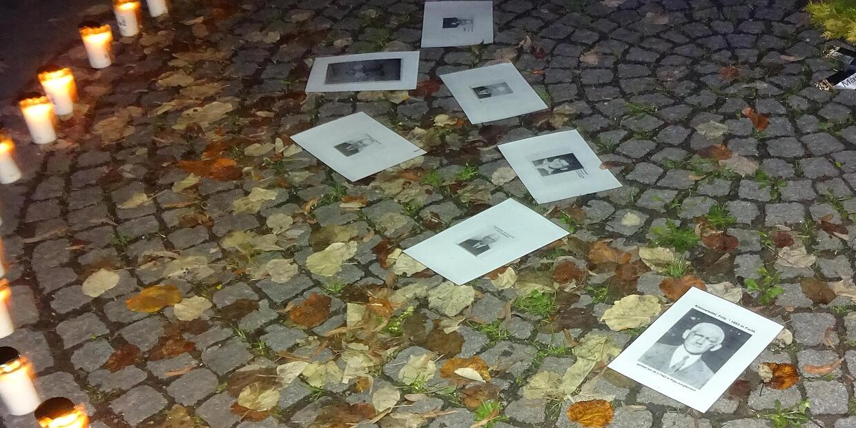 Nach der Lesung im Gemeindehaus zogen die Teilnehmer im stillen Zug zur Gedenkstele vor der Hauptstraße 47, dem ehemaligen Schnaittachershaus, und zündeten für alle 29 aus Forth stammenden Opfer der Shoa als Zeichen gegen Rechtsradikalismus Kerzen an.