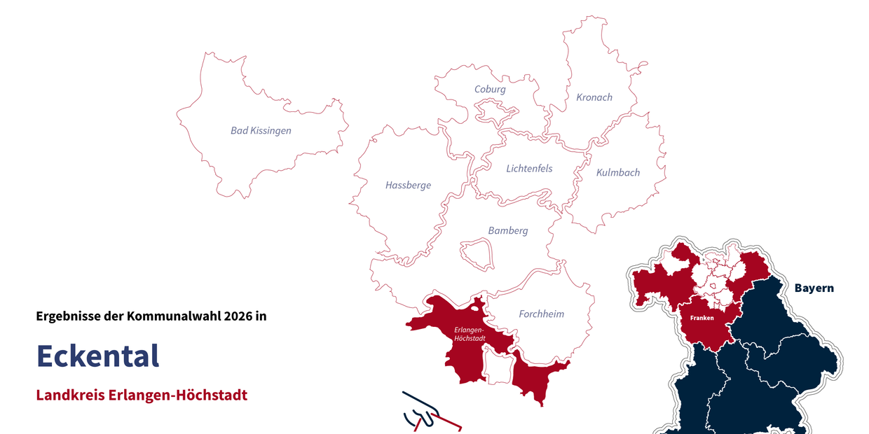 Die Bürgerinnen und Bürger von Eckental sind am 8. März 2026 zur Kommunalwahl in Bayern aufgerufen. In dem Markt mit rund 14.500 Einwohnern und 13 Gemeindeteilen wird über die Zusammensetzung des Marktgemeinderats und die Rathausspitze entschieden. Auf dieser Seite finden Sie die aktuellen Zwischenergebnisse der Auszählung.