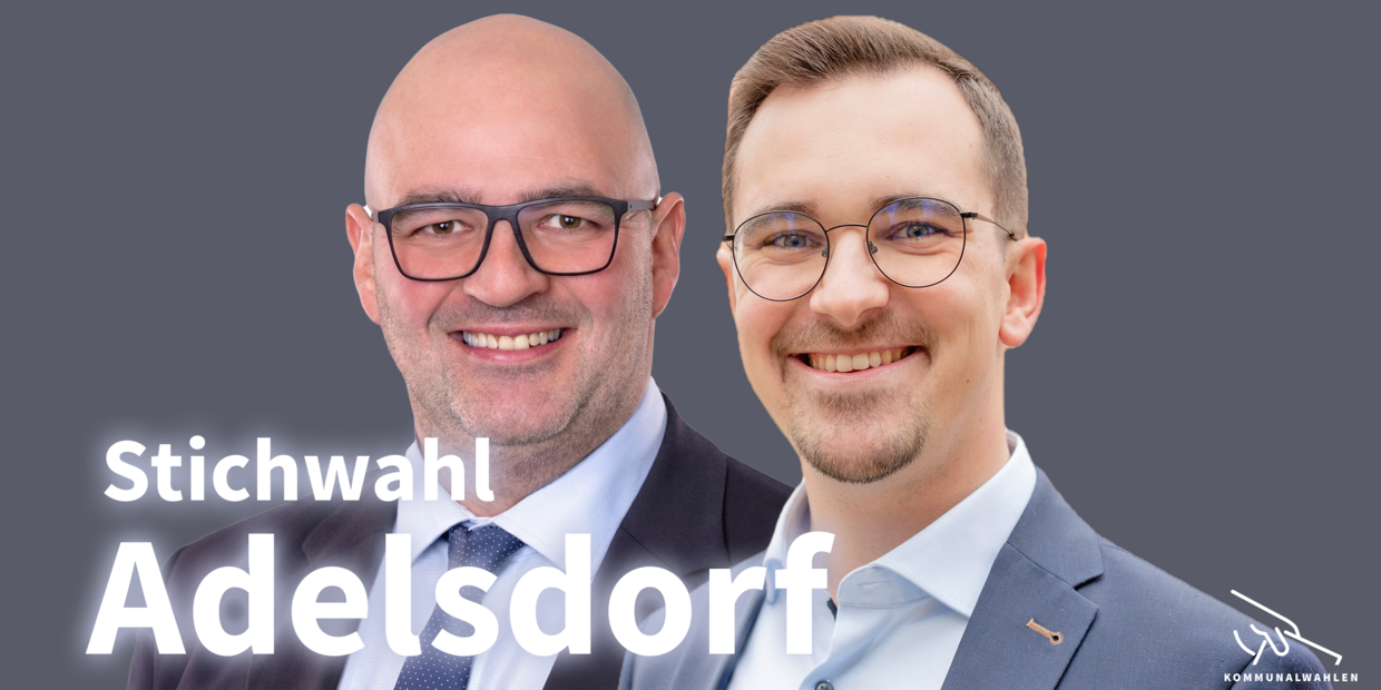 Fünf Kandidaten hatten sich ursprünglich in Adelsdorf um den Bürgermeisterposten beworben. Vor der Stichwahl ausgeschieden aus dem Rennen sind Cameron Pauly (Grüne) mit 9,2 Prozent der Stimmen, gefolgt von Ralf Olmesdahl (ABWI/9,1 Prozent) und Norbert Lamm (SPD/7,9 Prozent).
