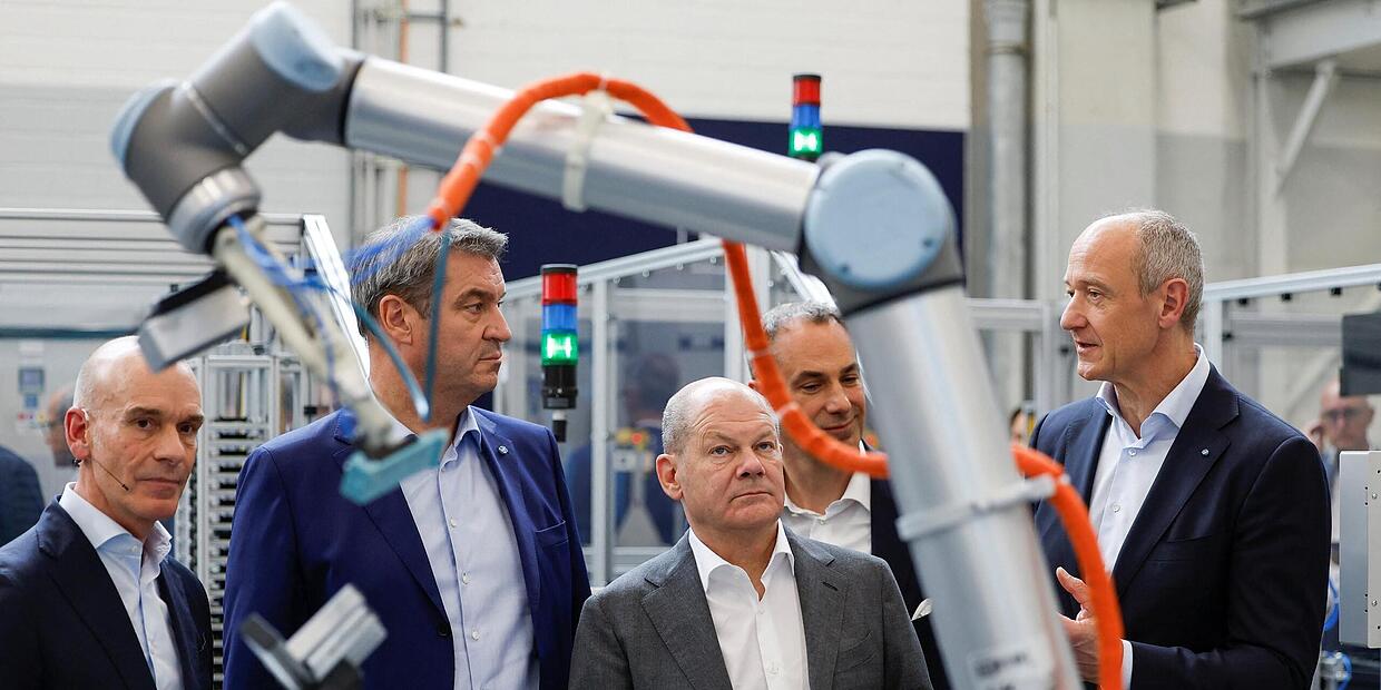 Mega-Investition in Erlangen Scholz und Söder sonnen sich in Siemens' Milliarden Foto: Heiko Becker/Reuters Pool/dpa von Andreas Scheuerer TEILEN  13.07.2023 Erlangen – Bundeskanzler Olaf Scholz (SPD) besucht das Gerätewerk von Siemens in Erlangen. Dort will man mit „digitalen Zwillingen“ das Zeitalter des industriellen Metaverse einleiten. Wie das aussehen soll. Artikel anhören Sie können uns nicht hören? Diese Funktion können Sie exklusiv mit PLUS nutzen. Erhalten Sie uneingeschränkten Zugriff auf alle Audioinhalte, Artikel und vieles mehr. Vorlesefunktion freischalten Bereits -Zugriff? Jetzt Anmelden Na, erwischt! Du bist wohl ein bisschen zu neugierig, was?