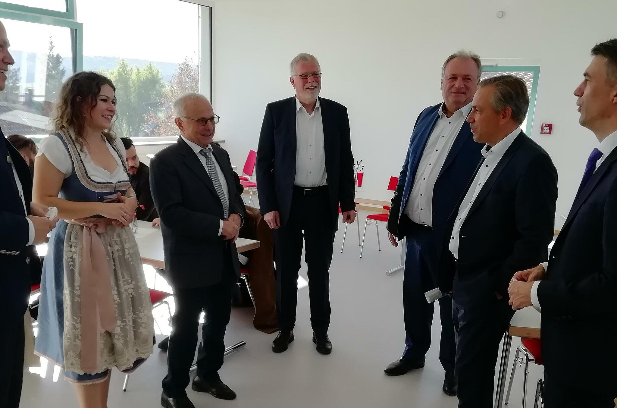 Haus der Begegnung Vestenbergsgreuths neues Vorzeigeprojekt Menschen treffen, Angebote wahrnehmen, ein erfüllteres Leben leben – das ist das Ziel des Mehrgenerationenhauses in Vestenbergsgreuth. // olly/adobeStock Sofie Wedel, Helmut Lottes und Thomas Wimber (3. und 4. v. l.) führten MdB Stefan Müller, Landrat Alexander Tritthart, MdL Walter Nussel (v. r.) sowie den langjährigen Maba-Geschäftsführer Adolf Wedel (l.) durch das Haus der Begegnung. // Paul Frömel Zur Einweihung erkundeten die Besucher die Räume, die im Obergeschoss einen schönen Blick über die Dächer von Vestenbergsgreuth bieten. // Paul Frömel von Paul Frömel TEILEN  13.10.2021 Vestenbergsgreuth – Ein Haus der Begegnung soll Senioren dabei helfen, möglichst lange in ihrer Heimat selbstständig zu leben. Es machte bereits am Tag der offiziellen Einweihung seinem Namen alle Ehre, das Vestenbergsgreuther Haus der Begegnung. Draußen auf dem Mehrgenerationenplatz genossen die Kinder das Angebot der Schausteller an diesem Kirchweihsonntag, drinnen besichtigten zahlreiche ältere Bürger die neuen Räumlichkeiten, während nebenan im Veranstaltungssaal Bürgermeister Helmut Lottes (CSU/UB) den geladenen Gästen seine Vision von einer lebenswerten Gemeinde näherbrachte. Auch für die Nachbargemeinden Mehrere Kommunen aus der Umgebung von Vestenbergsgreuth haben sich zum Ortsverbund Mittlere Aisch zusammengeschlossen, damit für das rund 6,5 Millionen Euro teure Projekt gut 2,5 Millionen Euro Zuschüsse aus der Städtebauförderung von Bund und Freistaat fließen konnten. Vorteil für alle Beteiligten: Auch die Bürger von Uehlfeld, Münchsteinach oder Gerhardshofen können und sollen künftig das Haus der Begegnung besuchen und nutzen. In der alten Schule Wie Bürgermeister Lottes berichtete, habe man bereits vor zehn Jahren begonnen, ein Konzept zu erarbeiten, um sich den Veränderungen auf den Dörfern zu stellen. Der demografische Wandel gehe auch an Vestenbergsgreuth nicht vorüber, und deshalb solle das Haus der Begegnung mit seinen Angeboten der wachsenden Zahl älterer Menschen dabei helfen, möglichst lange möglichst selbstständig zu leben. Rund eineinhalb Jahre lang wurde dafür der Mittelteil der ehemaligen Schule komplett entkernt und umgebaut. „Jetzt haben wir die Hardware, aber die würde nichts bringen ohne die passende Software“, leitete der Bürgermeister zur Vorstellung derjenigen über, die das Haus nun mit Leben füllen soll. Mitmachen erwünscht Die Sozialpädagogin Sofie Wedel wird sich als Quartiersmanagerin dieser Aufgabe stellen und wünscht sich dabei Hilfe und Anregungen von allen Mitbürgern. So wolle man zum Beispiel die bereits bestehenden Angebote der Kirchengemeinden nicht ersetzen, sondern ergänzen, man will mit dem VdK ebenso zusammenarbeiten wie mit der benachbarten Kindertagesstätte und dem Kreisjugendring, der am anderen Ortsrand ein Jugendcamp betreibt. Jung und Alt sollen im Haus der Begegnung zusammenkommen, ergänzt Vestenbergsgreuths Seniorenbeauftragter Thomas Wimber, der sich aber auch bewusst ist, dass man „die Menschen abholen muss“, und zwar mit guten Angeboten. Start im Advent Die 27-jährige Sofie Wedel hofft, dass Besucher den ganzen Tag im Haus der Begegnung verbringen, angefangen vom morgendlichen Kaffee über ein Fernsehstündchen und ein gemeinsames Mittagessen bis zum Friseurtermin vor Ort und einem Spielenachmittag zum Ausklang. Je nach Bedarf könnte sich die Quartiersmanagerin, die selbst aus Vestenbergsgreuth stammt, auch einen Hol- und Bringservice für die Bewohner der umliegenden Ortschaften vorstellen. Bis es losgeht, dauert es allerdings noch ein bisschen, denn es fehlt noch die Möblierung für die einzelnen Räume. Spätestens in acht Wochen soll es aber so weit sein, und die Adventszeit könnte zum Start ganz gut geeignet sein, im neuen Haus für viele Begegnungen zu sorgen, meint Sofie Wedel. Neue Angebote Die Vestenbergsgreuther freuen sich schon auf die neuen Angebote. Werner Geyer (69 Jahre) kann sich gut vorstellen, daheim ab und zu die Küche kalt zu lassen und stattdessen im Haus der Begegnung ein warmes Mittagessen und eine Spielerunde mit Bekannten zu genießen. Vielleicht begegnet er dabei Fritz Lottes (68 Jahre), den ebenfalls ein gemeinsames Mittagessen und ein gemütlicher Schafkopf in das Haus auf dem Schwalbenberg locken könnten. „Die älteren Menschen vereinsamen immer mehr“, sagt er, „da ist es schön, so etwas zu haben“. Das Angebot im Haus der Begegnung ganztägiger Treffpunkt für Senioren, aber auch alle anderen Generationen gemeinschaftliche Aktivitäten wie Spielen und Kochen warmes Mittagessen nach vorheriger Bestellung offener Bücherschrank mit freiem Tauschsystem Vorträge und Beratung in wechselnden Sprechstunden wechselnde Dienstleistungen wie Physiotherapie, Fußpflege und Friseur Anlaufstelle für alle Themen rund um selbst organisierte Gruppen und Veranstaltungen barrierefreie Räumlichkeiten: Fernseh- und Spielzimmer, Fitnessraum, Behandlungsraum und Ruheraum, Vortragsräume und Beratungszimmer, große Halle mit Aufenthaltsbereich und Küche Kontakt Telefon 0151/14014207, E-Mail: HDB@vestenbergsgreuth.de