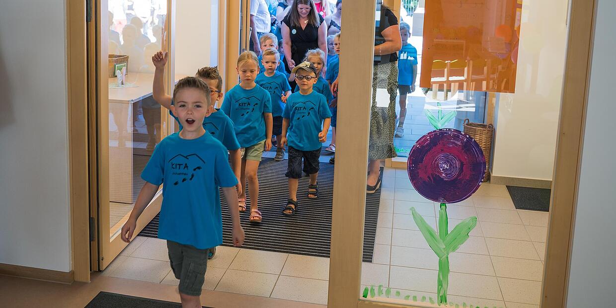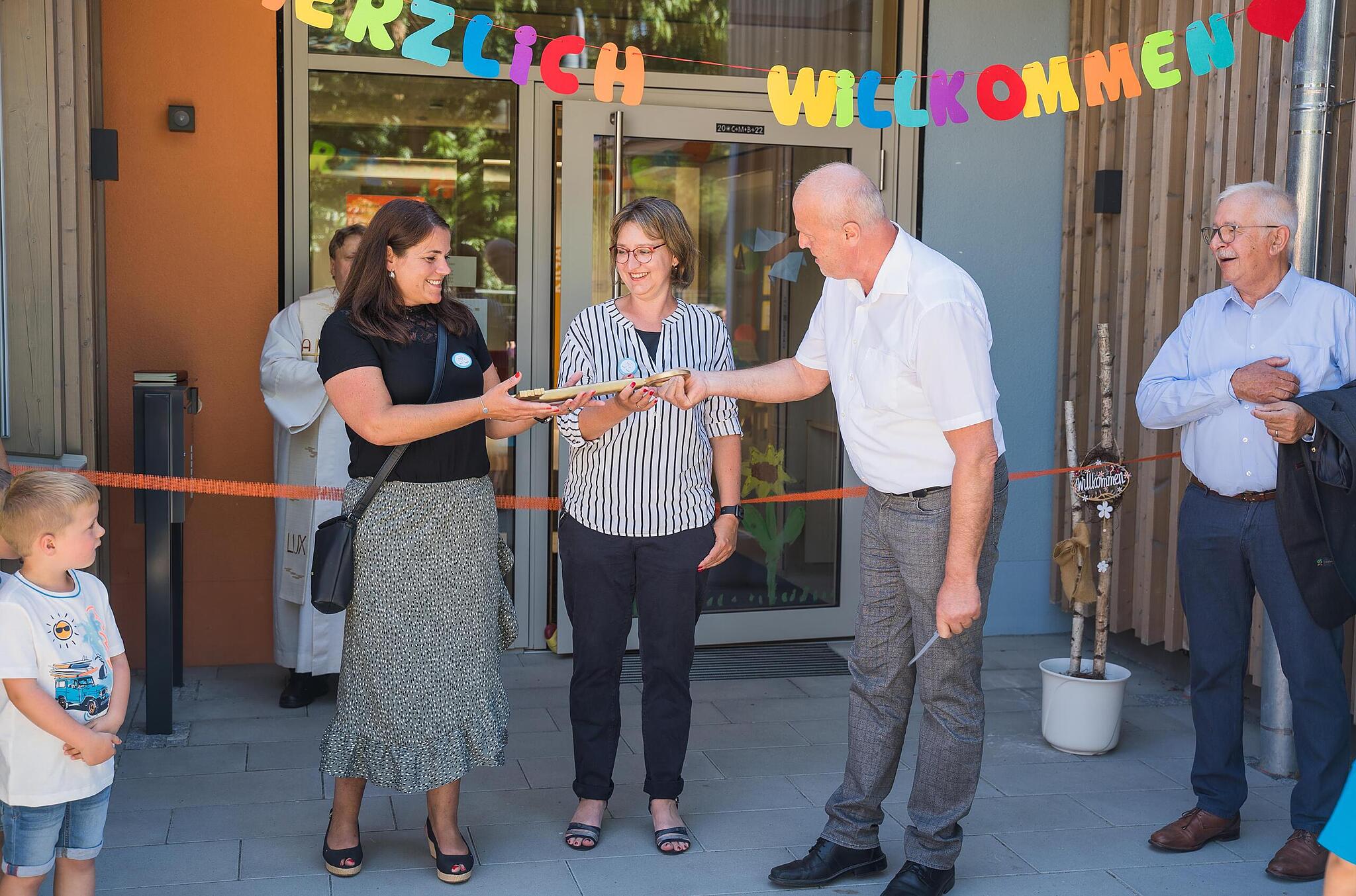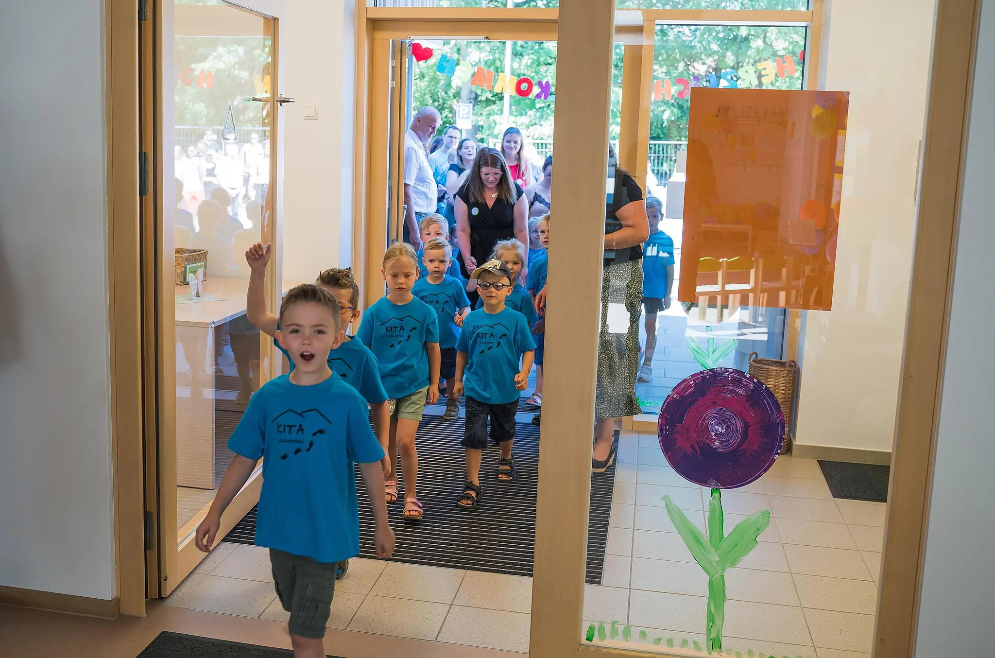 Erziehung Nachwuchs lebt energiebewusst Die Kinder der Kita St. Johannes in Zentbechhofen erobern ihr neues Reich. // Stadt Höchstadt von Redaktion TEILEN  01.08.2022 Zentbechhofen – Die neue Kindertagesstätte kostete knapp vier Millionen Euro und erfüllt hohe energetische Standards. Nachdem die Kinderzahlen in Zentbechhofen und den dazugehörigen Ortsteilen stetig wuchsen, musste für mehr Betreuungsplätze gesorgt werden. Die neue Kindertagesstätte St. Johannes ist schon einige Monate in in Betrieb. Vor kurzem wurde sie nun feierlich eingeweiht. Spatenstich im Juni 2020 Bürgermeister Gerald Brehm (JL) und die Stadträte sprachen sich laut einer Pressemitteilung für einen Neubau aus, der mit dem Spatenstich im Juni 2020 startete. Nach nur eineinhalb Jahren konnten die Kinder mit ihren Betreuerinnen in den Neubau einziehen. Die Feierlichkeit begann mit einem Wortgottesdienst zum Namenspatron der Einrichtung, St. Johannes. Begleitet durch die Blaskapelle Zentbechhofen und Umgebung folgte ein Festzug zur neuen Kita. Ganz offiziell wurde vom Architekturbüro Wiesneth der Schlüssel an Bürgermeister Brehm überreicht, der ihn anschließend verantwortungsvoll den beiden Leiterinnen Andrea Bucksch und Christina Schindlbeck übergab. Zusammen mit den Kindern wurde symbolisch die Türe unter großem Jubel geöffnet. Bürgermeister Gerald Brehm übergibt den Schlüssel an die beiden Kita-Leiterinnen Christina Schindlbeck (links) und Andrea Bucksch. // Stadt Höchstadt Pfarrer Pröckl segnet den Bau Im Foyer segnete Pfarrer Stefan Pröckl die Kreuze und weihte die Räume ein. Die neue Kindertagesstätte kostete knapp vier Millionen Euro. Eingebettet in die Natur, wurde sie mit hohem energetischen Standard und mit großer Nachhaltigkeit gebaut. Zum Tag der Offenen Türe ab der Mittagszeit konnten sich alle Dorfbewohner und Interessierten bei geplanten Führungen durch die Einrichtung einen objektiven Eindruck verschaffen.Für die Kinder wurden in den jeweiligen Gruppen unterschiedliche Aktionen angeboten, wie Kinderschminken, Fühlparcours, Basteln von Bienen und ein Quiz rund um die Einrichtung. Den Abschluss krönte der Zauberer „Michaels Zauberkiste“ und begeisterte Klein und Groß bei seiner Vorführung. Der einzigartige Neubau begeisterte die unzähligen Besucher und lässt auf eine positive Zukunft für alle Beteiligten blicken. Lesen Sie auch: Lonnerstadt Kindergarten in Lonnerstadt so gut wie neu Martin-Luther-Kindertagesstätte lautet der neue Name der Einrichtung. Die Generalsanierung wurde zum größten Projekt in der Geschichte der Gemeinde.