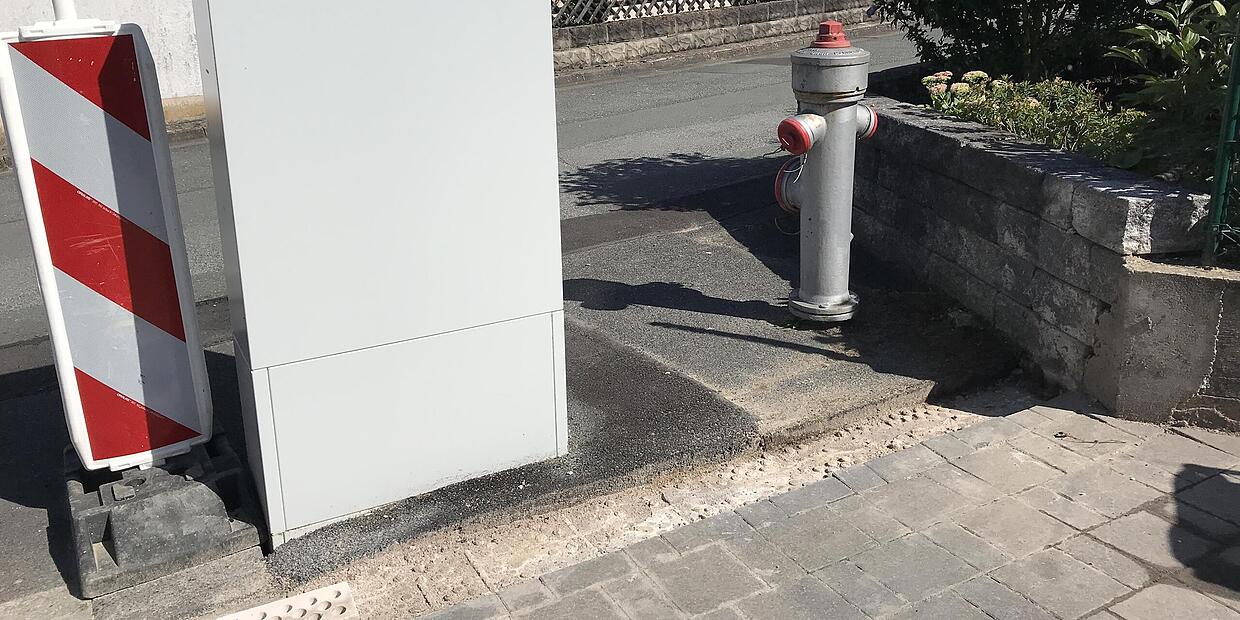 Glasfaser-Verteilerkasten vor Einfahrt gesetzt