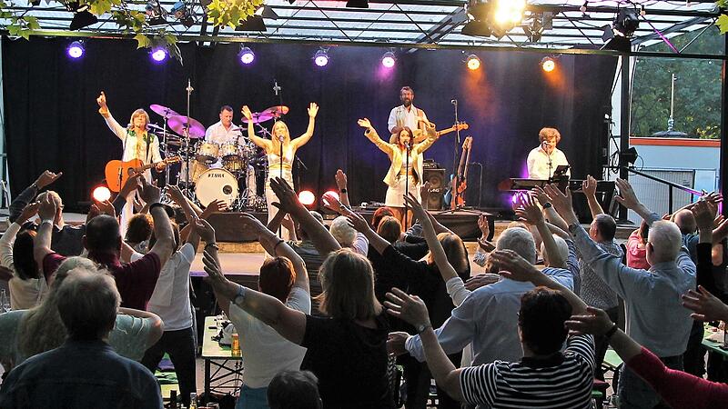 Bei zwei der erfolgreichsten Abba-Hits aller Zeiten, S.O.S. und Waterloo, stand kein Tanzbein auf dem Weinfestplatz mehr still. Auch in den Gängen zwischen den Tischen und Bänken tanzten die Menschen und genossen den warmen Sommerabend in vollen Zügen. Zwischendurch durften einige junge und junggebliebene weibliche Fans auf die Bühne, die bei "One of us is crying" den Rhythmus vorgaben. Das Fazit eines beschwingten Abends: Nach harten Corona-Monaten mit vielen Einschränkungen ist die Lebensfreude bei den Menschen wieder zurück.