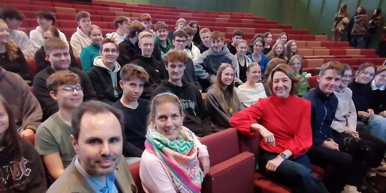 Bei einer anschließenden Fragerunde ging es zunächst um Persönliches: "Wie schaffen Sie es, Ihren Beruf mit dem Familienleben zu verbinden?", wollte eine Schülerin wissen. "Das ist schon schwierig", räumte Weisgerber ein. "Man muss sich gut absprechen und manchmal auch ganz bewusst Familienzeit einplanen. Am Wochenende fahren wir zum Beispiel mal zum Europapark nach Rust", so Weisgerber, die auch auf die Unterstützung ihrer Eltern bauen kann.