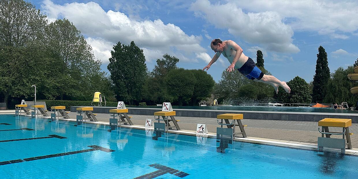 Mit dem obligatorischen Sprung ins große Freischwimmbecken eröffnete Oberbürgermeister Stefan Güntner am Wochenende die Kitzinger Freibadsaison auf der Mondseeinsel, heißt es in einer Pressemitteilung der Stadt. Das Freibad hat demnach täglich von 9 bis 20 Uhr geöffnet. Während die Freibadsaison gerade Fahrt aufnimmt, muss das Hallenbad Aqua-Sole wegen eines Wasserrohrbruchs vorerst geschlossen bleiben. Der Saunabetrieb jedoch startet wieder am Mittwoch, 17. Mai.