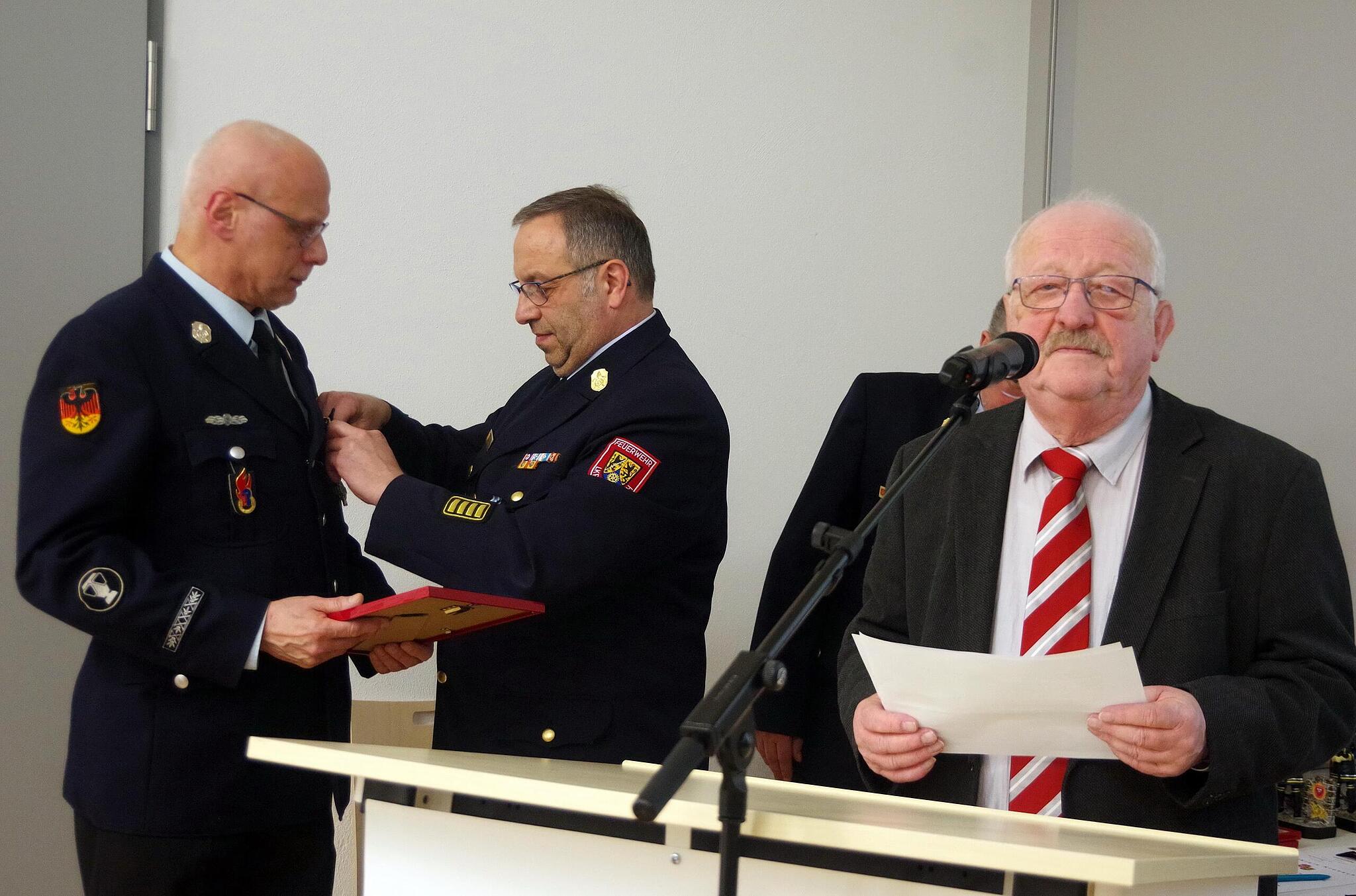 Ehrungen Feuerwehr Kronach Ehrenzeichen für Lieb Staatliche Ehrungen bei der Kronacher Wehr. // Heike Schülein von Heike Schülein TEILEN  10.04.2025 Kronach – Die Stadt Kronach hat eine starke Truppe. Im Mittelpunkt der Jahreshauptversammlung standen Ehrungen verdienter Mitglieder, darunter mehrere ganz besondere Auszeichnungen. Artikel anhören Sie können uns nicht hören? Diese Funktion können Sie exklusiv mit PLUS nutzen. Erhalten Sie uneingeschränkten Zugriff auf alle Audioinhalte, Artikel und vieles mehr. Vorlesefunktion freischalten Bereits -Zugriff? Jetzt Anmelden Im 163. Jahr ihres Bestehens konnte die Kronacher Wehr im Schulungssaal des Feuerwehrhauses zahlreiche Mitglieder ehren. Seit 30 Jahren im Verein sind Christian Reuß und Sascha Schmidt. Verbunden mit der Vereinsehrung für 40 Jahre Mitgliedschaft wurden Peter Höhne, Gerwin Lieb, Roland Lösch und Horst Schütz außerdem mit dem Staatlichen Ehrenzeichen in Gold für 40 Jahre aktiven Dienst bedacht. Alexander Schubert erhielt das Staatliche Ehrenzeichen in Silber für 25 Jahre bereits über die Eichenbühler Wehr. Für 50-jährige Vereinszugehörigkeit wurden Ludwig Klinger, Hubertus Pohl und Karl-Heinz Lieb geehrt. Karl-Heinz Lieb erhielt zudem - als erst fünfter Kamerad im Landkreis überhaupt - für 50 Jahre aktiven Dienst das Große Staatliche Ehrenzeichen. Der Feuerwehrmann engagierte sich 15 Jahre als Jugendwart und vier Jahre als Inspektions-Jugendwart. Von 1994 bis 2010 versah er Schichtdienst in der Nachalarmierungsstelle, von 2003 bis 2005 war er Schriftführer. Nach wie vor ist er Maschinist. Sein Vater Walter Lieb, dienstältestes Mitglied der Wehr, wurde für unglaubliche 75-jährige Treue zum Verein geehrt. Bewegende Momente Ein weiterer bewegender Moment war es, als Walter Wicklein zum Ehrenmitglied ernannt wurde. Mit der für ihn überraschend kommenden Ehrung würdigt der Verein das herausragende jahrzehntelange Engagement des Kronachers, der der Wehr seit 55 Jahren die Treue hält. „Trotz seines früheren arbeitsintensiven Berufs als selbstständiger Metzgermeister engagierte er sich ab seinem Eintritt mit ganzem Einsatz für die Feuerwehr“, würdigte 1. Vorsitzender Stefan Wicklein. 1979 wurde er zum Gruppenführer ernannt, von 1983 bis 1995 war er stellvertretender Kommandant. Oftmals stillte er den Hunger der Kameraden nach Einsätzen und Übungen durch eine Spende aus seiner Metzgerei. Zusätzlich leistete er in der Atemschutzübungsanlage von 1985 bis 2018 Dienst als Aufsichtspersonal. Seit 2019 engagiert er sich in der Führung der Seniorengruppe. Neben den Staatlichen Ehrenzeichen in Silber und Gold trägt er seit 2008 das Feuerwehr-Ehrzeichen des Landkreises in Silber sowie seit 2019 die Ehrennadel des Landkreises in Gold. Walter Wicklein wurde zum Ehrenmitglied ernannt. // Heike Schülein Stefan Wicklein bezifferte in seinem Rechenschaftsbericht die aktuelle Mitgliederzahl auf 488 Personen. Dies entspricht einem Zuwachs von 50 Mitgliedern. Er dankte seinen Mitstreitern für die vielen Aktivitäten. Etwa konnte die Wehr im Juli - in Verbindung mit einem Kameradschaftsabend - das neue LF 10 in Dienst stellen. Zur Aktionswoche übten alle 13 Feuerwehren der Stadt mit über 250 Einsatzkräften zusammen an der Festung Rosenberg. Der Verein wird von Spendern unterstützt: Bei der Spendenaktion für ein Neufahrzeug gingen bisher 41.295 Euro ein. „Zusammen mit noch ausstehenden Spenden und dem erwarteten Verkaufserlös des Altfahrzeugs kann die Finanzierung als gesichert bezeichnet werden“, meinte Wicklein. Freude des Kommandanten Ende 2024 verfügte die Wehr über 91 Aktive, inklusive 19 Feuerwehranwärter. „Neben dem Übertritt einiger Jugendlicher von der Kinder- zur Jugendfeuerwehr durften wir mehrere Quer- oder Wiedereinsteiger willkommen heißen“, freute sich 1. Kommandant Christian Büttner. 2024 bewältigte man 252 Einsätzen, darunter 54 Brandeinsätze. 52 Personen konnten dabei in einer Notlage gerettet, befreit oder medizinisch versorgt; fünf Personen leider nur tot geborgen werden. Besonders im Gedächtnis blieb das dargebotene Bild beim Einsatz am Kronacher Bahnhof „Person unter Zug“. Der extrem schnellen Ausrückzeit und der überragenden Teamarbeit mit dem Rettungsdienst sei es zu verdanken, dass die schwer verletzte Person überlebte. Insgesamt wurden über 4.800 Einsatzstunden ehrenamtlich geleistet. 27 Aktive legten die Leistungsprüfung Wasser ab. Bei der turnusmäßigen Besichtigung durch die Kreisbrandinspektion, bei der 96 Kräfte antraten, erhielt die Wehr eine sehr gute Bewertung. Standing Ovation für das dienstälteste Mitglied der Kronacher Wehr, Walter Lieb, der für 75-jährige Vereinstreue geehrt wurde. // Heike Schülein Die 41 Atemschutzträger der Wehr waren, so Atemschutzbeauftragter Christian Lieb, bei 17 Brandeinsätzen gefordert. Eventuell soll heuer ein Absturzsicherung-Lehrgang abgehalten werden. Die Jugend-Feuerwehr unter Leitung von Jugendwartin Sina Setale feierte 50. Jubiläum. Die 53 Löschminis, berichtete Kinderfeuerwehr-Leiterin Karina Schneider, absolvierten ein abwechslungsreiches Programm. Auch die Seniorengruppe, 18 Männer und 19 Frauen, war sehr aktiv, führte Karl-Heinz Pohl aus. Kassenverwalter Matthias Zapf berichtete von einer stabilen Finanzlage. Kassenprüfer Karl-Heinz Lieb bescheinigte eine einwandfreie Buchführung. Beeindruckt von der Leistungsbilanz der Wehr zeigten sich Vize-Landrat Bernd Steger und Kreisbandrat Frank Fischer, Kronachs 1. Bürgermeisterin Angela Hofmann und Matthias Schuhbäck, Dienststellenleiter der Polizei Kronach. Als erst fünfter Aktiver im Landkreis erhielt Karl-Heinz Lieb das Große Staatliche Ehrenzeichen für 50 Jahre aktiven Dienst. // Heike Schülein Die Berichte offenbarten, verdeutlichte die Bürgermeisterin, auch die enormen psychischen und physischen Belastungen der Aktiven. „Höhen und Tiefen, Not und Leid, alles ist dabei“, konstatierte Frank Fischer, der allen Geehrten gr