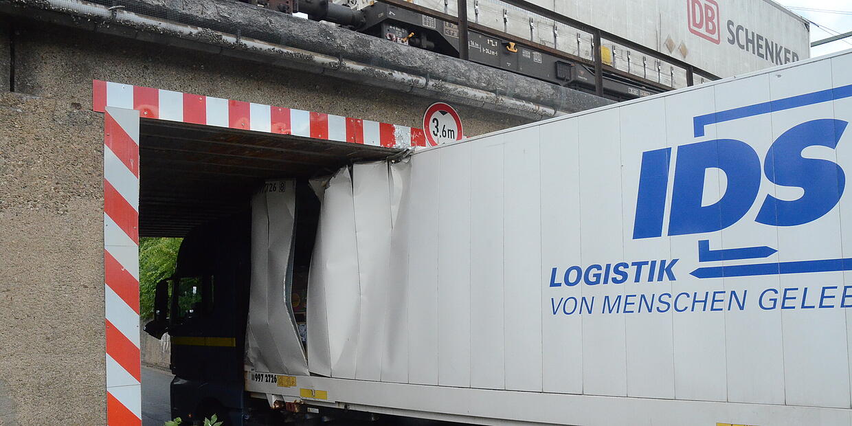 Pressig: Lkw blieb mit Containeraufbau an der Brücke hängen