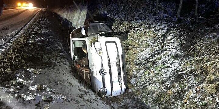 Eine 18-Jährige verlor bei Teuschnitz die Kontrolle über ihren Wagen. Das Fahrzeug landete im Graben und kippte auf die Seite. Die junge Autofahrerin war am späten Montagnachmittag, 29. Dezember, mit ihrem VW auf der Kreisstraße KC 8 von Teuschnitz in Richtung Haßlach unterwegs. In einer Linkskurve kam sie auf der schneebedeckten und winterglatten Fahrbahn nach rechts von der Straße ab. Dabei drehte sich das Auto um 180 Grad und blieb letztendlich auf der Beifahrerseite im Straßengraben liegen.