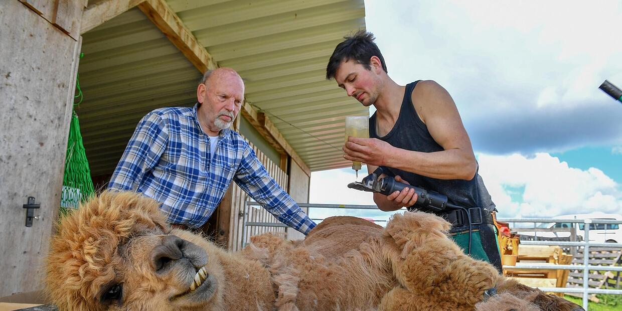 – Christa Drechsler hält fünf Alpakas. Bevor die Temperaturen steigen, müssen die exotischen Tiere geschoren werden. Ein Knochenjob für Mensch und Tier.