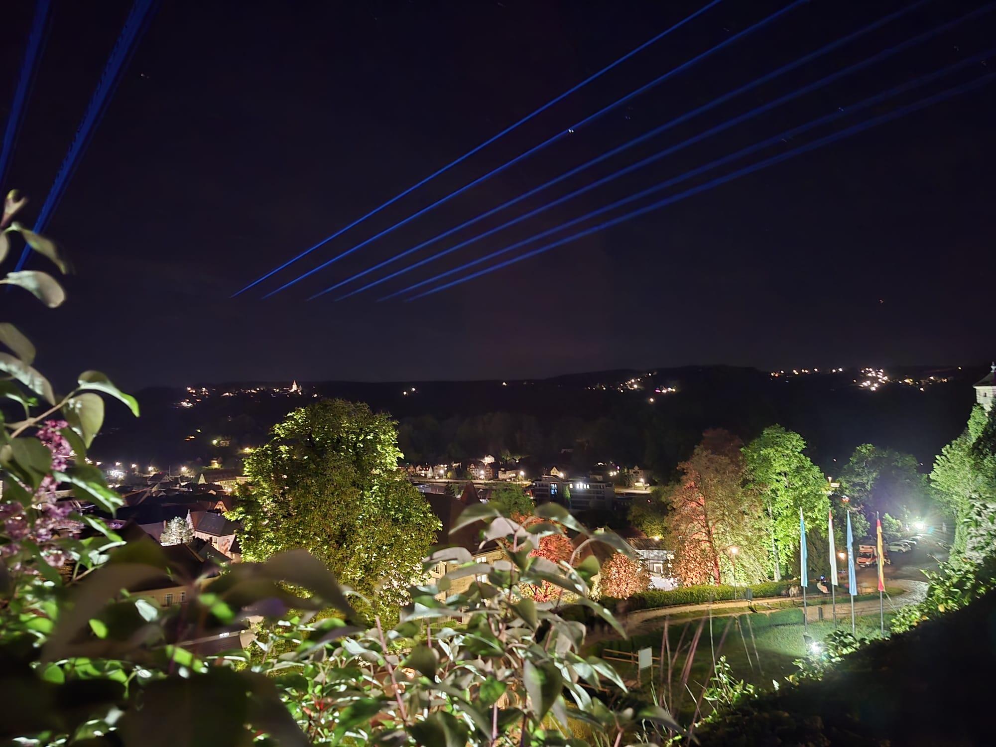 Lichtevent in der Bilderschau Ein letzter Blick auf "Kronach leuchtet 2025" Auch unsere Leser haben "Kronach leuchtet" im Bild festgehalten. // Foto: Dominik Bartscht von Marco Meißner TEILEN  04.05.2025 Kronach – Buntes Licht erhellte die Kronacher Nächte und lockte zahlreiche Gäste an. Ein magischer Parcours aus Licht und Schatten entfaltete sich - bis ein Unwetter den letzten Tag ins Wasser fallen ließ. Artikel anhören Sie können uns nicht hören? Diese Funktion können Sie exklusiv mit PLUS nutzen. Erhalten Sie uneingeschränkten Zugriff auf alle Audioinhalte, Artikel und vieles mehr. Vorlesefunktion freischalten Bereits -Zugriff? Jetzt Anmelden Laserstrahlen erstrecken sich weit über Kronach hinaus. Von den Festungsmauern erstrahlt buntes Licht. Tief unter den Bastionen schlängeln sich auch in den letzten Tagen des Lichtevents "Kronach leuchtet" massenhaft Besucher die gepflasterte Festungsstraße hinauf zum Bollwerk. Sie freuen sich auf einen Parcours aus Licht, Klang und Kunst durch die historischen Mauern. So endete das Lichtfestival am Wochenende. "Kronach leuchtet" lockt Massen an Menschen an Auch wenn das Festival am letzten Tag im wahrsten Sinne des Wortes verhagelt wurde, konnten sich Besucher wie Organisatoren bis dahin wohl nicht über die diesjährige Veranstaltung beschweren. Denn über weite Strecken war "Kronach leuchtet" mit herrlich frühsommerlichen Wetter gesegnet. Das machte sich auch am riesigen Besucheraufkommen bemerkbar. Teilweise war es kaum mehr möglich, abends einen Parkplatz in der Innenstadt zu finden, so viele Besucher aus nah und fern waren gekommen. Zwei Bildergalerien zeigen die ganze Lichterpracht Zum Abschluss laden wir zu einem Bilderrundgang ein, der noch einmal die ganze Pracht und das Besucheraufkommen auf der Festung Rosenberg aufleben lässt. Wir zeigen zudem eine kleine Bildergalerie unserer User. Viel Spaß beim Betrachten! Die letzte Jubiläumsnacht von Kronach leuchtet musste leider abgesagt werden // FOTOGALERIE Yvonne Meissner Impressionen vom "Kronach leuchtet"-Endspurt 2025. // FOTOGALERIE Foto: Dominic Meißner/Yvonne Meißner Impressionen vom "Kronach leuchtet"-Endspurt 2025. // FOTOGALERIE Foto: Dominic Meißner/Yvonne Meißner Impressionen vom "Kronach leuchtet"-Endspurt 2025. // FOTOGALERIE Foto: Dominic Meißner/Yvonne Meißner Impressionen vom "Kronach leuchtet"-Endspurt 2025. // FOTOGALERIE Foto: Dominic Meißner/Yvonne Meißner Impressionen vom "Kronach leuchtet"-Endspurt 2025. // FOTOGALERIE Foto: Dominic Meißner/Yvonne Meißner Impressionen vom "Kronach leuchtet"-Endspurt 2025. // FOTOGALERIE Foto: Dominic Meißner/Yvonne Meißner Impressionen vom "Kronach leuchtet"-Endspurt 2025. // FOTOGALERIE Foto: Dominic Meißner/Yvonne Meißner Impressionen vom "Kronach leuchtet"-Endspurt 2025. // FOTOGALERIE Foto: Dominic Meißner/Yvonne Meißner Impressionen vom "Kronach leuchtet"-Endspurt 2025. // FOTOGALERIE Foto: Dominic Meißner/Yvonne Meißner Impressionen vom "Kronach leuchtet"-Endspurt 2025. // FOTOGALERIE Foto: Dominic Meißner/Yvonne Meißner Impressionen vom "Kronach leuchtet"-Endspurt 2025. // FOTOGALERIE Foto: Dominic Meißner/Yvonne Meißner Impressionen vom "Kronach leuchtet"-Endspurt 2025. // FOTOGALERIE Foto: Dominic Meißner/Yvonne Meißner Impressionen vom "Kronach leuchtet"-Endspurt 2025. // FOTOGALERIE Foto: Dominic Meißner/Yvonne Meißner Impressionen vom "Kronach leuchtet"-Endspurt 2025. // FOTOGALERIE Foto: Dominic Meißner/Yvonne Meißner Impressionen vom "Kronach leuchtet"-Endspurt 2025. // FOTOGALERIE Foto: Dominic Meißner/Yvonne Meißner Impressionen vom "Kronach leuchtet"-Endspurt 2025. // FOTOGALERIE Foto: Dominic Meißner/Yvonne Meißner Impressionen vom "Kronach leuchtet"-Endspurt 2025. // FOTOGALERIE Foto: Dominic Meißner/Yvonne Meißner Impressionen vom "Kronach leuchtet"-Endspurt 2025. // FOTOGALERIE Foto: Dominic Meißner/Yvonne Meißner Impressionen vom "Kronach leuchtet"-Endspurt 2025. // FOTOGALERIE Foto: Dominic Meißner/Yvonne Meißner Impressionen vom "Kronach leuchtet"-Endspurt 2025. // FOTOGALERIE Foto: Dominic Meißner/Yvonne Meißner Impressionen vom "Kronach leuchtet"-Endspurt 2025. // FOTOGALERIE Foto: Dominic Meißner/Yvonne Meißner Impressionen vom "Kronach leuchtet"-Endspurt 2025. // FOTOGALERIE Foto: Dominic Meißner/Yvonne Meißner Impressionen vom "Kronach leuchtet"-Endspurt 2025. // FOTOGALERIE Foto: Dominic Meißner/Yvonne Meißner Impressionen vom "Kronach leuchtet"-Endspurt 2025. // FOTOGALERIE Foto: Dominic Meißner/Yvonne Meißner Impressionen vom "Kronach leuchtet"-Endspurt 2025. // FOTOGALERIE Foto: Dominic Meißner/Yvonne Meißner Impressionen vom "Kronach leuchtet"-Endspurt 2025. // FOTOGALERIE Foto: Dominic Meißner/Yvonne Meißner Impressionen vom "Kronach leuchtet"-Endspurt 2025. // FOTOGALERIE Foto: Dominic Meißner/Yvonne Meißner Impressionen vom "Kronach leuchtet"-Endspurt 2025. // FOTOGALERIE Foto: Dominic Meißner/Yvonne Meißner Impressionen vom "Kronach leuchtet"-Endspurt 2025. // FOTOGALERIE Foto: Dominic Meißner/Yvonne Meißner Impressionen vom "Kronach leuchtet"-Endspurt 2025. // FOTOGALERIE Foto: Dominic Meißner/Yvonne Meißner Impressionen vom "Kronach leuchtet"-Endspurt 2025. // FOTOGALERIE Foto: Dominic Meißner/Yvonne Meißner Impressionen vom "Kronach leuchtet"-Endspurt 2025. // FOTOGALERIE Foto: Dominic Meißner/Yvonne Meißner Auch unsere Leser haben "Kronach leuchtet" im Bild festgehalten. // FOTOGALERIE Foto: Janine Stein Auch unsere Leser haben "Kronach leuchtet" im Bild festgehalten. // FOTOGALERIE Foto: Dominik Bartscht Auch unsere Leser haben "Kronach leuchtet" im Bild festgehalten. // FOTOGALERIE Foto: Simone Langold Auch unsere Leser haben "Kronach leuchtet" im Bild festgehalten. // FOTOGALERIE Foto: Jo Jo Auch unsere Leser haben "Kronach leuchtet" im Bild festgehalten. // FOTOGALERIE Foto: Jo Jo Auch unsere Leser haben "Kronach leuchtet" im Bild festgehalten. // FOTOGALERIE Foto: Jo Jo Auch unsere Leser haben "Kronach leuc