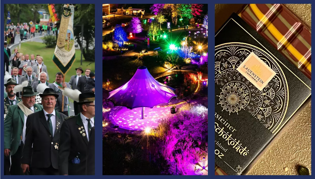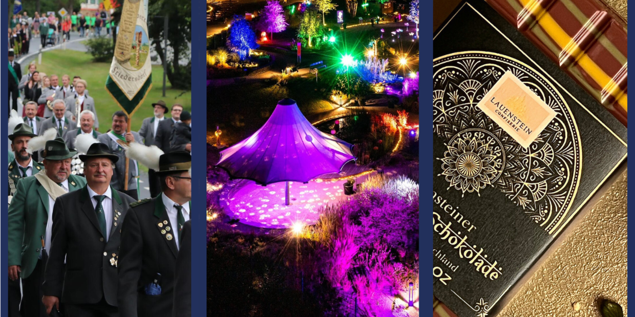 Veranstaltungstipps Kreis Kronach: Wochenende zwischen Dolce Vita und Tradition Von Bobbycarrennen bis Schützenfest verspricht das Wochenende Spannung. Der Kreis Kronach bietet ein buntes Potpourri an Events. Eine Übersicht. // Fotos: Glissnik/Förtsch/Lauenstein Confiserie; Collage: Daniela Pondelicek von Daniela Pondelicek TEILEN  29.08.2025 Kreis Kronach – Von Bobbycar-Rennen bis Schützenfest verspricht das Wochenende Spannung. Der Kreis Kronach bietet ein buntes Potpourri an Events. Eine Übersicht. Artikel anhören Sie können uns nicht hören? Diese Funktion können Sie exklusiv mit PLUS nutzen. Erhalten Sie uneingeschränkten Zugriff auf alle Audioinhalte, Artikel und vieles mehr. Vorlesefunktion freischalten Bereits -Zugriff? Jetzt Anmelden Was könnte man am Wochenende machen? In den letzten beiden Wochen war die Antwort darauf in vielen Fällen schon klar: natürlich aufs Freischießen! Veranstaltungen am kommenden Wochenende: Diese Veranstaltungen finden im Kreis Kronach vom 29. bis 31. August statt Und jetzt? Selbstverständlich nicht dem Nach-Freischießen-Blues verfallen und trotzdem etwas Schönes unternehmen. Und da gibt's ganz viele tolle Veranstaltungen, die für einen tollen Wochen-Ausklang sorgen können. Dieser Artikel bietet eine Übersicht über die Veranstaltungen, die nur am Samstag nur am Sonntag am Wochenende an mehreren Tagen stattfinden. 1. Samstags-Kracher: Diese Veranstaltungen finden am 30. August im Kreis Kronach statt Am Samstag kommen Groß und Klein auf ihre Kosten: Da wäre zum Beispiel das Bobbycarrennen der Schmiedenbrüder in Nordhalben, das für jede Menge Spaß sorgen dürfte. Beim Kinder-Angelnachmittag darf sich an diesem spannenden Hobby versucht werden - und die Großen können am Abend mit deem FC Bayern Fanclub Nordhalben mit einem Grillfest die sportlichen Erfolge und die Fangemeinschaft feiern. Und dann öffnet die neue gläserne Manufaktur der Lauenstein Confiserie ihre Türen - da kann man sich sicher den dazugehörigen Nachtisch abholen. Alle Veranstaltungshighlights am Samstag, 30. August, im Überblick: 8 Uhr: 11. Steinkohlecup der Bogenfreunde Stockheim, Vereinsgelände des Obst- und Gartenbauvereins Stockheim 10 Uhr: Bobbycarrennen der Schmiedenbrüder Nordhalben, Schlossbergstraße in Nordhalben 14 bis 22 Uhr: Lauenstein Confiserie: Wiedereröffnung der Gläsernen Manufaktur, Fischbachsmühle 2 in Ludwigsstadt 14 Uhr: Kinder-Angelnachmittag des Sportfischervereins Nordhalben am oberen Seifenteich, Treffpunkt: Parkplatz des Biergarten Mauthaus beim Wasserwirtschaftsamt 18.30 Uhr: Grillfest des FC Bayern München Fanclubs Nordhalben, Fichteraweg 50 in Nordhalben Bayernfeier des FC Bayern Fanclubs Burggrub 2. Wochenend-Ausklang: Wo man im Kreis Kronach am Sonntag, 31. August, was erleben kann Beim Grillfest und in der Fischbachsmühle zu viel gegessen? Dann auf zum Sport am Sonntag: Am Sonntag gibt's zwei Wanderungen durch den Kreis Kronach - einmal von Ludwigsstadt aus zum Jugendheim Tippach, einmal vom Kulturzentrum in Wallenfels aus zum Hirschsprung im Höllental. Alle Veranstaltungshighlights am Sonntag, 31. August, im Überblick: 10 Uhr: Impulswanderung zum Jugendheim Tippach, Treffpunkt am Marktplatz in Ludwigsstadt 13.30 Uhr: Wanderung im Höllental zum Hirschsprung, Treffpunkt Kulturzentrum Wallenfels 3. Weil manche Feste gebührend gefeiert werden müssen: Diese Veranstaltungen finden am kommenden Wochenende über mehrere Tage statt Und nein, man kann auch einfach mal so das Leben genießen, ohne es mit Sport ausgleichen zu müssen. Und wer deshalb noch mehr Lust auf Genuss hat, kann es sich auch noch beim Fränkisch-Italienischen Straßenfest in Rothenkirchen gut gehen lassen. Wem der Sinn dann doch nicht nach "Dolce Vita" steht, kann aber auch beim Schützen- und Volksfest in Steinbach am Wald oder der Dörfleseer Kerwa vorbeischauen. Und dann kann man ja noch einmal im leuchtenden Kräutergarten in Teuschnitz flanieren... Alle mehrtägigen Veranstaltungshighlights am Wochenende im Überblick: seit 23. bis 30. August: Leuchtender Kräutergarten, Arnika-Akademie Teuschnitz 29. August bis 1. September: Schützen- und Volksfest Steinbach am Wald, Ludwigsstädter Straße 39 29. bis 31. August: Dörfleser Kerwa mit Feier zu 50 Jahren Heimatverein Dörfles, Festzelt am Kalkwerk in Dörfles 29. bis 31. August: Fränkisch-Italienisches Straßenfest, Kaiser-Karl-Straße in Rothenkirchen 5 Ausflugs-Tipps Ab in die Ferien mit dem Deutschlandticket! Wenn es mal Zeit für einen Tapetenwechsel ist: Diese fünf Reiseziele sind von Kronach aus entspannt zu erreichen - und bieten Aktivitäten für den kleinen Geldbeutel. Partystimmung in Wilhelmsthal Jung und Alt im Heimatfest-Fieber: 60 Jahre Tradition Spektakuläre Tänze und unvergessliche Momente elektrisierten Wilhelmsthal. Zum 60. Jubiläum des Heimatfestes traf Tradition auf pure Emotion. Kronacher Freischießen 2025 Sind Sie bereit fürs Freischießen? Das erwartet die Besucher Auf dem Kronacher Freischießen wartet ein Mix aus Adrenalin und Tradition. Hinter den Kulissen muss Platzwart Charly Wittig bis zur letzten Minute agieren, reagieren, organisieren. Schützenfest 2025 Kronacher Freischießen: Spannung beim Aufbau Platzmeister Charly Wittig ist der ruhende Pol im hektischen Treiben des Kronacher Freischießens. Die Schausteller bauen gerade auf und jede Attraktion kommt langsam an ihren Platz.