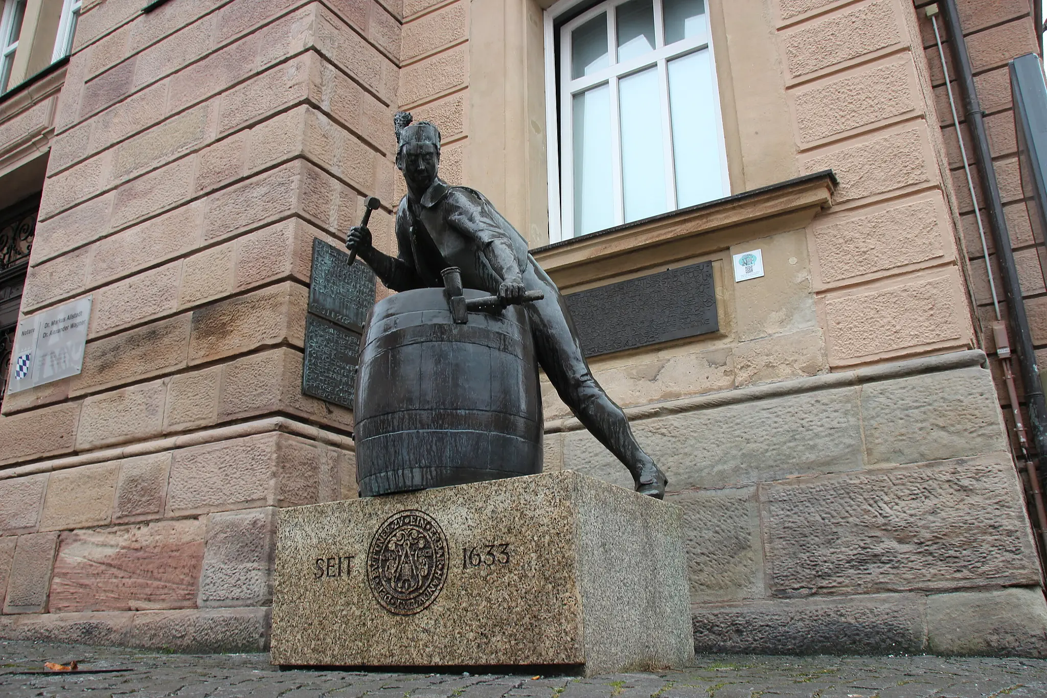 Bild der Woche Meister der Fässer: Das Büttner-Denkmal in Kulmbach Das Büttner-Denkmal steht auf dem Marktplatz. // Tobias Götz von Gina Baumgartl TEILEN  17.02.2025 Kulmbach – Das Denkmal für ein altes Handwerk – auf dem Kulmbacher Marktplatz erinnert eine Figur an die traditionsreiche Zunft der Büttner. Das Bild der Woche zeigt das Büttner-Denkmal in Kulmbach. Seit 2007 steht auf dem Marktplatz die Bronzefigur eines Büttners, der einen Fassreifen um ein fertiggestelltes Fass treibt. Besucher haben die Möglichkeit, über einen QR-Code Informationen über das Denkmal abzurufen. // Tobias Götz Die Büttner spielten seit dem Mittelalter eine wichtige Rolle im wirtschaftlichen Leben der Stadt Kulmbach. Vor dem Zweiten Weltkrieg gab es in Kulmbach mehr als 20 Büttnereien. Die zunehmende Industrialisierung führte in den folgenden Jahren zum Niedergang des alten Handwerks. Noch heute gibt es in Kulmbach einen Büttnerverein, der alljährlich zur Eröffnung der Kulmbacher Bierwoche vor dem Rathaus tanzt. Für Fragen, Anregungen und Ideen für Themen rund um den Landkreis Kulmbach können Sie die Redaktion per Mail über mein-kulmbach@bayerische-rundschau.de erreichen. Erfahren Sie mehr von Mein-Kulmbach: Der Zauber der Dunkelheit Im Lichterglanz: So schön ist Kulmbach bei Nacht Wenn die Sonne untergeht, legt sich der Schleier der Dunkelheit über Kulmbach. Dass die Stadt zu Füßen der Plassenburg ihren ganz eigenen Reiz hat, zeigt unsere Bildergalerie. Touris, Touren und Tresore Tourist-Info Kulmbach: Gut geschützt & trotzdem da für Alle Die Tourist-Information in Kulmbach ist gleichermaßen Anlaufstelle für Touristen und Einheimische. Von skurrilen Erlebnissen, Verwechslungen, einem Tresor und der Liebe zu Kulmbach und den Menschen. Pizza, Pasta, Wein und mehr Das Due Fratelli: Kulmbachs italienisches Wohnzimmer Seit 2021 führen die Brüder Samuel und Daniel Lubiato gemeinsam mit ihrer Mutter Anka Lubiato die Enothek Due Fratelli in der Buchbindergasse. Wer hier Platz nimmt, begibt sich auf eine kulinarische Reise nach Italien.