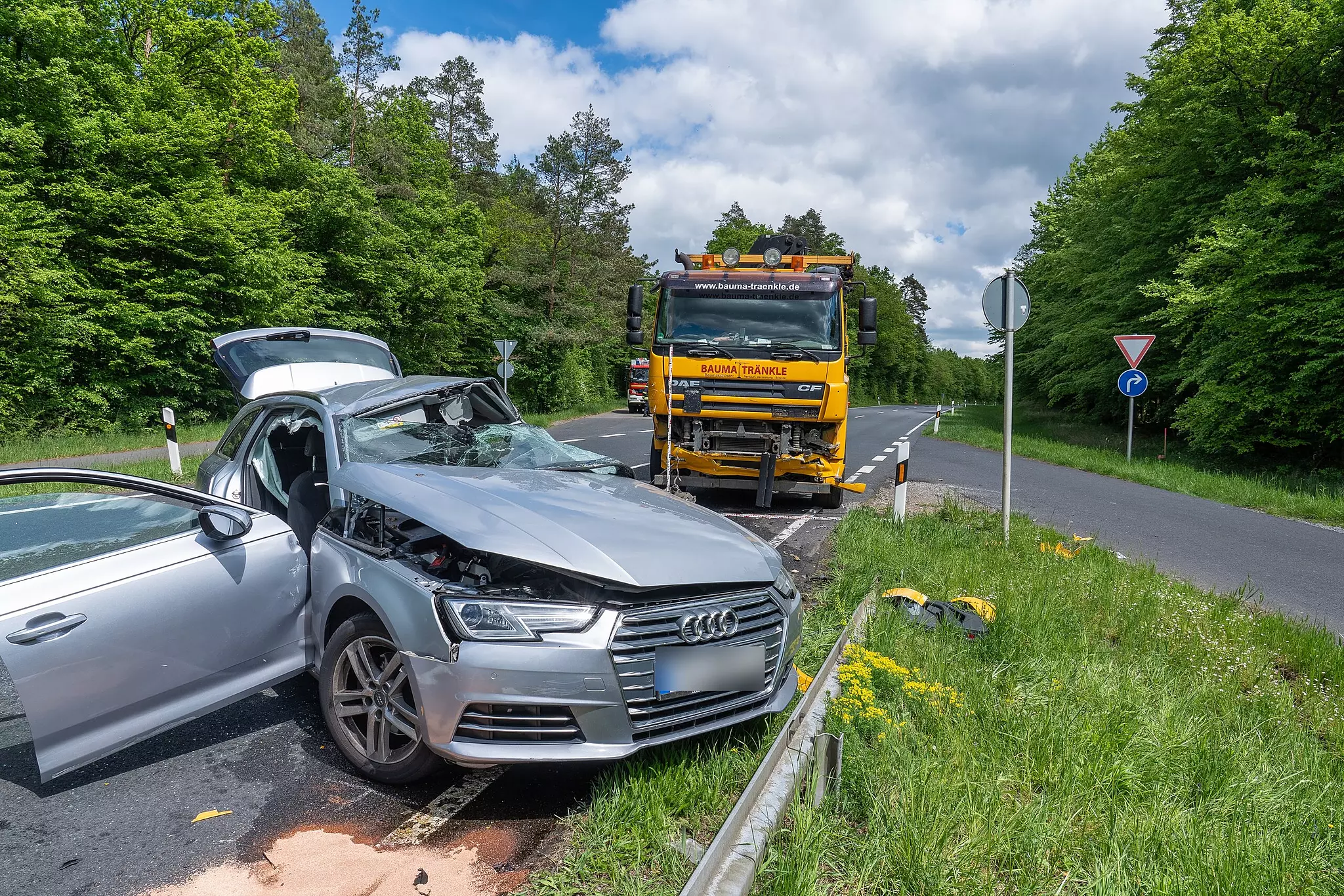Bei Ausfahrt aus Parkplatz Tödlicher Unfall bei Bad Kissingen: Lkw fährt in Auto Ersten Erkenntnissen zufolge war das Ehepaar aus Bad Kissingen kommend in Richtung Albertshausen unterwegs. // NEWS5 / Ferdinand Merzbach (NEWS5) von Redaktion /emue TEILEN  05.05.2025 Bad Kissingen/Albertshausen – Auf der Staatsstraße 2291 zwischen Bad Kissingen und Albertshausen prallt ein Lkw in ein Auto, das gerade wendet. Einer der beiden Insassen im Auto stirbt, die Straße ist gesperrt. Artikel anhören Sie können uns nicht hören? Diese Funktion können Sie exklusiv mit PLUS nutzen. Erhalten Sie uneingeschränkten Zugriff auf alle Audioinhalte, Artikel und vieles mehr. Vorlesefunktion freischalten Bereits -Zugriff? Jetzt Anmelden Auf der Staatsstraße 2291 zwischen Bad Kissingen und Albertshausen ist es am Montag, 5. Mai, zu einem schweren Verkehrsunfall gekommen. Ein mit einem älteren Ehepaar besetzter Audi wurde beim mutmaßlichen Wenden auf einem Parkplatz von einem Lkw seitlich gerammt, wie die Agentur News5 berichtet. Am Montagvormittag, gegen 11:45 Uhr, ging die Mitteilung über den Verkehrsunfall bei der Einsatzzentrale der Polizei ein. Ersten Erkenntnissen zufolge war das Ehepaar aus Bad Kissingen kommend in Richtung Albertshausen unterwegs. Kurz nach der B286 fuhr der Fahrer auf einen Parkplatz an der Staatsstraße 2291. Beim Herausfahren auf die Gegenfahrbahn übersah er offenbar einen aus Lkw. Dieser erfasste den Audi frontal auf der Fahrerseite, so News 5 weiter. Der 79-jährige Fahrer wurde mit schwersten Verletzungen ins Krankenhaus gebracht, wo er wenig später verstarb. Die 80-jährige Beifahrerin erlitt ebenfalls lebensbedrohliche Verletzungen und wird derzeit intensivmedizinisch behandelt. Die beiden Insassen des Lkw blieben unverletzt. Ein mit einem älteren Ehepaar besetzter Audi wurde beim mutmaßlichen Wenden auf einem Parkplatz von einem Lkw seitlich gerammt. // NEWS5 / Ferdinand Merzbach (NEWS5) Die Fahrzeuge wurden sichergestellt und durch einen Abschleppdienst geborgen. Die Staatsstraße 2291 war teilweise voll gesperrt. Die Ermittlungen zum Ablauf des Unfallgeschehens hat die Polizeiinspektion Bad Kissingen aufgenommen. Zur Klärung des exakten Hergangs wurde auch eine Sachverständige hinzugezogen. Die Polizei richtet sich im Zuge der Unfallermittlungen auch an die Bevölkerung: Wer Angaben zu dem Unfallgeschehen machen oder sonst sachdienliche Hinweise geben kann, wird gebeten, sich unter Tel. 0971/7149-0 mit der Polizeiinspektion Bad Kissingen in Verbindung zu setzen. Quellen: Polizei/ News 5 Sicherheit im Fokus Laster im Visier: Polizei-Kontrollen in Fuchsstadt Die Polizei nahm den Schwerverkehr entlang der B287 bei Fuchsstadt unter die Lupe. Worauf Lkw-Fahrende achten müssen und wie eine solche Verkehrskontrolle abläuft. Berufung Sexuelle Übergriffe: Bad Neustädter Fall wird neu aufgerollt Wende im Fall um sexuelle Übergriffe: Die Berufung wirft neue Fragen auf und das Verfahren wird erneut aufgerollt. Gewaltdelikt Frau tot im Bett - Anklage gegen Senior erhoben Ein Mann wählt den Notruf und berichtet, seine Partnerin sei tot. Nun hat die Staatsanwaltschaft Mordanklage gegen den Senior erhoben.