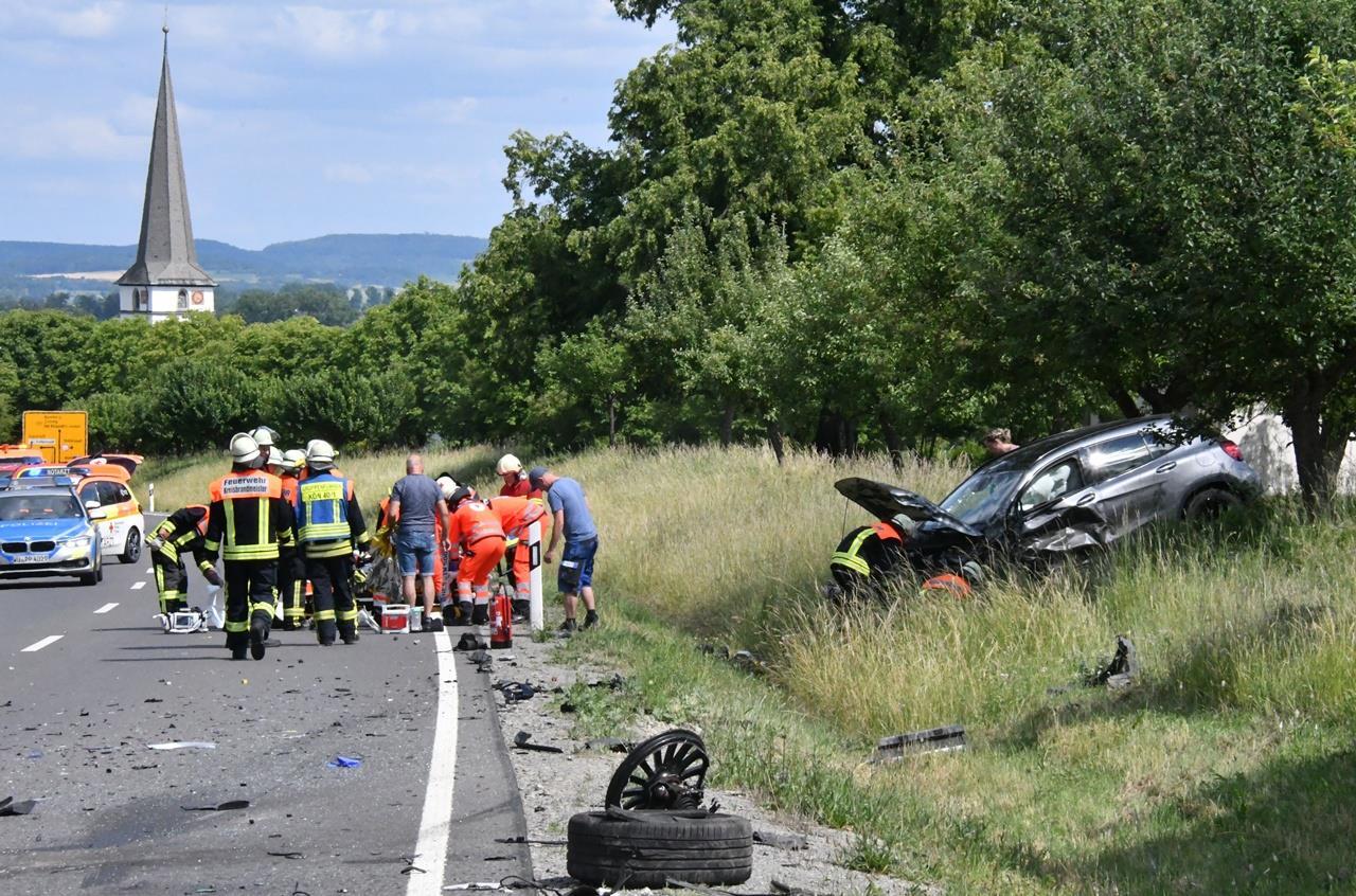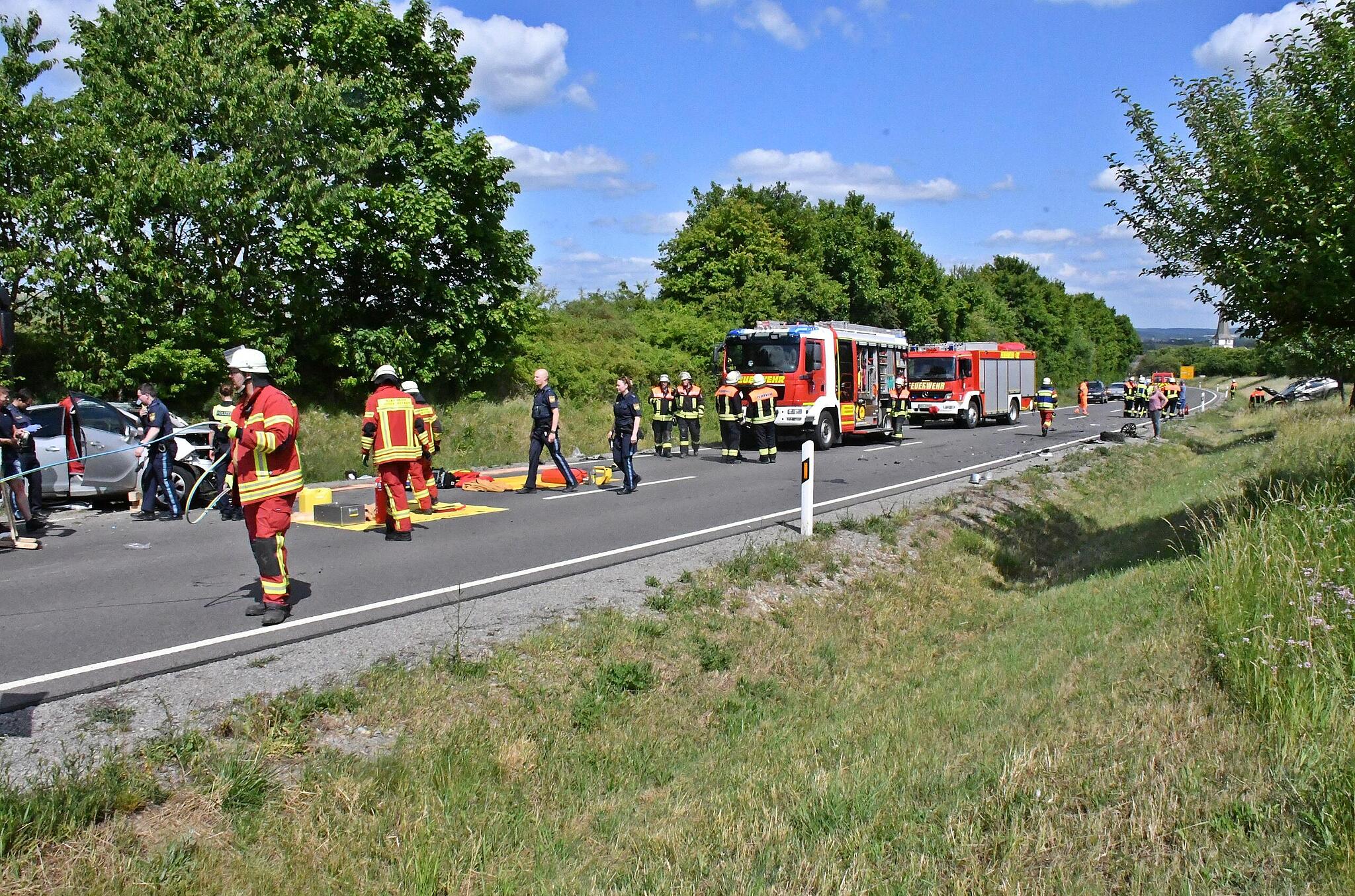 Großeinsatz Nach schwerem Unfall: 87-jähriger Autofahrer stirbt Ein schwerer Unfall hat sich auf der B279 zwischen Großeibstadt und Saal ereignet. Zahlreiche Rettungskräfte waren im Einsatz. // Hanns Friedrich von Hanns Friedrich TEILEN  17.06.2025 Großeibstadt – Ein 87-jähriger Autofahrer erliegt seinen Verletzungen nach einem schweren Unfall auf der B 279 bei Großeibstadt im Landkreis Rhön-Grabfeld. Die Ermittlungen zur Ursache laufen. Artikel anhören Sie können uns nicht hören? Diese Funktion können Sie exklusiv mit PLUS nutzen. Erhalten Sie uneingeschränkten Zugriff auf alle Audioinhalte, Artikel und vieles mehr. Vorlesefunktion freischalten Bereits -Zugriff? Jetzt Anmelden Auf der Bundesstraße B 279 bei Großeibstadt ist es am Montagmittag zu einem schweren Verkehrsunfall gekommen. Die Polizei Bad Königshofen hat den Unfall aufgenommen. Ein Sachverständiger war ebenfalls vor Ort, schreibt das Polizeipräsidium Unterfranken. Gegen 14.45 Uhr war der 87-jährige Fahrer eines Mercedes aus noch unklarer Ursache auf die Gegenfahrbahn geraten. Sein Fahrzeug kollidierte mit einem aus Richtung Saal Opel einer 70-Jährigen, heißt es im Pressebericht der Polizei weiter. Bei dem schweren Verkehrsunfall waren zahlreiche Einsatzkräfte vor Ort. // Hanns Friedrich Der Opel wurde durch den Aufprall auf den Seitenstreifen und die dortige Böschung geschleudert, wobei das Fahrzeug noch einen Baum touchierte und dann am Abhang zum Stehen kam. Die Fahrerin erlitt dabei schwere Verletzungen und wurde vom Rettungsdienst und einem Notarzt versorgt. Das Fahrzeug des 87-jährigen Unfallverursachers schleuderte nach rechts und blieb im Straßengraben stark beschädigt hängen. Ein schwerer Verkehrsunfall hat sich auf der Bundesstraße B 279 bei Großeibstadt ereignet. // Hanns Friedrich Die Feuerwehren aus Bad Königshofen und Großeibstadt befreiten den Mann aus dem Autowrack. Dabei kam auch der Rettungssatz zum Einsatz. Der 87-Jährige erlitt lebensbedrohliche Verletzungen. Beide wurden mit Rettungswagen in ein nahegelegenes Krankenhaus gebracht. Die Fahrzeuge wurden schwer beschädigt. Erste Schätzungen gehen von einer Schadenshöhe im mittleren fünfstelligen Bereich aus. Die Polizei Bad Königshofen hat den Verkehrsunfall aufgenommen. Sie wurde durch einen Sachverständigen unterstützt. // Hanns Friedrich Am Dienstagvormittag erlag der 87-Jährige seinen schweren Verletzungen im Krankenhaus, teilt die Polizei weiter mit. Die Polizei Bad Königshofen hat vor Ort den Verkehrsunfall aufgenommen. Die Beamten wurden auf Weisung der Staatsanwaltschaft Schweinfurt durch einen Sachverständigen unterstützt. Die genaue Unfallursache sowie die Schadenshöhe sind Gegenstand der Ermittlungen. Die B 279 war im Unfallbereich für mehrere Stunden für den Verkehr gesperrt. // Hanns Friedrich An der Einsatzstelle waren zwei Notärzte, der Einsatzleiter Rettungsdienst, Rettungswagen des Bayerischen Roten Kreuzes (BRK) Bad Königshofen und Bad Neustadt, Beamte der Polizeiinspektion Bad Neustadt und der Station Bad Königshofen. Die Feuerwehren aus Großeibstadt und Bad Königshofen waren mit 50 Einsatzkräften am Unfallort, ebenso Kreisbrandinspektor Michael Weber sowie Kreisbrandmeister Christoph Wohlfahrt. Die B 279 war in diesem Bereich für mehrere Stunden für den Verkehr gesperrt. Der Sachschaden wird auf rund 30.000 Euro beziffert. Mit Informationen aus dem Polizeibericht des Polizeipräsidiums Unterfranken.