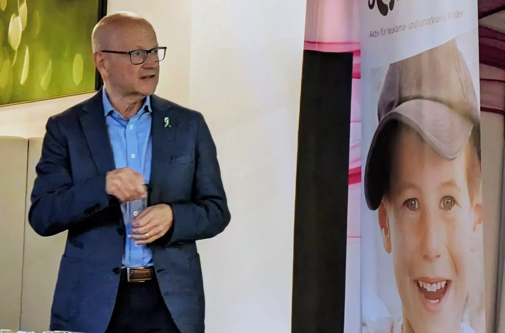 Forschung Wenn Kinder an Krebs erkranken Professor Dr. med. Paul-Gerhardt Schlegel, Leiter des Schwerpunkts pädiatrische Hämatologie, Onkologie und Stammzelltransplantation an der Universitätsklinik Würzburg, bei seinem Vortrag. // Sigismund von Dobschütz Moderator Steffen Krambo (links), Vereinsvorstand „Jonas hilft“, und die Präsidenten Oliver Hüfner (Rotary Club) und Horst Waldner (Lions Club) bedanken sich beim Referenten Prof. Dr. med. Paul-Gerhardt Schlegel // Sigismund von Dobschütz Veranstalter, Organisatoren, Gastgeber und Referent der Netzwerk-Veranstaltung (von links): Timo Krambo (Jonas hilft), Prof. Dr. Paul-Gerhardt Schlegel (Referent), Nicolas Sauer (Max-Armbrecht-Leukämiehilfe), Horst Waldner (Lions Club), Oliver Hüfner (Rotary Club), Steffen Krambo (Jonas hilft), Jürgen Balles und Frank Kugler (beide Labor LS) // Sigismund von Dobschütz von Sigismund von Dobschütz TEILEN  18.04.2024 Großenbrach – Es gibt Fortschritte in der Therapie tumorkranker junger Patienten. Professor Paul-Gerhardt Schlegel stellte sie vor. Zu einer Benefiz-Netzwerkveranstaltung unter dem Motto „Gemeinsam gegen Kinderkrebs – Hoffnung auf Heilung“, organisiert von den Bad Kissinger Vereinen „Max-Armbrecht-Leukämiehilfe“ und „Jonas hilft“, hatten der Rotary Club und der Lions Club ihre Mitglieder nach Großenbrach eingeladen. Die Geschäftsleitung der Firma Labor LS begrüßte als Gastgeber über hundert Zuhörer in ihrer Mensa zum Vortrag von Prof. Dr. Paul-Gerhardt Schlegel, Leiter des Schwerpunkts pädiatrische Hämatologie, Onkologie und Stammzelltransplantation an der Universitätsklinik Würzburg. Die Spende der beiden Clubs stockten die Zuhörer auf insgesamt 6000 Euro auf zur Unterstützung der Würzburger Therapieforschung in der Pädiatrischen Onkologie und Hämatologie.Zu Beginn der Veranstaltung berichteten die Vorstände Nicolas Sauer (Max-Armbrecht-Leukämiehilfe) und Timo Krambo (Jonas hilft) über Historie, Aufgaben und Ziele ihrer Vereine. So unterstützt der vom Arzt Ulrich Armbrecht im Jahr 1996 nach dem Tod seines verstorbenen Sohnes Max gegründete Verein Patienten mit Leukämie und anderen schweren Krebserkrankungen unter besonderer Beachtung der psychosozialen Betreuung, da damals Defizite in der psychosozialen Betreuung von Krebspatienten festgestellt wurden. Der Verein mit seinen elf Mitgliedern arbeitet eng mit Prof. Schlegel und der Würzburger Uni-Klinik zusammen. Schlegel war es auch, der beim kleinen Jonas Krambo im Herbst 2021 ein diffuses intrinsisches Ponsgliom (DIPG) diagnostiziert hatte, wie dessen Vater Timo Krambo den Zuhörern berichtete. Nur zehn Monate später verstarb Jonas im Alter von nur elf Jahren. Ihm zum Gedenken gründete die Familie im Februar 2023 den Verein „Jonas hilft“, um leukämie- und tumorkranken Kindern „Herzenswünsche zu erfüllen“, ihren Familien „Momente zur Entspannung“ zu ermöglichen und durch Förderung der Forschung allen Betroffenen etwas Hoffnung zu geben.„Hoffnung“ war auch ein wiederkehrender Begriff im Vortrag von Paul-Gerhardt Schlegel. Er verwies auf die Entwicklung in der Kinderkrebstherapie: Während um das Jahr 1940 nur etwa zehn bis 20 Prozent der an Krebs erkrankten Kinder eine Überlebenschance hatten, können dank der Forschung heute durchschnittlich 80 Prozent – mit Spitzenwerten bis zu 90 Prozent je nach Art der Krebserkrankung – gerettet werden. Schlegel: „Ich bin meinen Vorgängern für diese Entwicklung sehr dankbar.“Neue BehandlungsmethodeNun sei es wichtig, durch weitere Forschung auch den übrigen 20 Prozent der erkrankten Kinder eine Überlebenschance zu geben. „Da ist nicht sehr viel Innovation erforderlich.“ Eine neue Behandlungsmethode ist die hybride Zell- und Gen-Therapie: Bei erkrankten Kindern konnten die eigenen Stammzellen die aggressiven Tumorzellen nicht erkennen, versuchte es der Mediziner in Großenbrach in einfachen Worten zu erklären. Deshalb werden dem Patienten geeignete Zellen entnommen, die im Labor genetisch verändert werden. „Sie bekommen ein zweites Auge, um die Krebszellen zu erkennen.“ Diese genetisch veränderten Zellen werden dann millionenfach vermehrt und anschließend dem Körper des Patienten mittels einer Infusion wieder zugeführt. Diese Behandlungsmethode ist in Deutschland bereits zugelassen, allerdings im jeweiligen Genehmigungs- und Produktionsverfahren pro Patient sehr aufwändig, weshalb ein einziger, für die Behandlung ausreichender Infusionsbeutel heute noch 280.000 Euro kostet. „Das ist viel Geld, aber das Leben eines Kindes ist mehr wert“, gab Schlegel zu bedenken. Andererseits meinte er, diese Kosten müssten in Zukunft auf etwa 50.000 Euro vermindert werden.2100 Kinder erkranken pro Jahr Heute erkranken in Deutschland etwa 2100 Kinder pro Jahr an Krebs, die in spezialisierten Therapiezentren behandelt werden. An der Würzburger Uni-Klinik, die sich durch interdisziplinäre Versorgung von Kindern mit Hirntumoren auszeichnet, sind es etwa 90 bis 100 Patienten im Jahr, die überwiegend aus Süddeutschland eingewiesen werden, manche aber auch aus dem Ausland. Schlegel: „In absoluter Zahl ist es eine seltene Erkrankung, aber für die Patienten und deren Eltern eine Katastrophe.“ Dies gilt nicht nur im Moment der Diagnose und der konkreten Behandlung. Den Betroffenen stellt sich auch die Frage: Was haben wir anschließend zu erwarten? Was kommt auf uns zu? Hierzu werden in Würzburg neuropsychologische Langzeitstudien betrieben.Wissenschaftler tauschen sich weltweit ausWeltweit werden heute neue Behandlungskonzepte erforscht, wobei die USA und mit weitem Abstand China weiter sind als Deutschland. Doch es gibt einen intensiven Wissensaustausch weltweit. Die Firma BionTech forsche in ähnlicher Richtung wie die Würzburger, bestätigte Schlegel auf Nachfrage eines Zuhörers, aber auf dem Erwachsenen-Sektor. Schlegel: „Unsere Nische ist die Kinder-Onkologie.“ Krebs bei Kindern habe es schon immer 