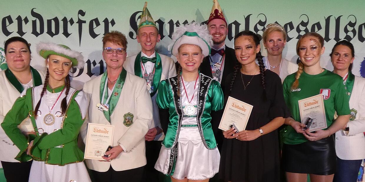 Auch der Nachwuchs wurde geehrt: Die FVF-Jugendauszeichnung erhielt Jule Zirwick, die seit 2015, damals gerade fünf Jahre alt, für die Eu-Ka-Ge tanzt. Von der Kinder- über die Jugendshowtanzgruppe bis hin zur heutigen Jugendmarschgruppe überzeugte sie mit ihrem Talent. Auch als Kinderprinzessin verzauberte sie bereits das Publikum.