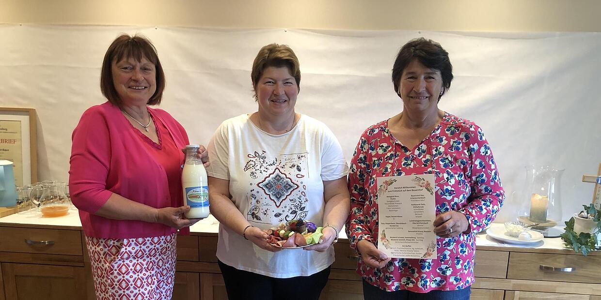 Bayerischer Bauernverband Genusserlebnis bei den Selbstvermarktern Edeltraud Häusler (v.l.), Steffi Kirchner und Helene Greubel beim Besuch der Schnapsbrennerei Bürger. // Andreas Lomb von Andreas Lomb TEILEN  30.05.2025 Thulba – Bauernfamilien luden auch in diesem Jahr wieder zu einem genussvollen Wochenendfrühstück auf ihre Höfe ein. Auf Initiative des Bayerischen Bauernverbandes wird dieses Genusserlebnis bayernweit angeboten. Die Bauern boten an zwei Tagen hofeigene und regionale Spezialitäten an, die man vor Ort genießen oder auch als Box mitnehmen konnte. Auch im Landkreis Bad Kissingen hatten sich drei Selbstvermarkter dieser Aktion angeschlossen. Anna Brand vom Biohof in Aura, Helene Greubel vom Bunten Bauernladen in Ramsthal und Steffi Kirchner von Bürgers Schnapsbrennerei in Thulba hatten ihre Teilnahme geplant. Die stellvertretende Kreisbäuerin Helene Greubel musste ihren Termin leider absagen, doch viele der bei ihr gemeldeten Teilnehmer nutzten daraufhin das Angebot der Kolleginnen. Bei einem Besuch in Thulba bei Selbstvermarkterin Steffi Kirchner konnten sich die Kreisbäuerin Edeltraud Häusler und ihre Vertreterin Helene Greubel von der Qualität des Angebotes und dem Rahmen der Veranstaltung überzeugen. Der Zuspruch und das Urteil der Gäste waren sehr gut. Einer Neuauflage im kommenden Jahr steht nichts im Wege.