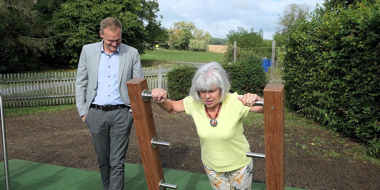 – Die Gemeinde hat zwei Sportgeräte für Erwachsene an der Kneippanlage im Altort von Ebenhausen übergeben.