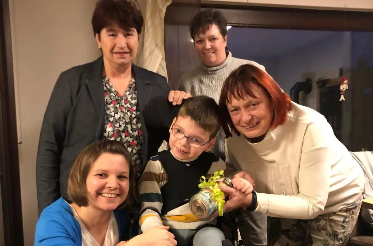 Spendenunterstützung Eine Plätzchenaktion für Max Carina, die Mutter von Max (von links), die stellvertretende Kreisbäuerin Helene Greubel, Max, Ortsbäuerin Sonja Vierheilig und Kreisbäuerin Edeltraud Häusler freuen sich über die Spendenaktion. // Andreas Lomb von Andreas Lomb TEILEN  06.01.2025 Elfershausen – Die Landfrauen im Bayerischen Bauernverband führen jedes Jahr in der Vorweihnachtszeit eine Aktion durch. Bei der Aktion verkaufen sie selbst gebackene Plätzchen liebevoll verpackt für einen guten Zweck. In diesem Jahr konnten die Leckereien in der Handwerkerhütte beim „Lichterglanz“ auf dem Bad Kissinger Weihnachtsmarkt erworben werden. Die Aktion war ein großer Erfolg und brachte einen Erlös von 1600 Euro. Ortsbäuerin Sonja Vierheilig hatte der Vorstand des BBV Bad Kissingen auf den siebenjährigen Max aus ihrer Gemeinde aufmerksam gemacht. Max leidet an einem seltenen Gendefekt und Epilepsie. Seine Familie kann jede Unterstützung gebrauchen, die ihr den Alltag erleichtert. Der Junge kann weder laufen noch sprechen und braucht für alles die Hilfe der Eltern. Umbauten im Haus und beim Auto sowie Therapien, die von der Krankenkasse nicht gezahlt werden, fordern die Familie auch finanziell. Der Bauernverband nahm den Hinweis der Ortbäuerin gerne auf und spendete den Erlös der Plätzchenaktion an die Elfershausener Familie. Kreisbäuerin Edeltraud Häusler überreichte mit ihrer Stellvertreterin Helene Greubel und der Ortbäuerin Sonja Vierheilig die Spende an Max und seine Familie.
