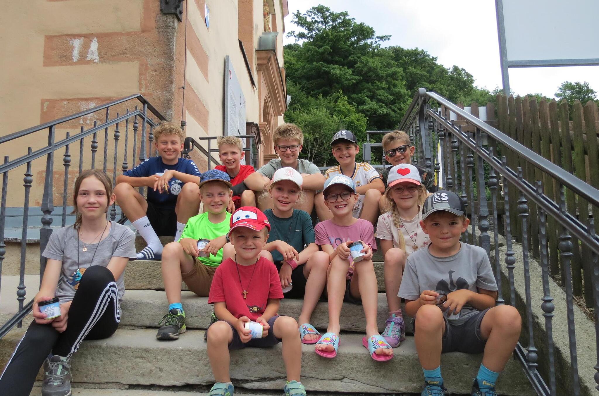 Tradition Pilger ziehen zum Kreuzberg Im Gegenlicht der aufgehenden Sonne geht der Pilgerzug über die Alte Saalebrücke in Euerdorf. // Doris Bauer von Doris Bauer TEILEN  24.07.2025 Euerdorf – Mit Liedern und Gebeten zogen die Gläubigen bei der Wallfahrt der Kreuzbruderschaft auf den Heiligen Berg der Franken. Rund 70 Teilnehmer folgten dem Ruf zur Wallfahrt auf den heiligen Berg der Franken – den Kreuzberg. An zwei Tagen wurde eine jeweils über 30 Kilometer lange Strecke bewältigt, bis die Pilger wieder wohlbehalten in der Heimatgemeinde ankamen.Es war diesmal kein leichtes Unterfangen. Die Temperaturen waren sommerlich hoch, so dass das Laufen zu einer ausgedehnten Schwitz-Partie geriet. Doch die Wallfahrer blieben gelassen und rüsteten sich mit dem entsprechenden Sonnenschutz. „Wer einen Teil der Strecke aussetzen musste, konnte jederzeit ins Begleitfahrzeug einsteigen. Außerdem wurden an vielen Haltepunkten Wasser ausgeschenkt, so dass alle gut versorgt waren. Am Kreuzberg selbst waren die Temperaturen erträglich. Ich bin froh, dass alle wieder gut zuhause angekommen sind und jeder für sich, aber auch wir als Veranstalter, die Wallfahrt als Erfolg verbuchen können“, erklärt Wallfahrtsleiterin Gisela Leber. Alles bestens organisiertAber auch sonst war alles bestens organisiert: Pünktlich startete die Pilgerschar um 6 Uhr an der Euerdorfer Pfarrkirche. Bis nach Burkardroth ging es längere Stücke durch den Wald. In Burkardroth wurde eine längere Verschnaufpause eingelegt, wo für die Pilger Verpflegung bereitstand. Dann ging es über Wollbach und Premich nach Waldberg, wo es die „legendäre“ Leberknödelsuppe gab, die allen für den Aufstieg in die „Kniebrech“ noch einmal ausreichend Kraft verlieh. Oben am Kloster wurden alle Wallfahrer mit einer willkommenen Weihwasser-Dusche von Franziskanerpater Korbinian begrüßt. Am Abend war nach dem Kreuzweg gemütliches Beisammensein mit gemeinsamem Liedersingen angesagt. Der nächste Morgen startete mit einem kräftigen Frühstück vor dem Gottesdienst, den Pfarrer Gerd Greier aus Bad Kissingen und Pater Korbinian, Guardian des Klosters Kreuzberg, gemeinsam zelebrierten. Zur Begrüßung der zahlreichen Gläubigen im Gottesdienst freute sich der Guardian augenzwinkernd besonders darüber, „dass ihr offensichtlich alles mitgebracht habt, was in Euerdorf nicht niet- und nagelfest ist: eine große Anzahl an Pilgern, eine Ministranten-Schar, einen eigenen Chor und Blasmusik.“ In der Tat mischten sich heuer viele Kinder unter die Pilgerschar, die dann vor Ort auch gerne den Ministranten-Dienst übernahmen. Zur musikalischen Gestaltung trugen das „Kreuzberg-Chörle“ unter der Leitung von Christine Huppmann und Blasmusikanten unter der Leitung von Joachim Kaiser bei. Klaus Wieber zauberte grandiose und fulminante Töne aus der Orgel hervor. Die jüngsten Pilger, die erstmals die Strecke zum Kreuzberg geschafft hatten, erhielten von Pater Korbinian ein Andenken vom Kreuzberg, bevor es dann wieder auf den Heimweg ging. Bereits mehrere Male hat der fast zwölfjährige Noah diese Strecke absolviert und ist immer „gerne dabei – heuer mit vielen Kumpels. Ich bin hier gerne Ministrant, und auch das Laufen in der Gruppe ist schön“. Es ist die Gemeinschaft, die die Euerdorfer Wallfahrt ausmacht. Es wird gemeinsam gebetet, gesungen, meditiert und es wird miteinander gesprochen und aufeinander geachtet, dass jeder am Ziel ankommt. Diese Gemeinschaft motiviert auch Wallfahrtsleiterin Gisela Leber und Quartiermeister Bruno Brimer, die diese Wallfahrt mit viel Aufwand seit vielen Jahren organisieren, dieses immer wieder zu tun. „Die Gemeinschaft ist uns sehr wichtig. Und dass heuer, besonders am Kreuzberg, alles auch noch organisatorisch reibungslos lief, so dass man sich richtig wohlfühlen konnte, hat diese Wallfahrt zu etwas ganz Besonderem gemacht“, stellt Gisela Leber fest. Dass ein kurzer Regenguss die Wallfahrer kurz vor dem Ziel überraschte, tat der Veranstaltung keinen Abbruch. Alle Teilnehmer aus Euerdorf, Wirmsthal und Umgebung. // Doris Bauer Auszug aus dem Kloster Kreuzberg. // Doris Bauer Viele Kinder gingen diesmal die über 30 Kilometer lange Wegstrecke mit. Für ihre Strapazen wurden sie mit einem Eis belohnt. // Doris Bauer