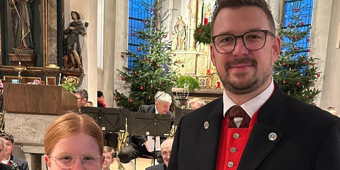 Sichtlich stolz auf seine junge Musikerin, Rosina Reinhard, ist der erste Vorsitzende des Musikvereins Riedenberg, Florian Leimbach. Rosina ist zwar erst zwölf Jahre alt, hat aber kürzlich bereits das silberne Jungmusikerleistungsabzeichen mit Bravour bestanden.