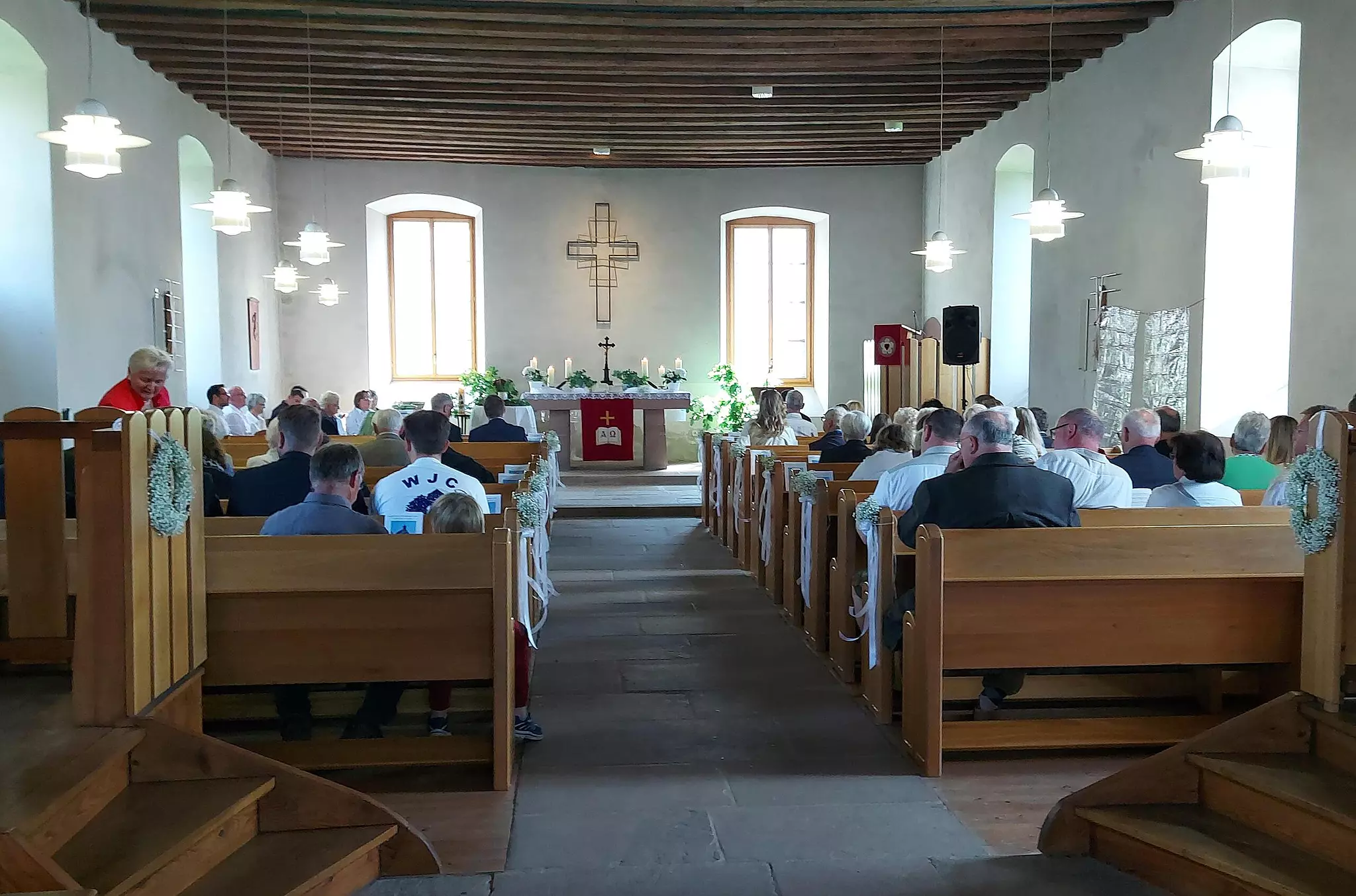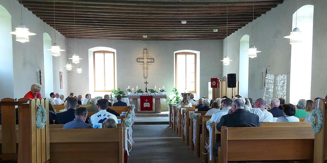 Glaube 200 Jahre lang hatte die Kirche keinen Namen In einem festlichen Gottesdienst wurde das Ergebnis der Abstimmung über den Namen der Kirche bekanntgegeben. // Silke Großmann Die Begegnungskirche in Weißenbach. // Niels Hönerlage Bürgermeister Matthias Haucke bei seinem Grußwort. // Marina Schiefer von Redaktion TEILEN  17.06.2024 Weißenbach – Die Mitglieder der evangelische Kirchengemeinde Weißenbach haben darüber abgestimmt, wie ihr Gotteshaus heißen soll: 80 Prozent waren für „Begegnungskirche“. Am 9. Juni feierte die evangelische Kirchengemeinde Weißenbach einen besonderen Anlass. Die Kirche, die seit deutlich über 200 Jahren zum Ortsbild und zum geistlichen Leben der Gemeinde gehört, war bisher ohne Namen. Genannt wurde sie schlicht: Evangelische Kirche in Weißenbach. Seit dem 9. Juni ist das anders.Festgottesdienst In einem Festgottesdienst, musikalisch gestaltet durch den Organisten Harald Drescher und den Posaunenchor Bad Brückenau-Züntersbach unter der Leitung von Daniela Wagner, wurde die Kirche offiziell „Begegnungskirche“ getauft. Schon vor Corona, so erzählte Pfarrer Niels Hönerlage im Gottesdienst, begann der Prozess der Namensgebung. Vorschläge aus der Gemeinde wurden gesammelt. Durch die Pandemie geriet der Prozess zwar etwas ins Stocken. Vorauswahl vom Kirchenvorstand Vor etwa einem Jahr traf der Kirchenvorstand, das Leitungsgremium der Kirchengemeinde, dann aber schließlich eine Vorauswahl und ließ die Gemeinde abstimmen zwischen „Auferstehungskirche“ und „Begegnungskirche“. Mit knapp 80 Prozent der Stimmen fiel die Entscheidung, die nun feierlich verkündet wurde. In der Predigt ging Pfarrer Hönerlage darauf ein, wie wichtig die Kirche als Ort der Begegnung war und ist. Hier erleben Menschen auch heute noch wichtige Momente und feiern Lebensfeste, sagte er. Bürgermeister Matthias Hauke formulierte in seinem Grußwort den Wunsch, dass die Kirche auch in Zukunft verschiedene Arten der Begegnung ermögliche: Begegnung mit Gott, Begegnung mit sich selbst und Begegnung mit anderen Menschen.Diesen Wunsch des Bürgermeisters konnten die Gottesdienstteilnehmerinnen und -teilnehmer direkt im Anschluss in die Tat umsetzen. Der Kirchenvorstand und weitere Helfer und Helferinnen hatten einen kleinen Empfang vorbereitet, so dass sich alle Gläubigen nach dem Gottesdienst bei Essen und Getränken begegnen konnten: Nicht ganz in, aber zumindest im Schatten der Begegnungskirche.