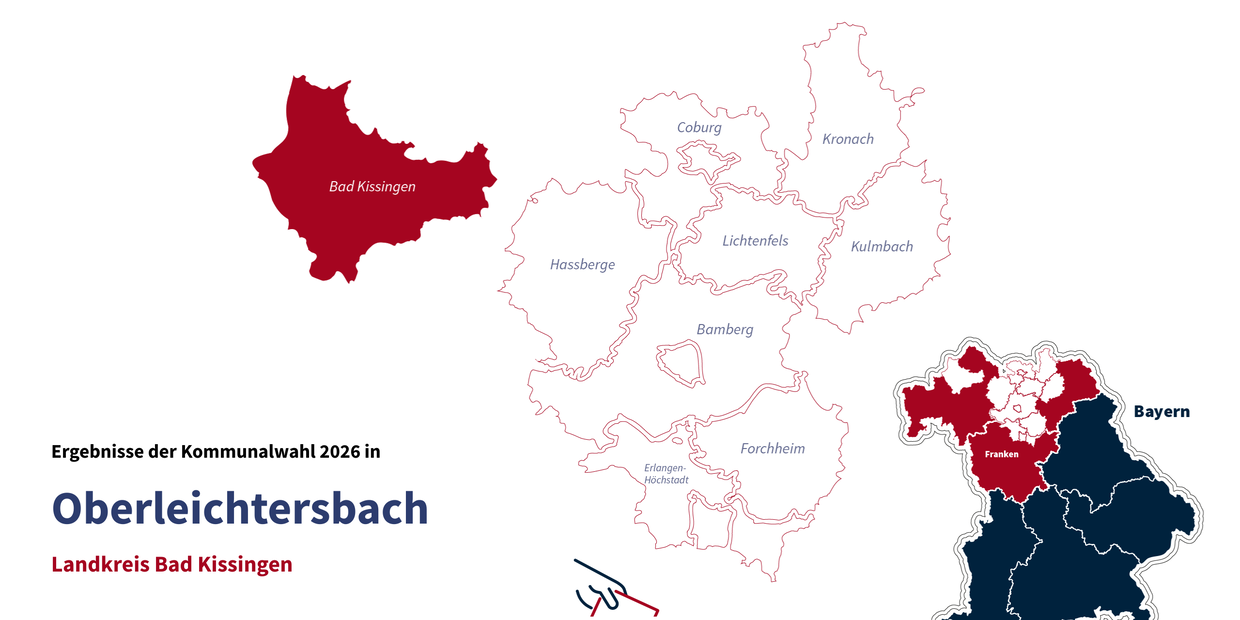 Die Bürgerinnen und Bürger in Oberleichtersbach sind am 8. März 2026 zur Kommunalwahl aufgerufen. Die Gemeinde mit ihren rund 2.050 Einwohnern gehört zur Verwaltungsgemeinschaft Bad Brückenau und umfasst 15 Gemeindeteile. Auf dieser Seite finden Sie die aktuellen Zwischenergebnisse der Auszählung zur Kommunalwahl 2026 in Oberleichtersbach.
