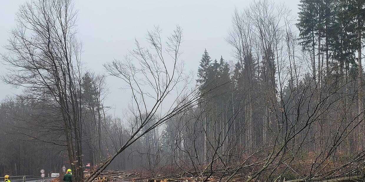 – Am Abschnitt der Staatsstraße 2790 fällt der ohnehin angeschlagene Fichtenbestand, aber auch viele Laubbäume. Was schlimm aussieht, soll für Verbesserungen sorgen.